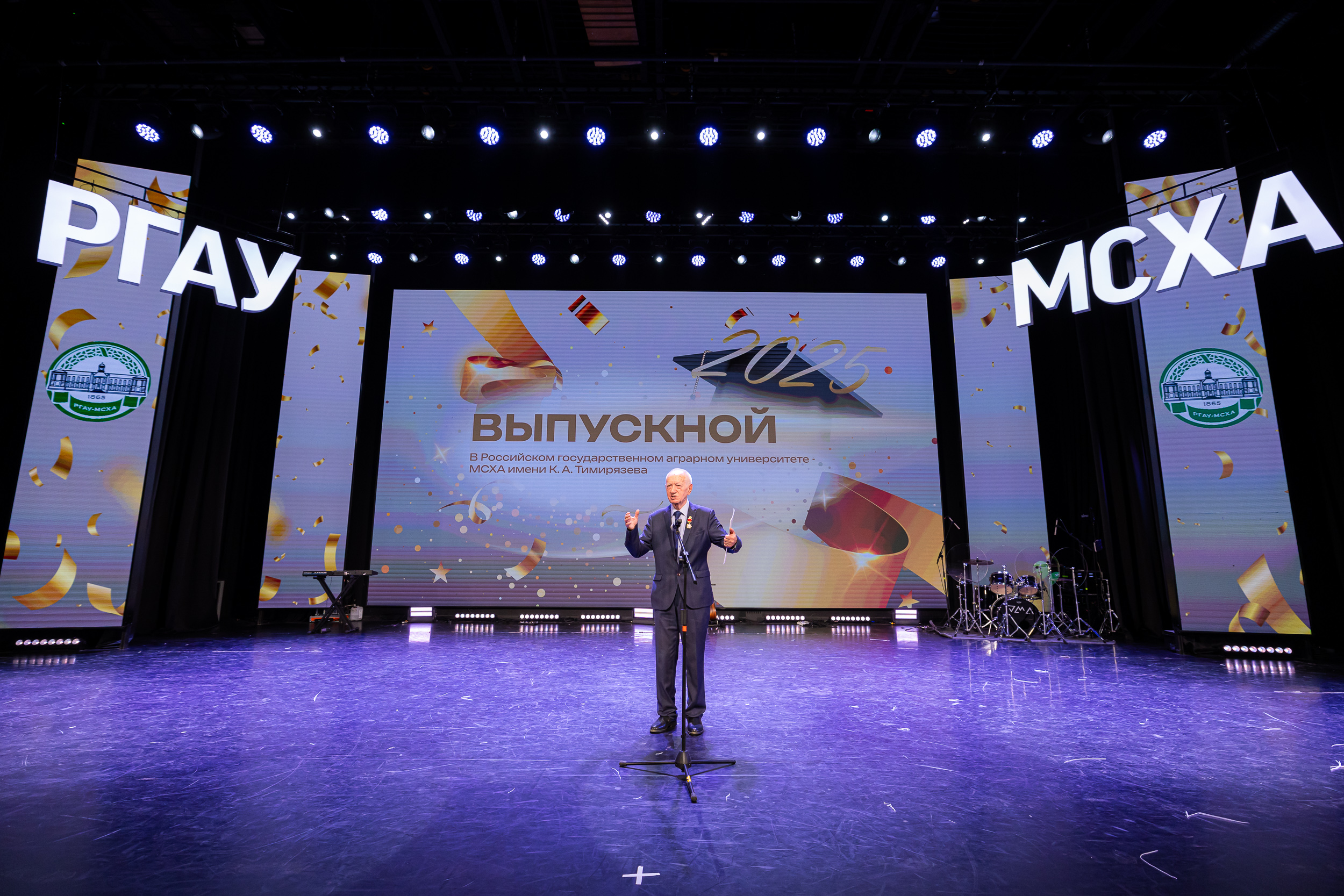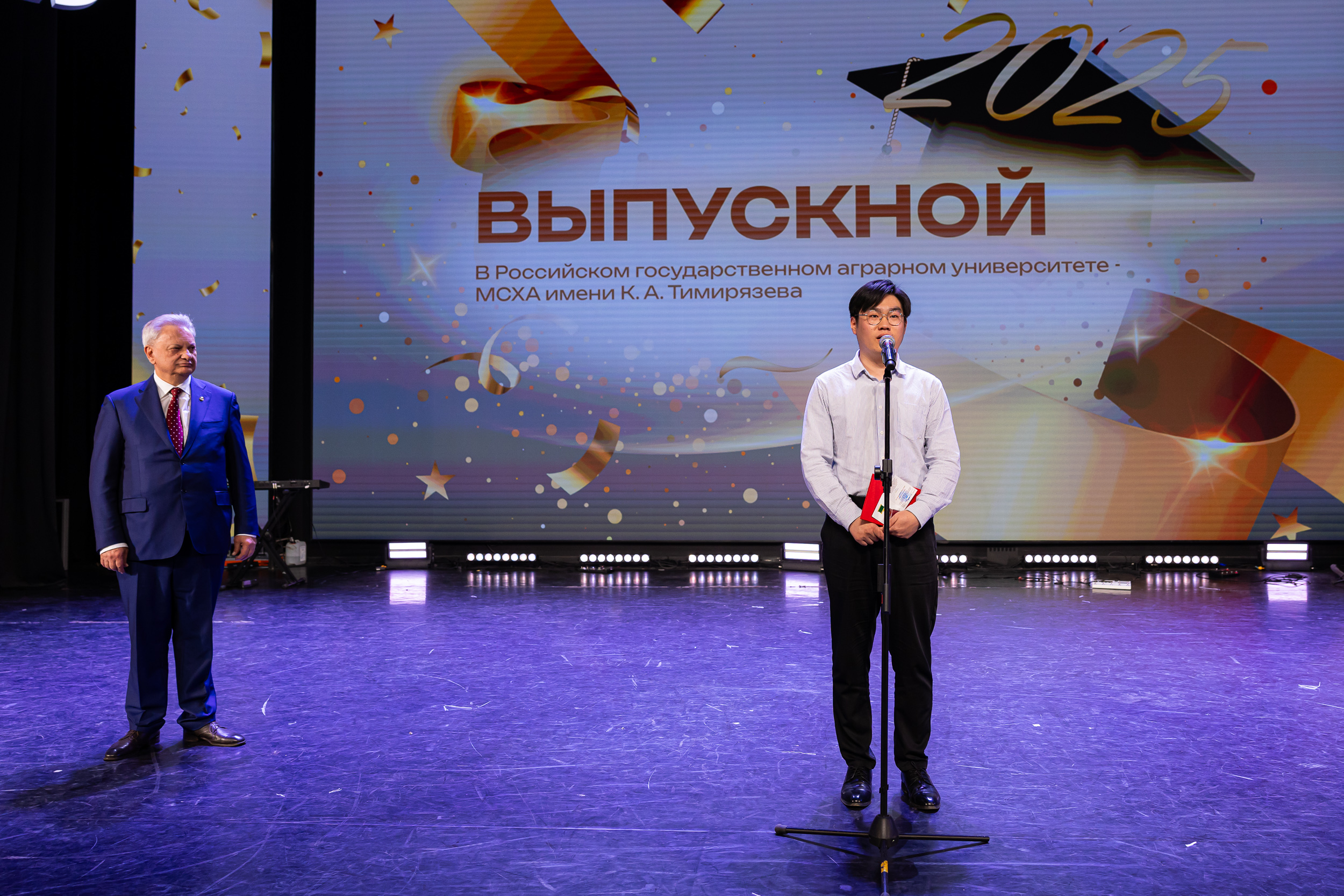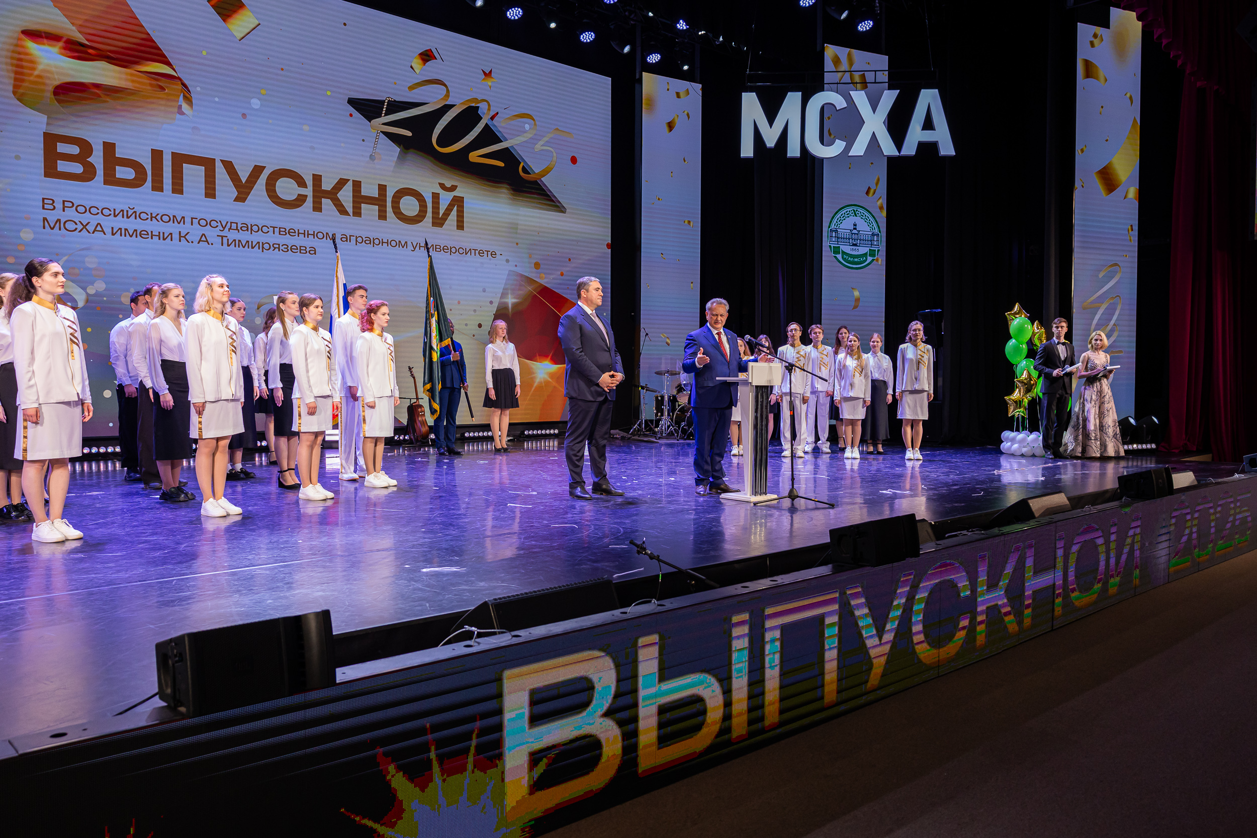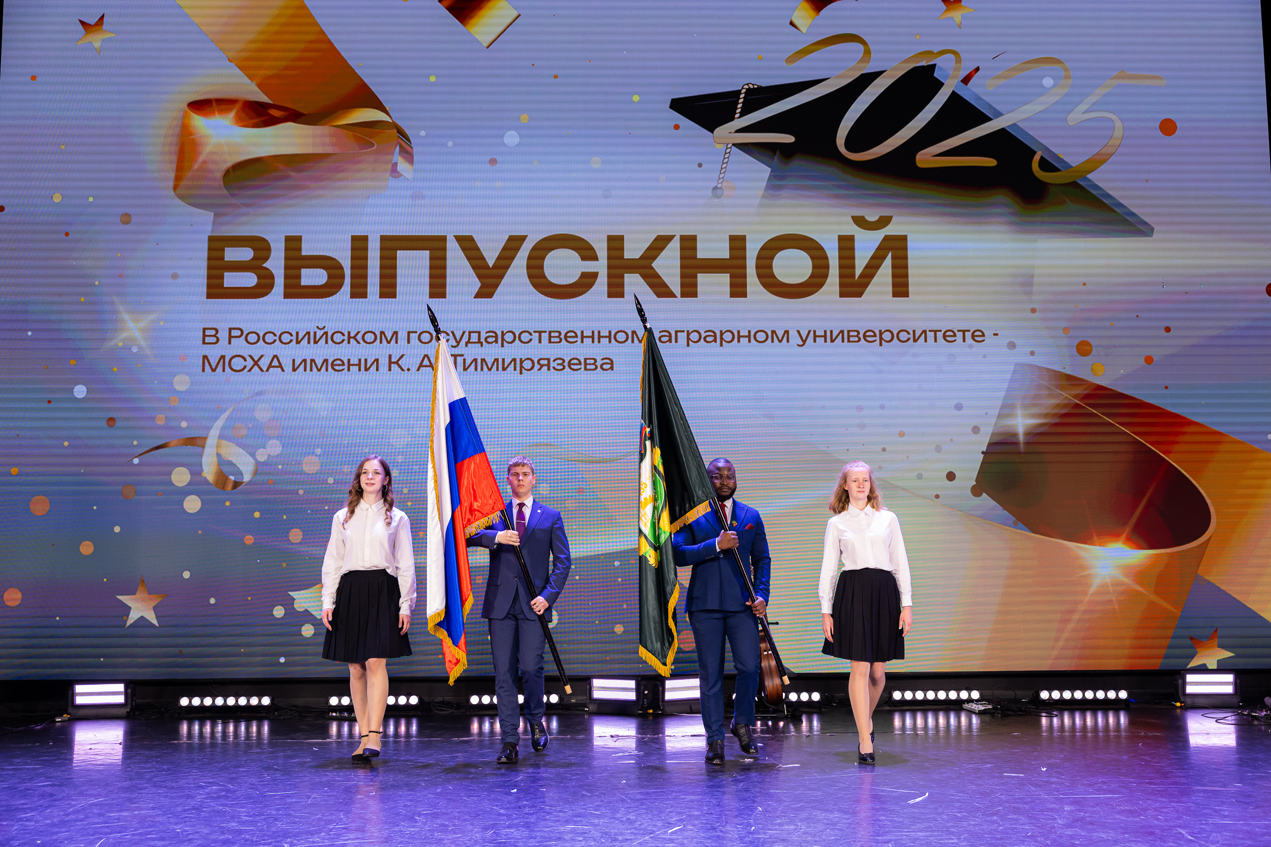 Выпускников приветствовал статс-секретарь, заместитель Министра сельского хозяйства Российской Федерации – Максим Иосифович Увайдов: «Наша великая страна, наша великая отрасль очень стремительно развивается. Несмотря ни на что, несмотря на санкции, мы остаемся стабильным поставщиком продовольствия не только на внутренний рынок, но и на рынке более чем 150 стран мира. Эту аграрную революцию произвели выпускники аграрных вузов, и в первую очередь выпускники главного аграрного вуза. Я вам желаю уже трудовых успехов. В добрый путь!»