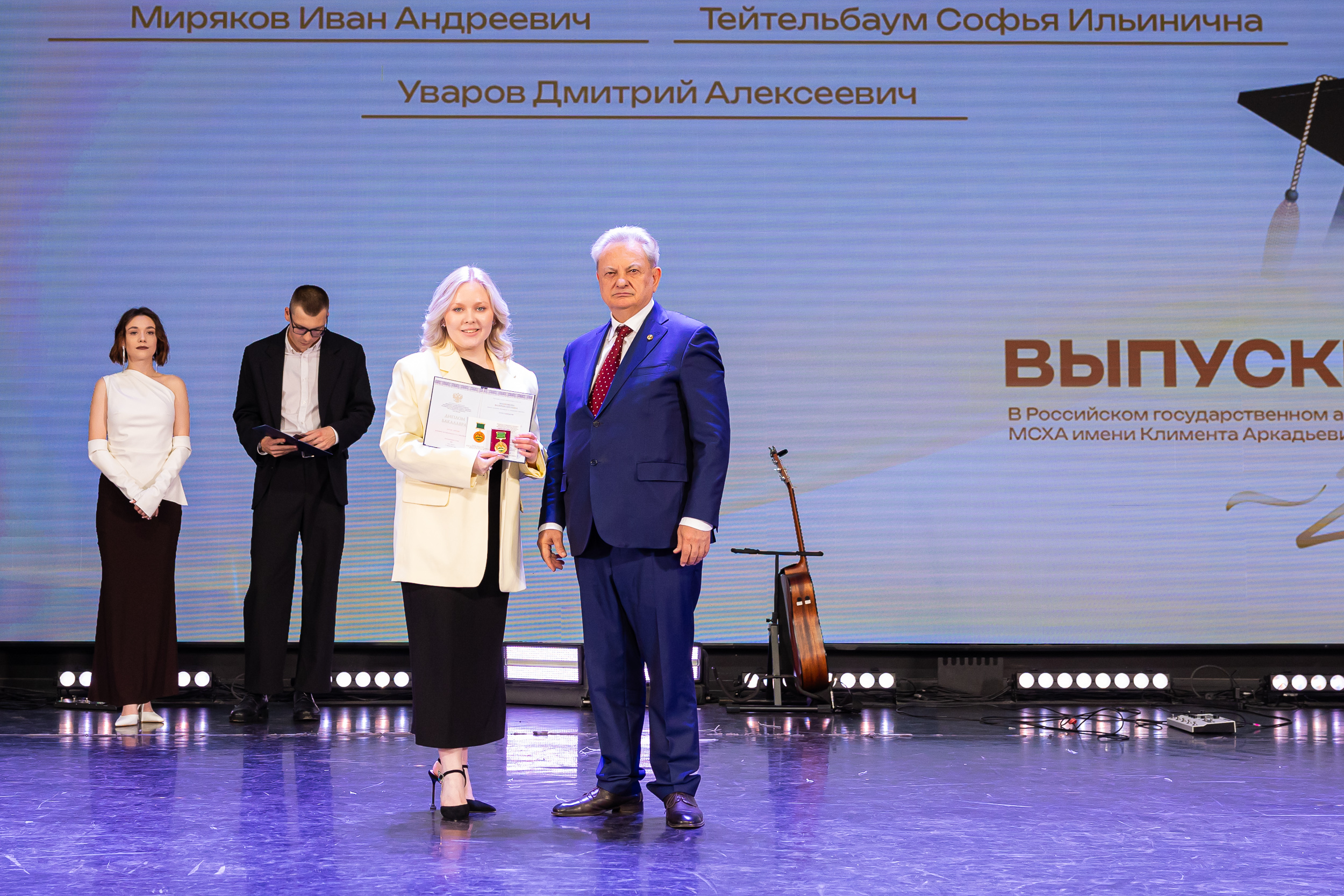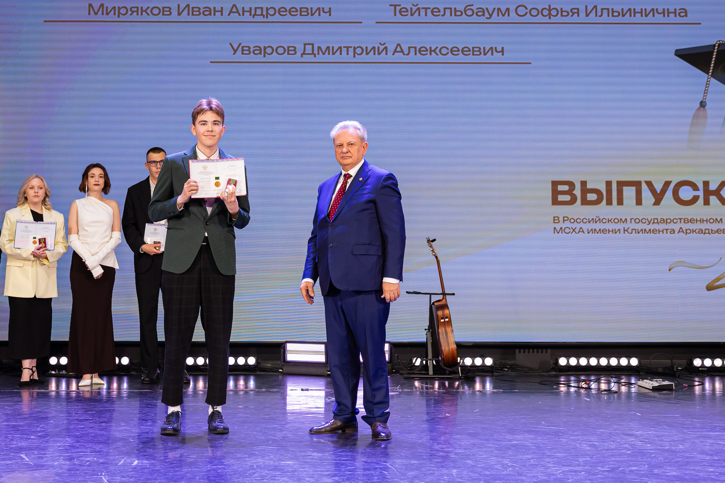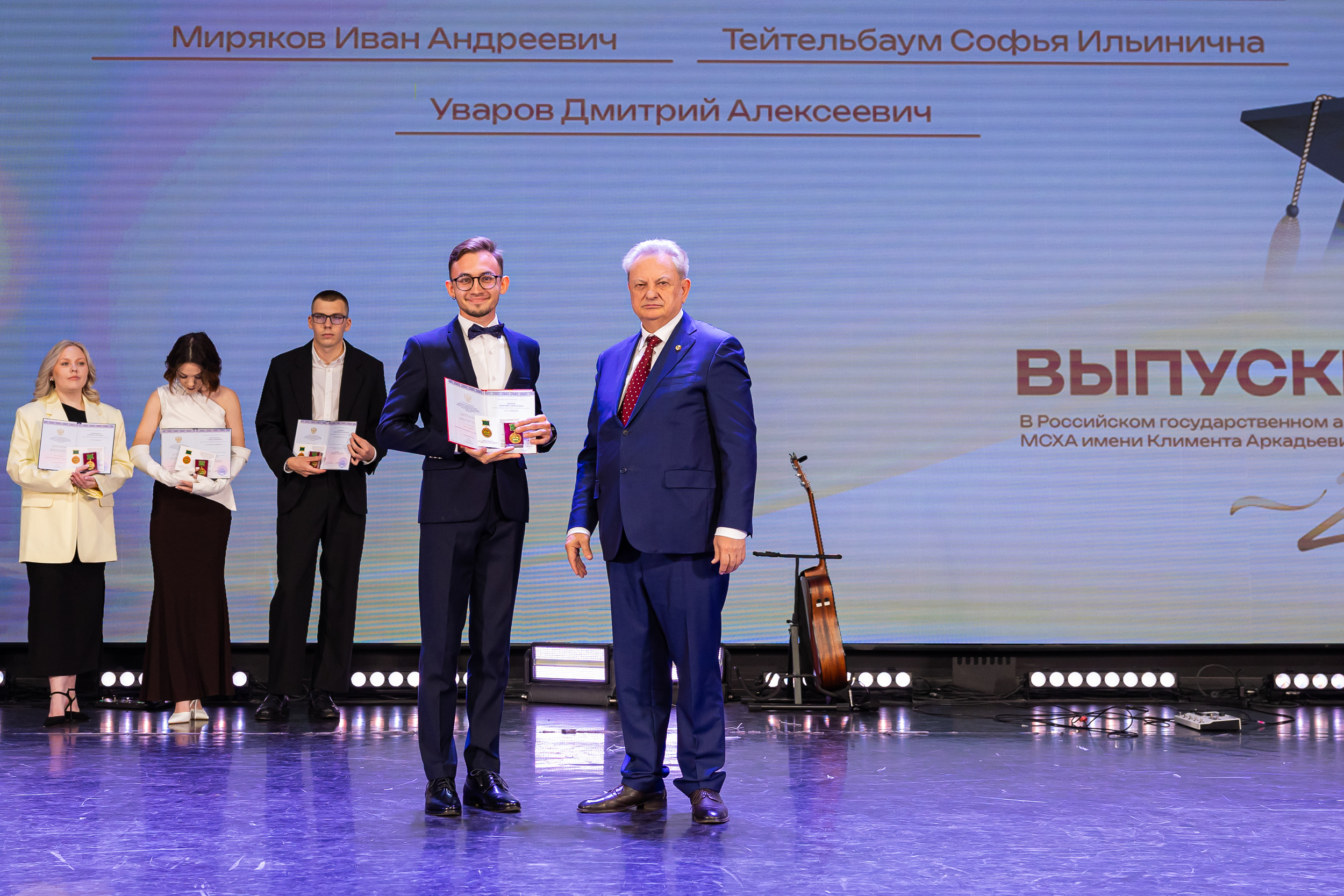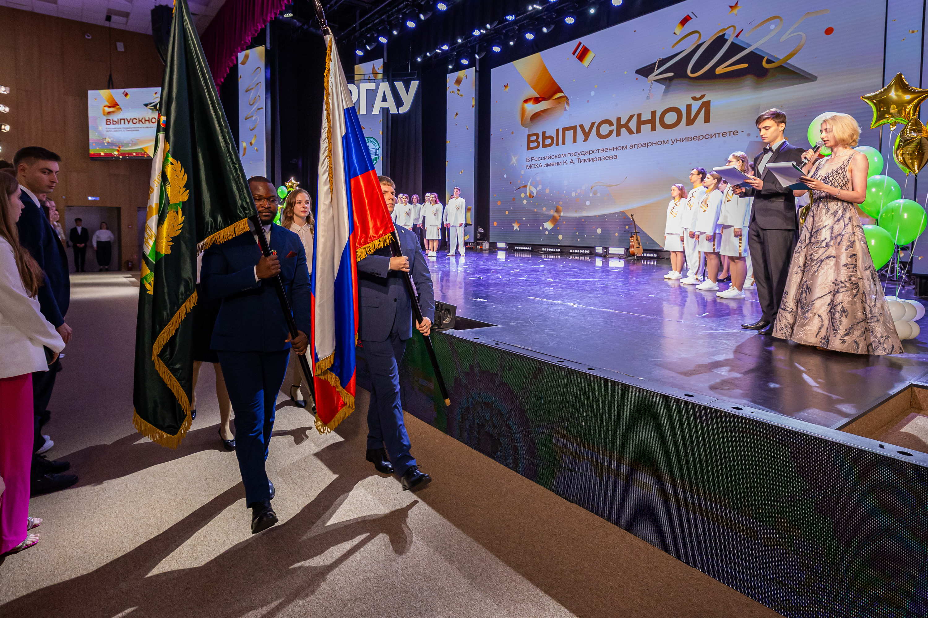 Выпускников приветствовал статс-секретарь, заместитель Министра сельского хозяйства Российской Федерации – Максим Иосифович Увайдов: «Наша великая страна, наша великая отрасль очень стремительно развивается. Несмотря ни на что, несмотря на санкции, мы остаемся стабильным поставщиком продовольствия не только на внутренний рынок, но и на рынке более чем 150 стран мира. Эту аграрную революцию произвели выпускники аграрных вузов, и в первую очередь выпускники главного аграрного вуза. Я вам желаю уже трудовых успехов. В добрый путь!»