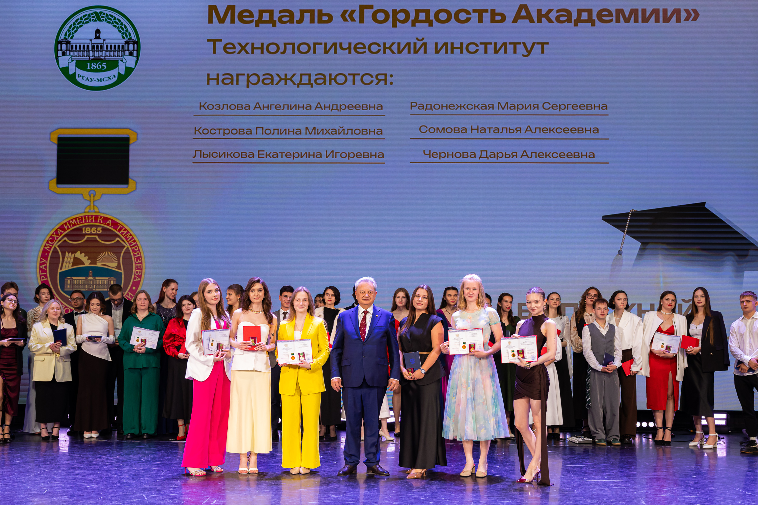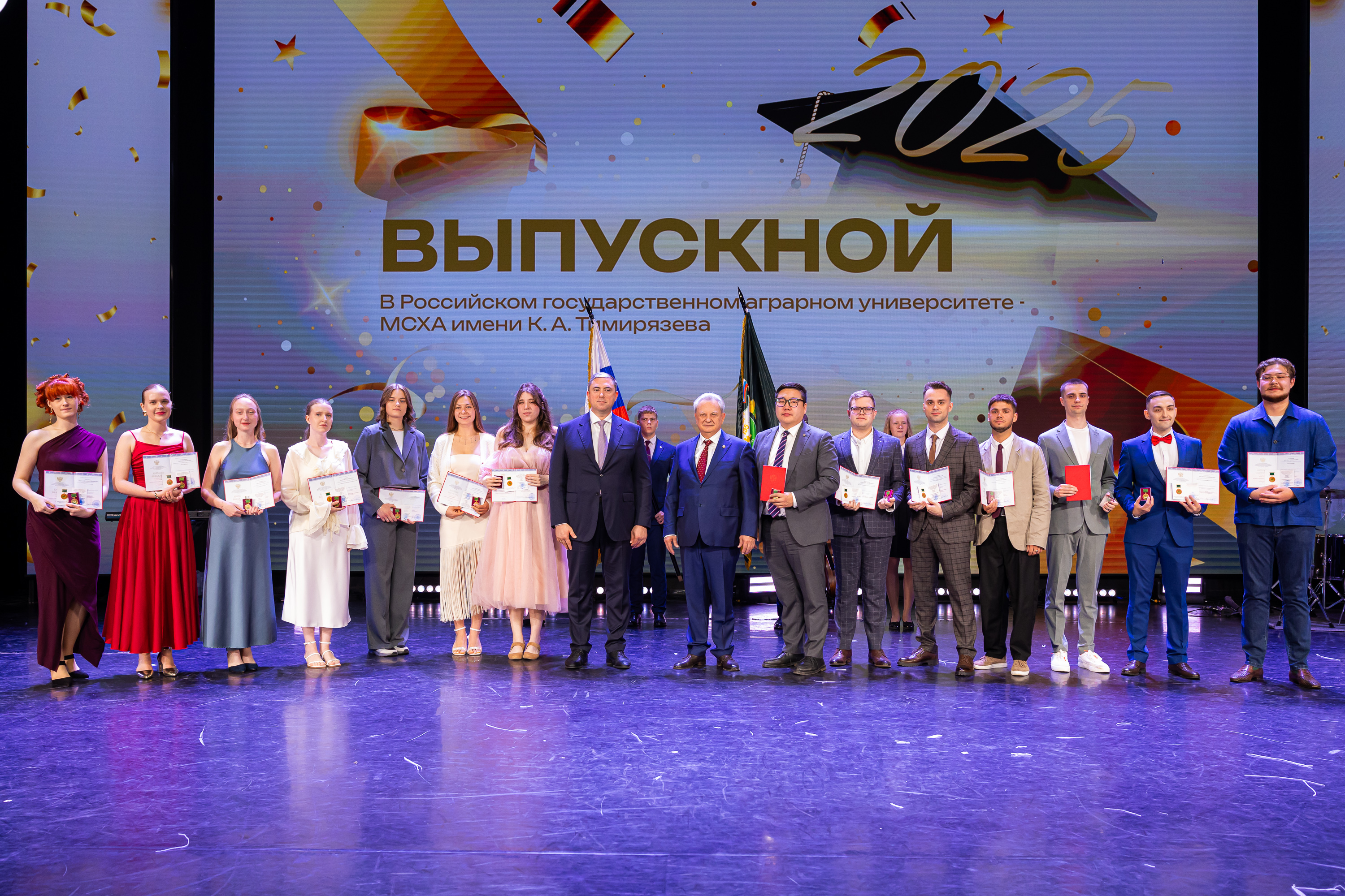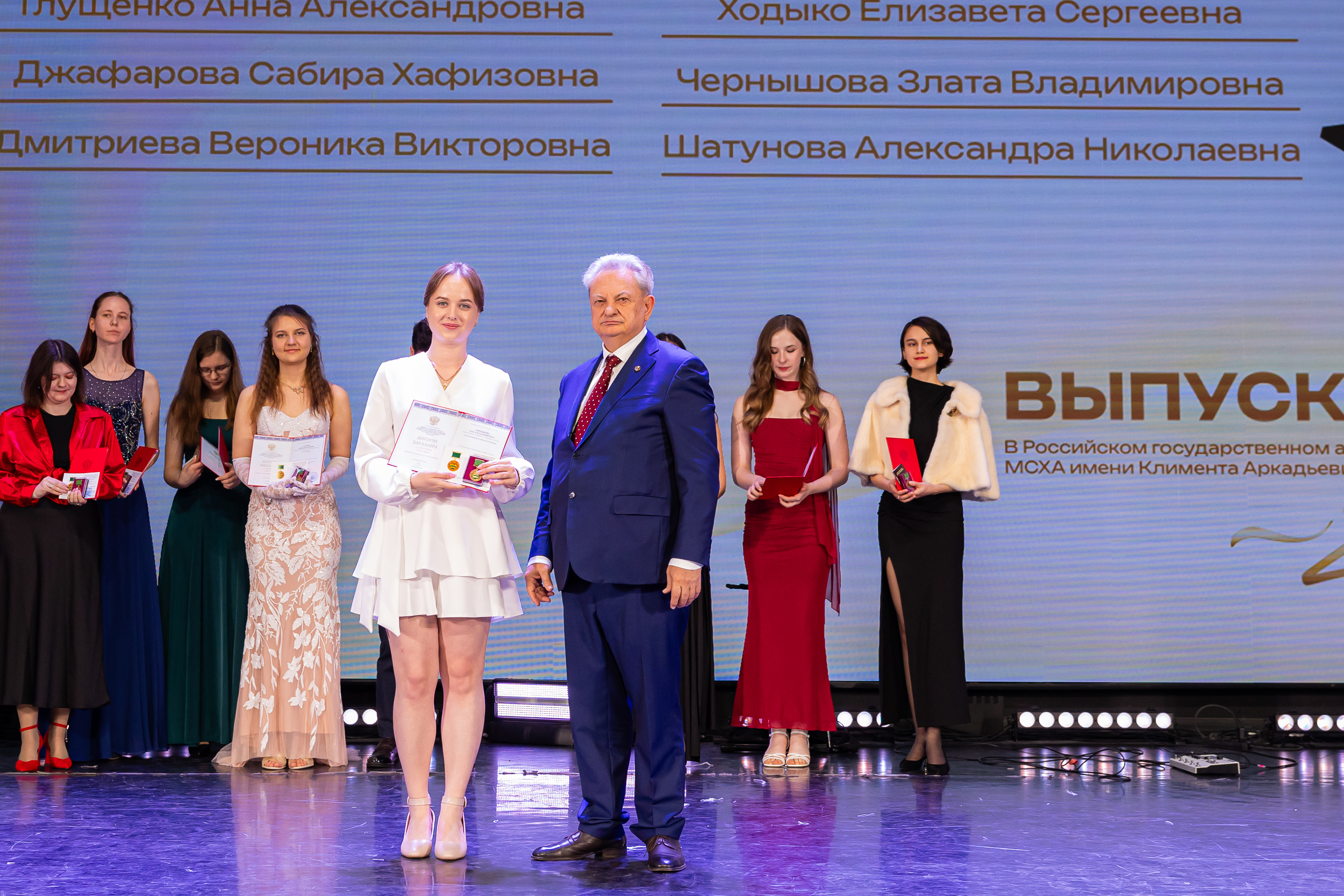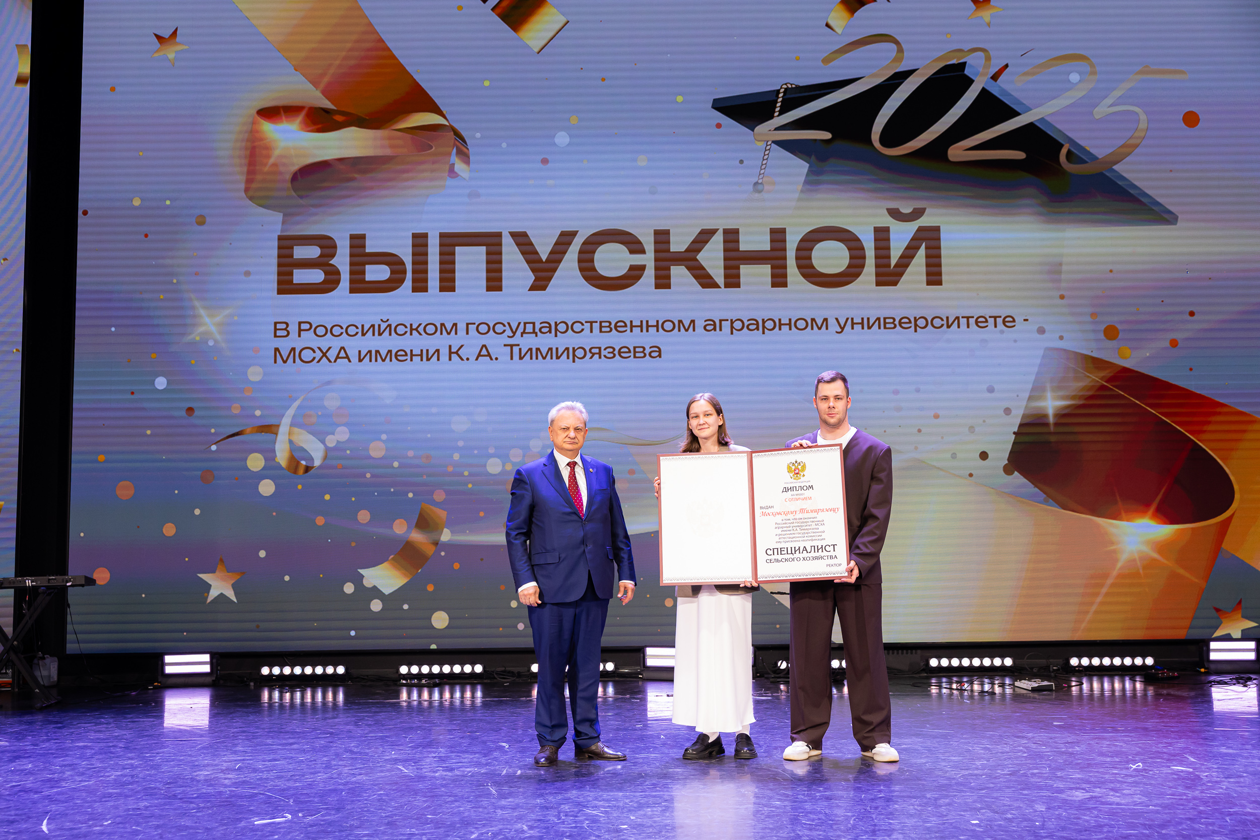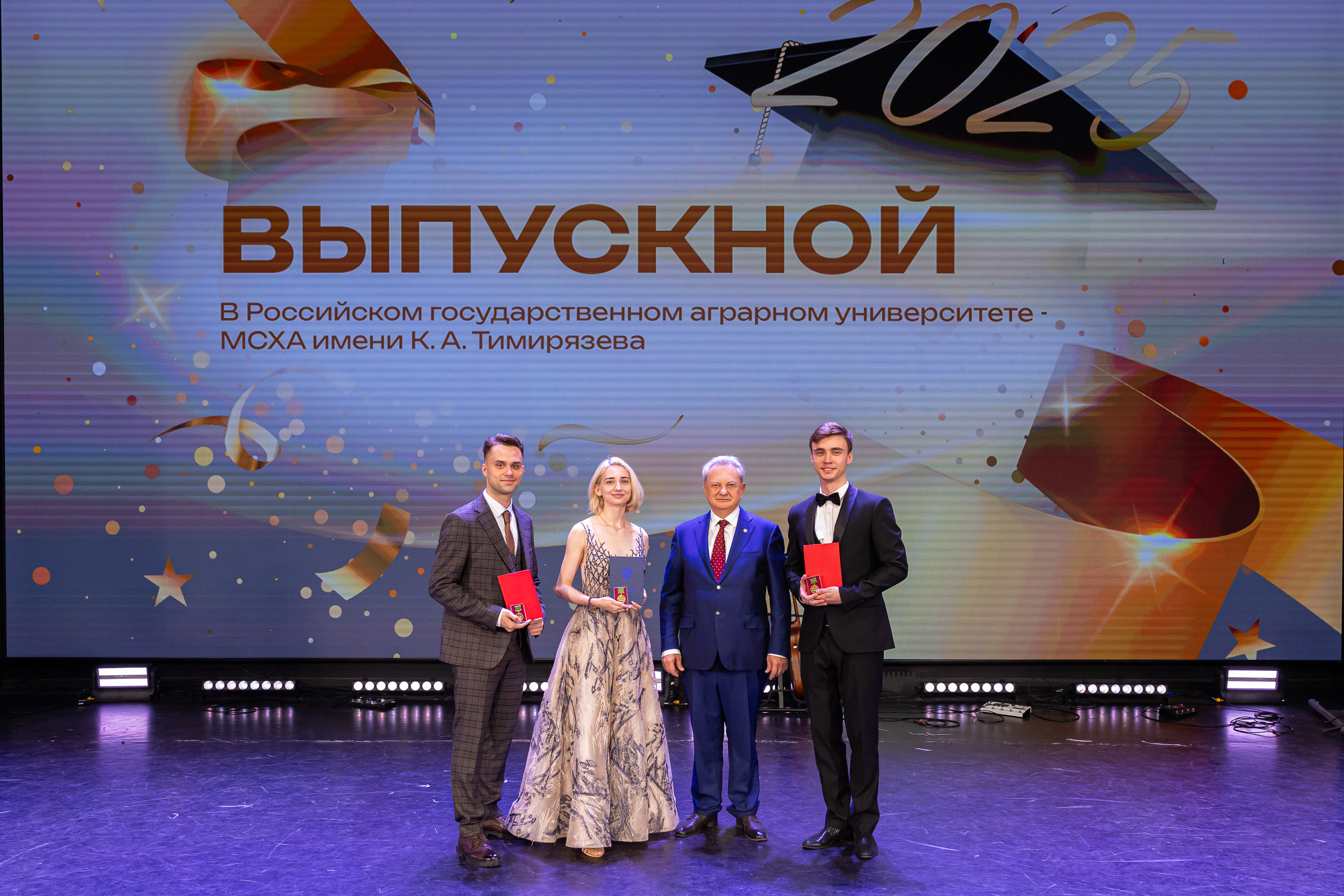 В новую жизнь выпускников напутствовал ректор РГАУ – МСХА имени К.А. Тимирязева, академик РАН, профессор Владимир Иванович Трухачев: «Особая гордость – видеть такое количество усердных и целеустремленных студентов: 945 дипломов с отличием вручены сегодня. Это не просто оценки, это символ вашего трудолюбия, вашей настойчивости и глубокого погружения в выбранную профессию. Вы – золотой фонд нашего университета, и мы уверены, что вы станете двигателем перемен в аграрной отрасли и за её пределами. И, конечно, мы отдельно аплодируем 108 замечательным студентам, которые удостоились почетного знака отличия «Гордость университета». Вы – лучшие из лучших, ваши имена уже вписаны в историю академии как примеры выдающихся достижений в учебе, науке, спорте и общественной жизни».