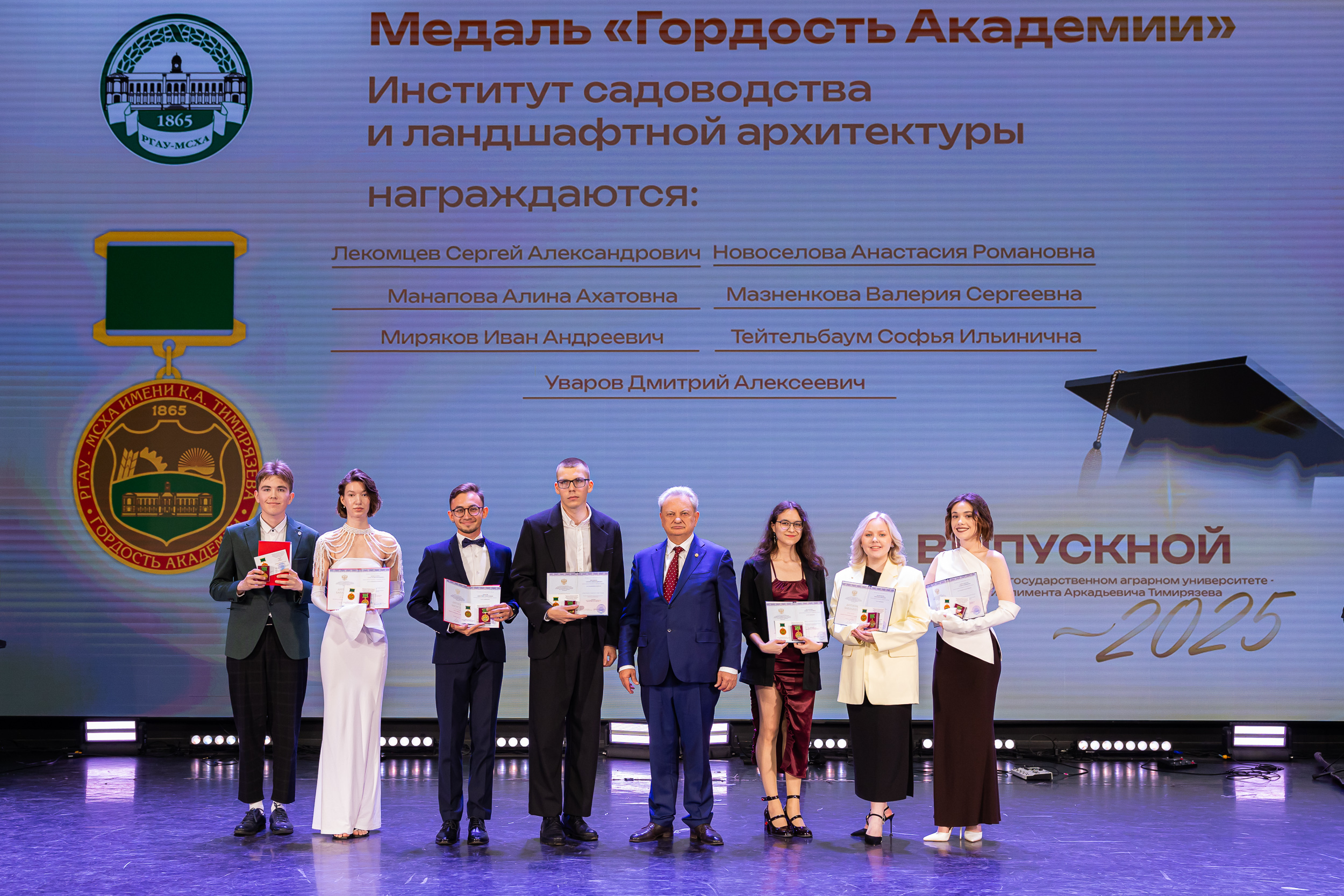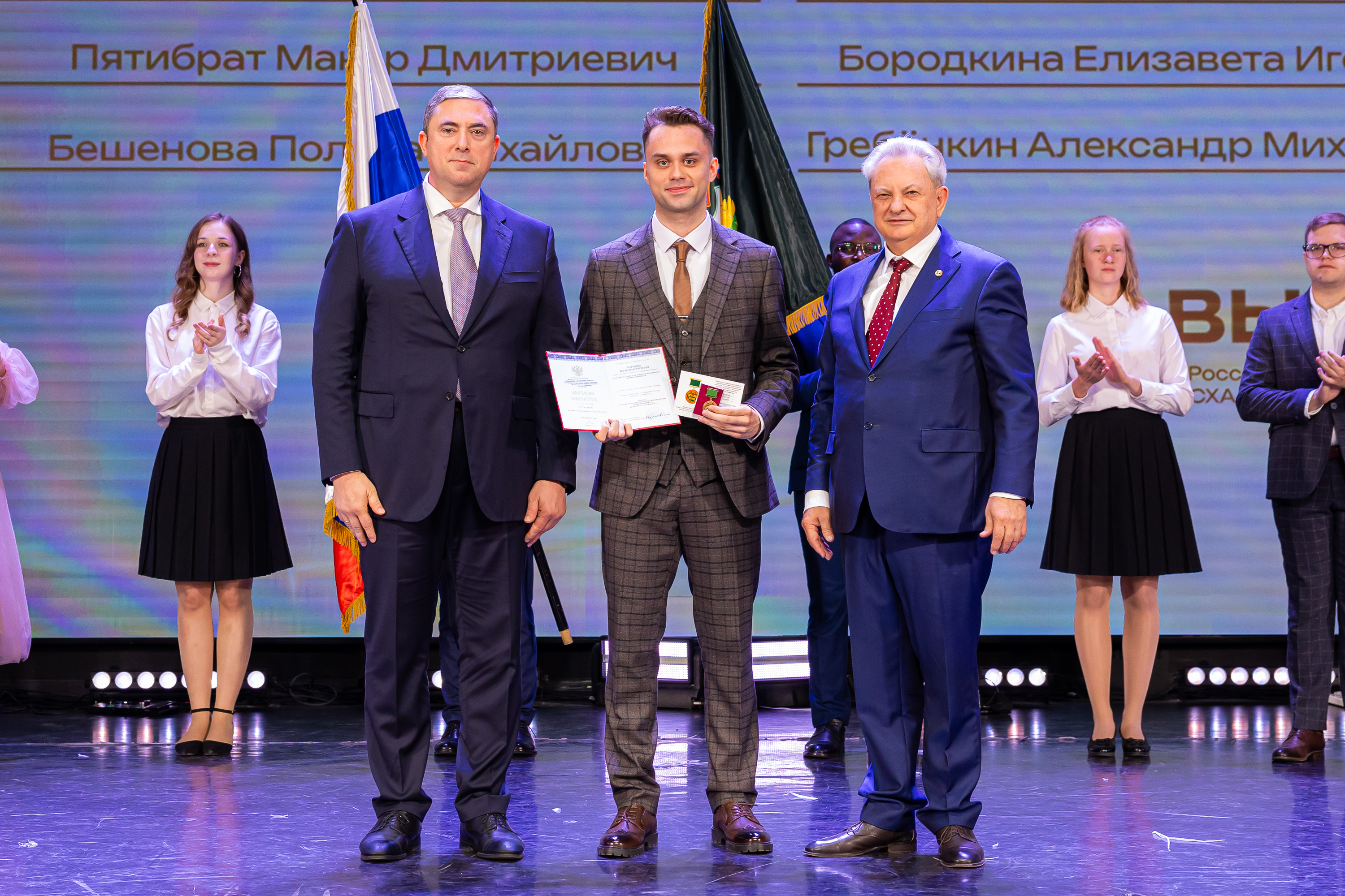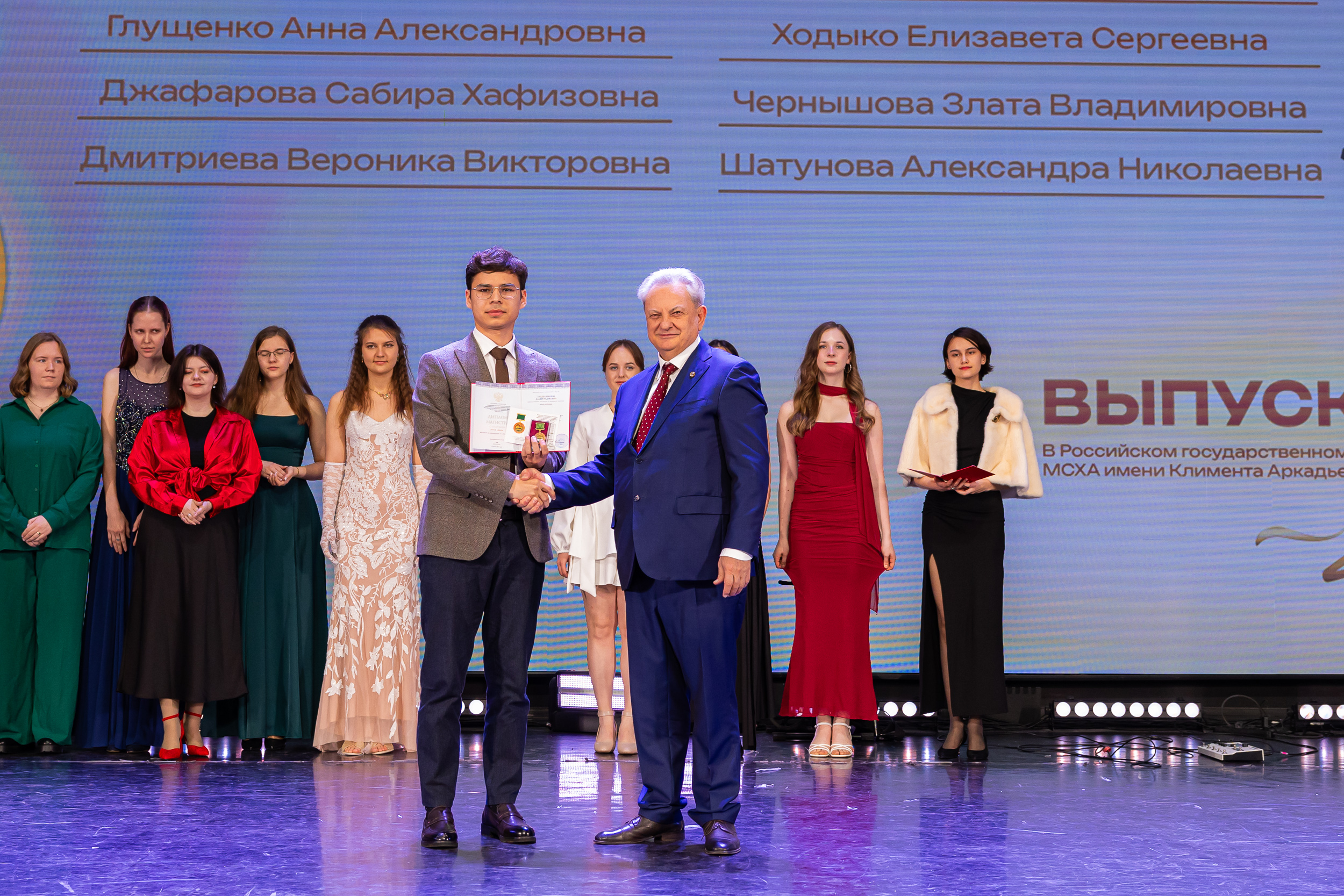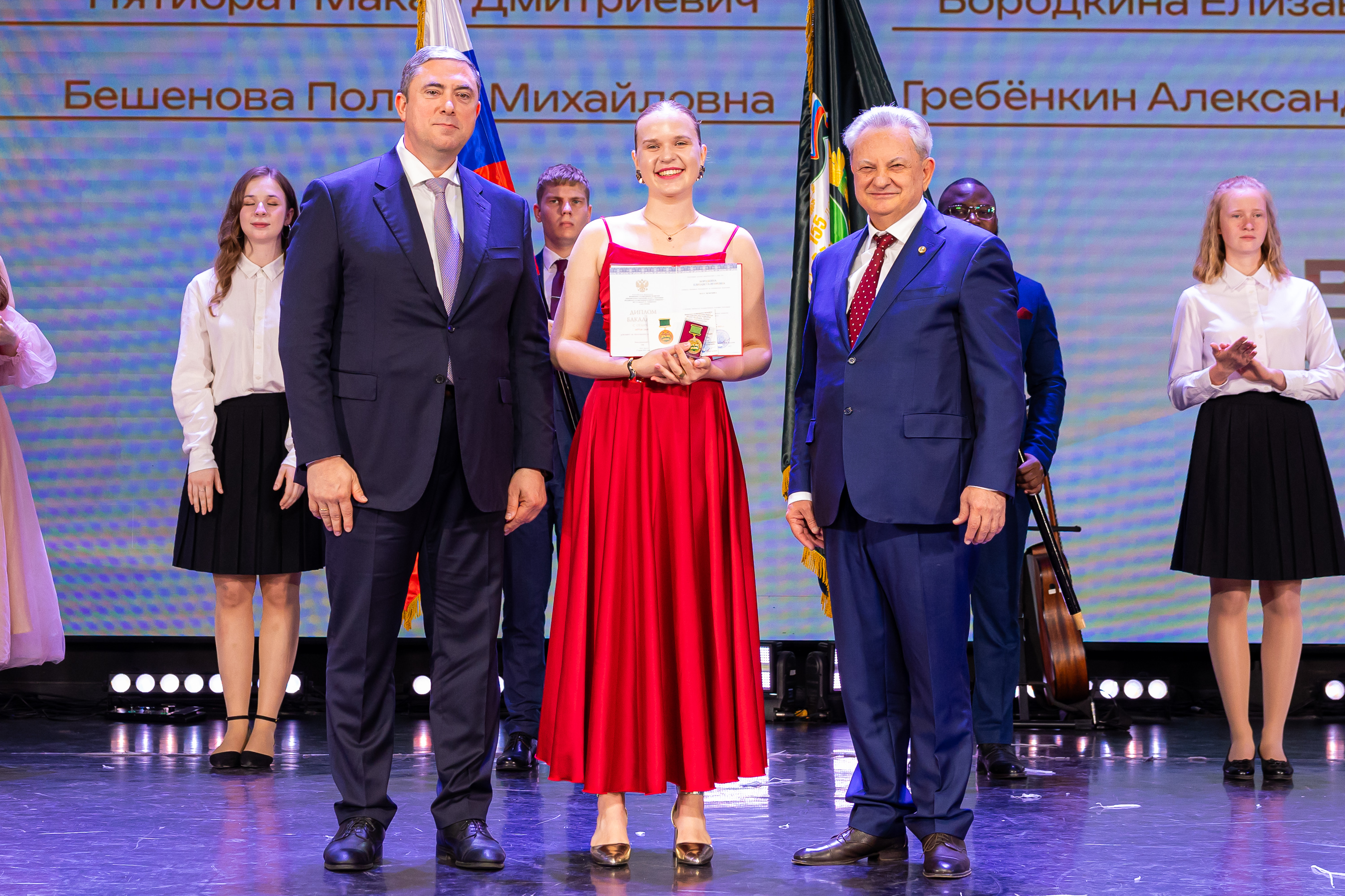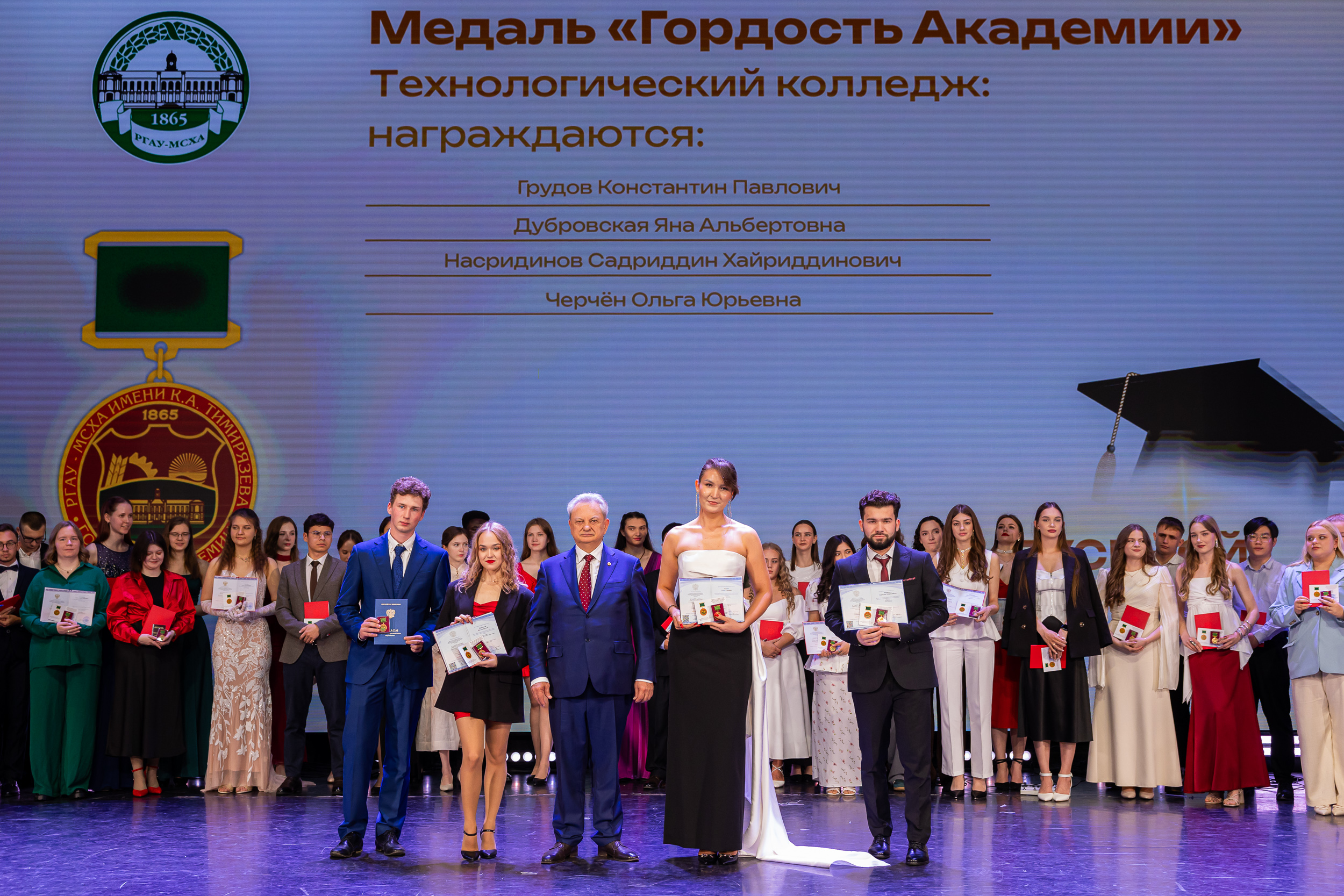 В новую жизнь выпускников напутствовал ректор РГАУ – МСХА имени К.А. Тимирязева, академик РАН, профессор Владимир Иванович Трухачев: «Особая гордость – видеть такое количество усердных и целеустремленных студентов: 945 дипломов с отличием вручены сегодня. Это не просто оценки, это символ вашего трудолюбия, вашей настойчивости и глубокого погружения в выбранную профессию. Вы – золотой фонд нашего университета, и мы уверены, что вы станете двигателем перемен в аграрной отрасли и за её пределами. И, конечно, мы отдельно аплодируем 108 замечательным студентам, которые удостоились почетного знака отличия «Гордость университета». Вы – лучшие из лучших, ваши имена уже вписаны в историю академии как примеры выдающихся достижений в учебе, науке, спорте и общественной жизни».