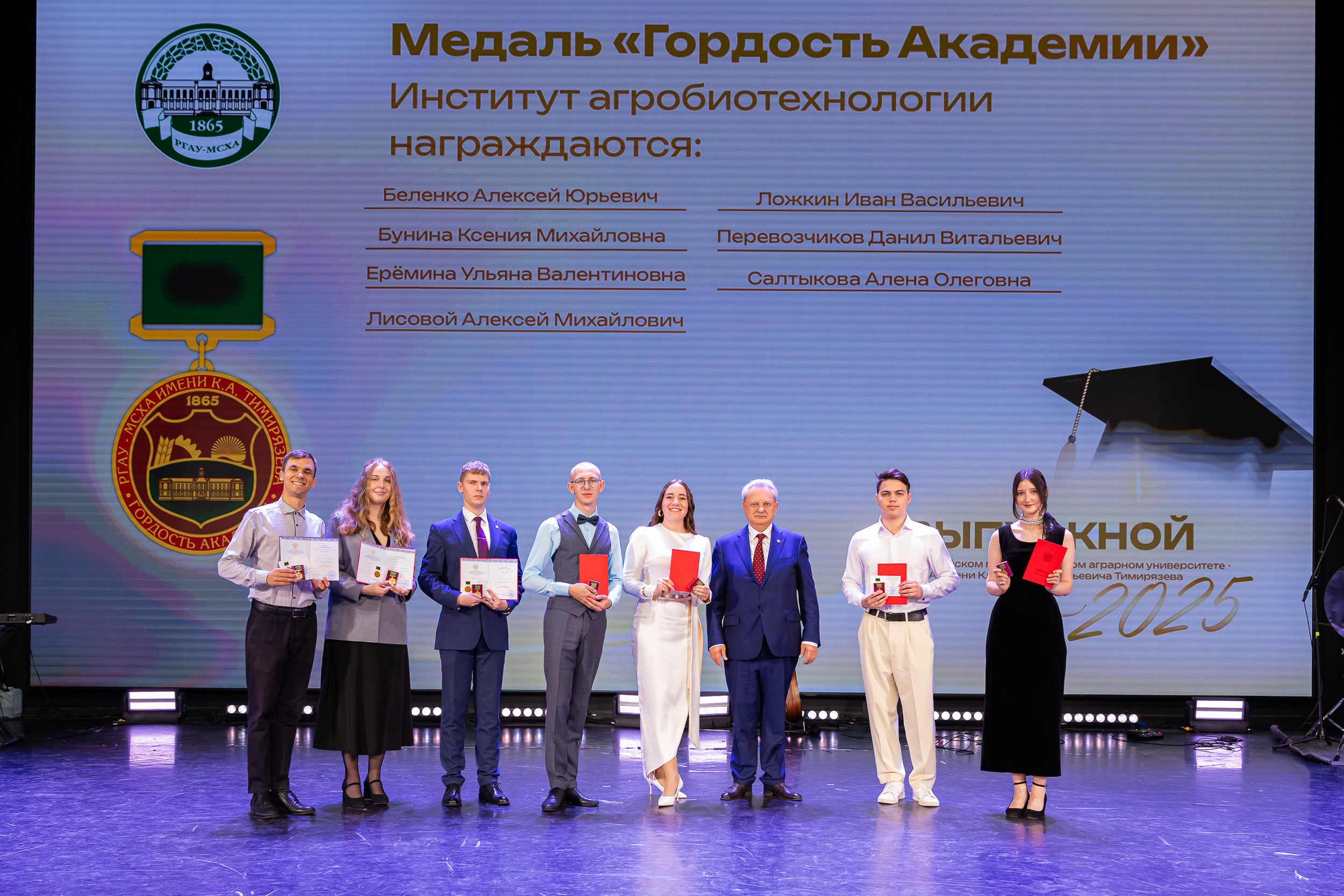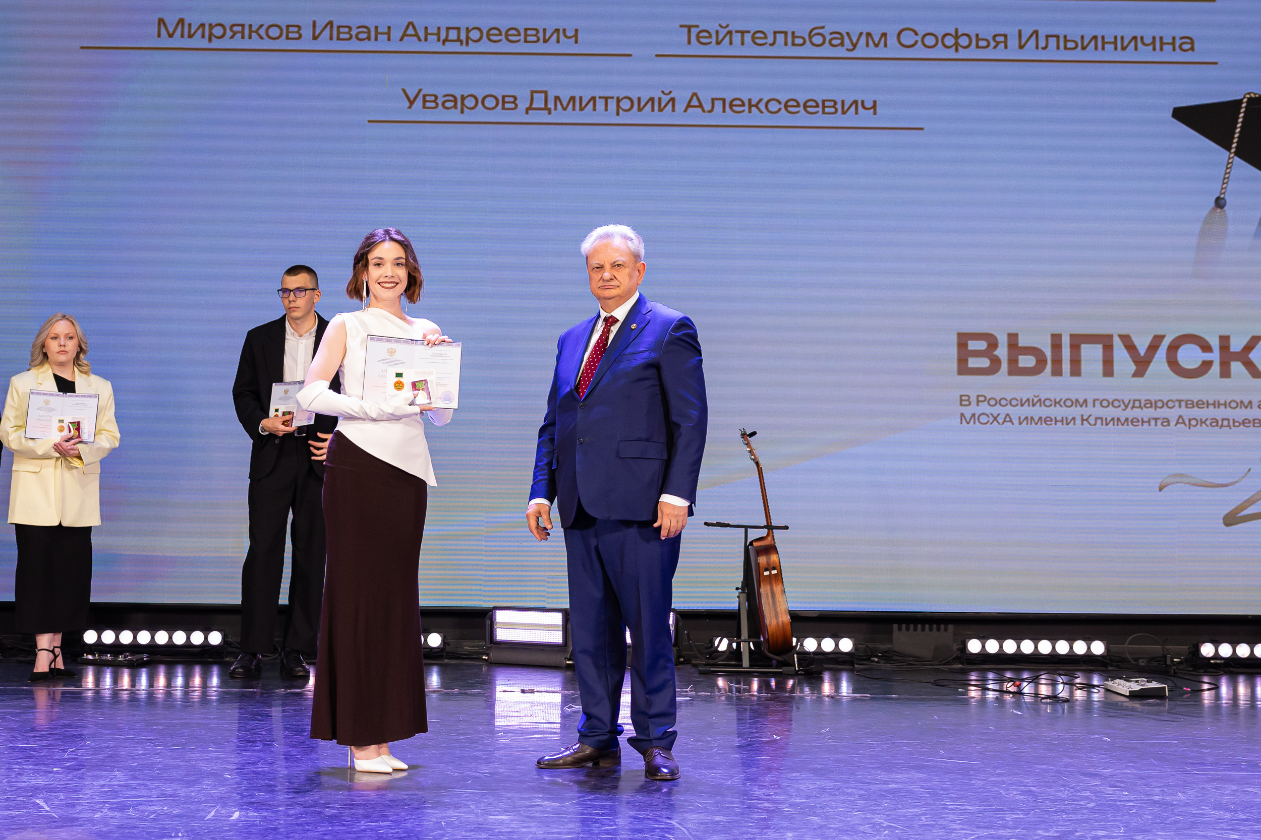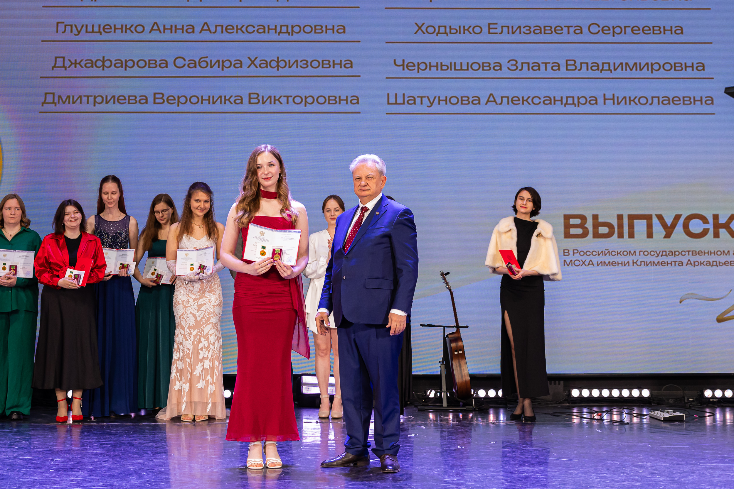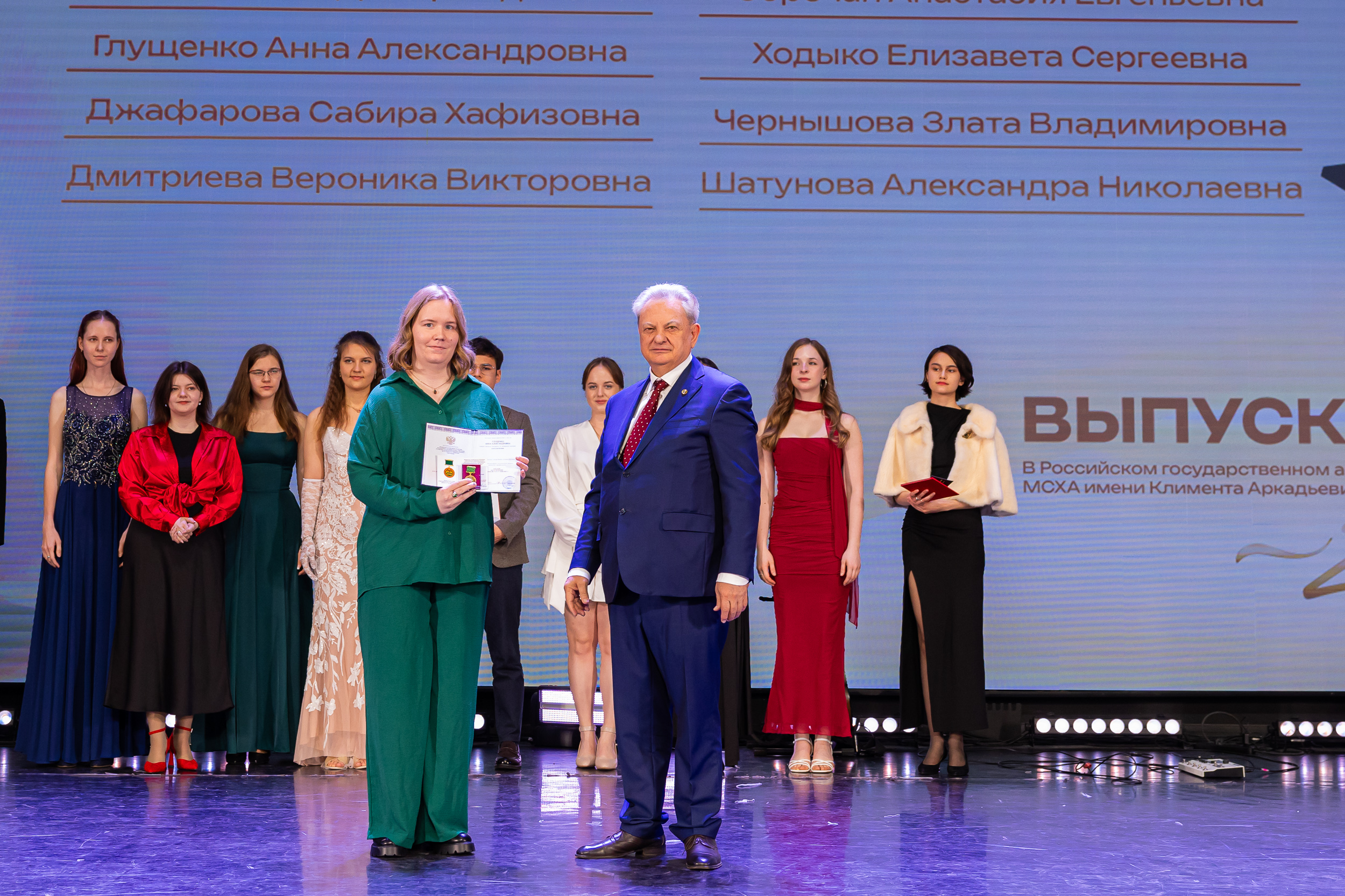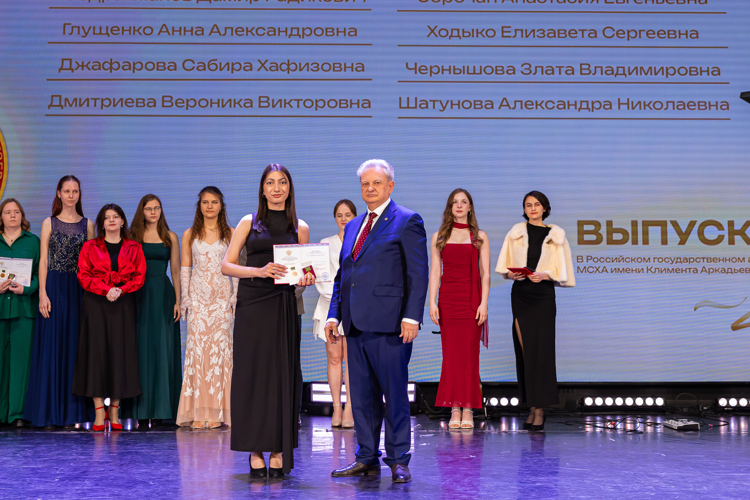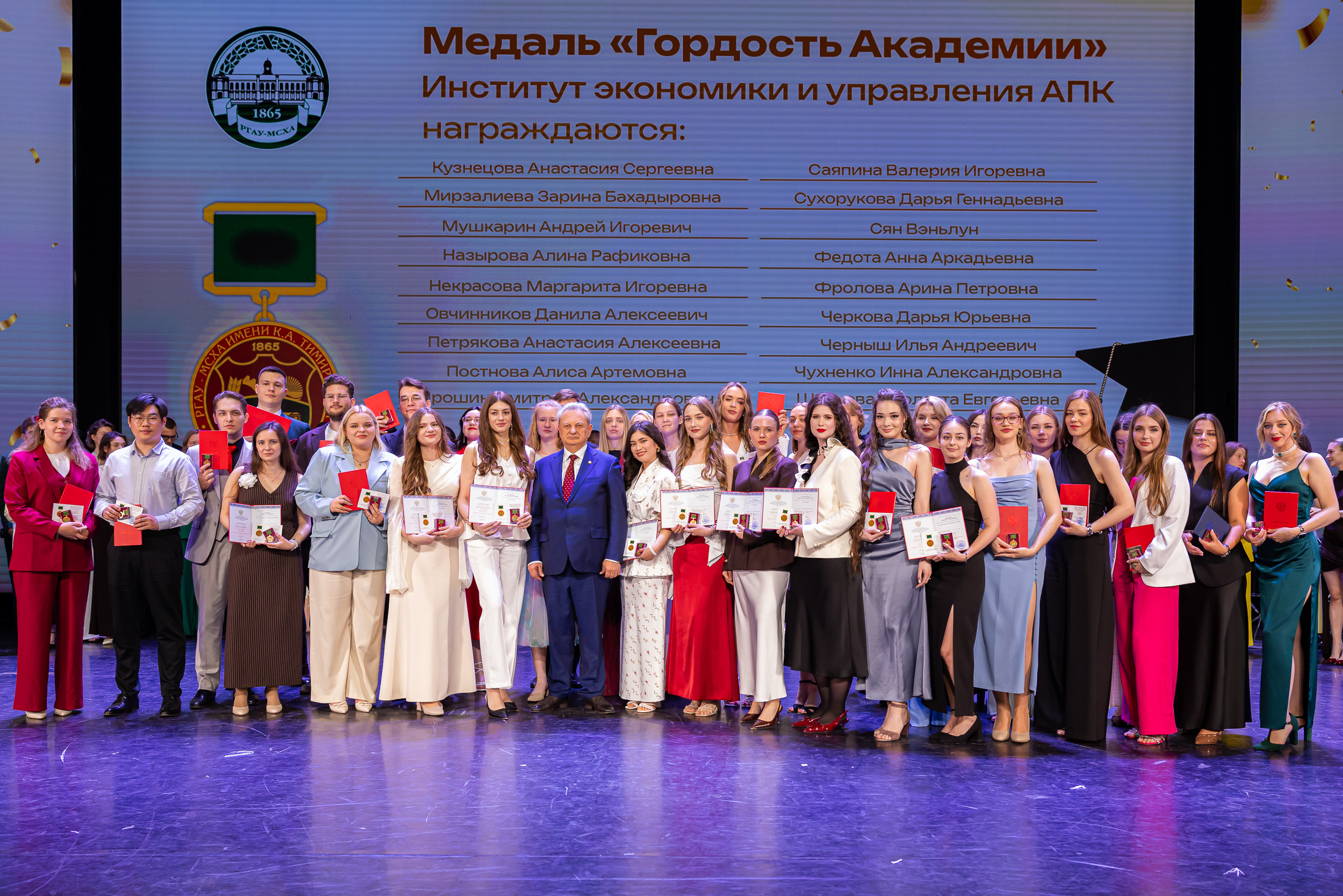 В новую жизнь выпускников напутствовал ректор РГАУ – МСХА имени К.А. Тимирязева, академик РАН, профессор Владимир Иванович Трухачев: «Особая гордость – видеть такое количество усердных и целеустремленных студентов: 945 дипломов с отличием вручены сегодня. Это не просто оценки, это символ вашего трудолюбия, вашей настойчивости и глубокого погружения в выбранную профессию. Вы – золотой фонд нашего университета, и мы уверены, что вы станете двигателем перемен в аграрной отрасли и за её пределами. И, конечно, мы отдельно аплодируем 108 замечательным студентам, которые удостоились почетного знака отличия «Гордость университета». Вы – лучшие из лучших, ваши имена уже вписаны в историю академии как примеры выдающихся достижений в учебе, науке, спорте и общественной жизни».