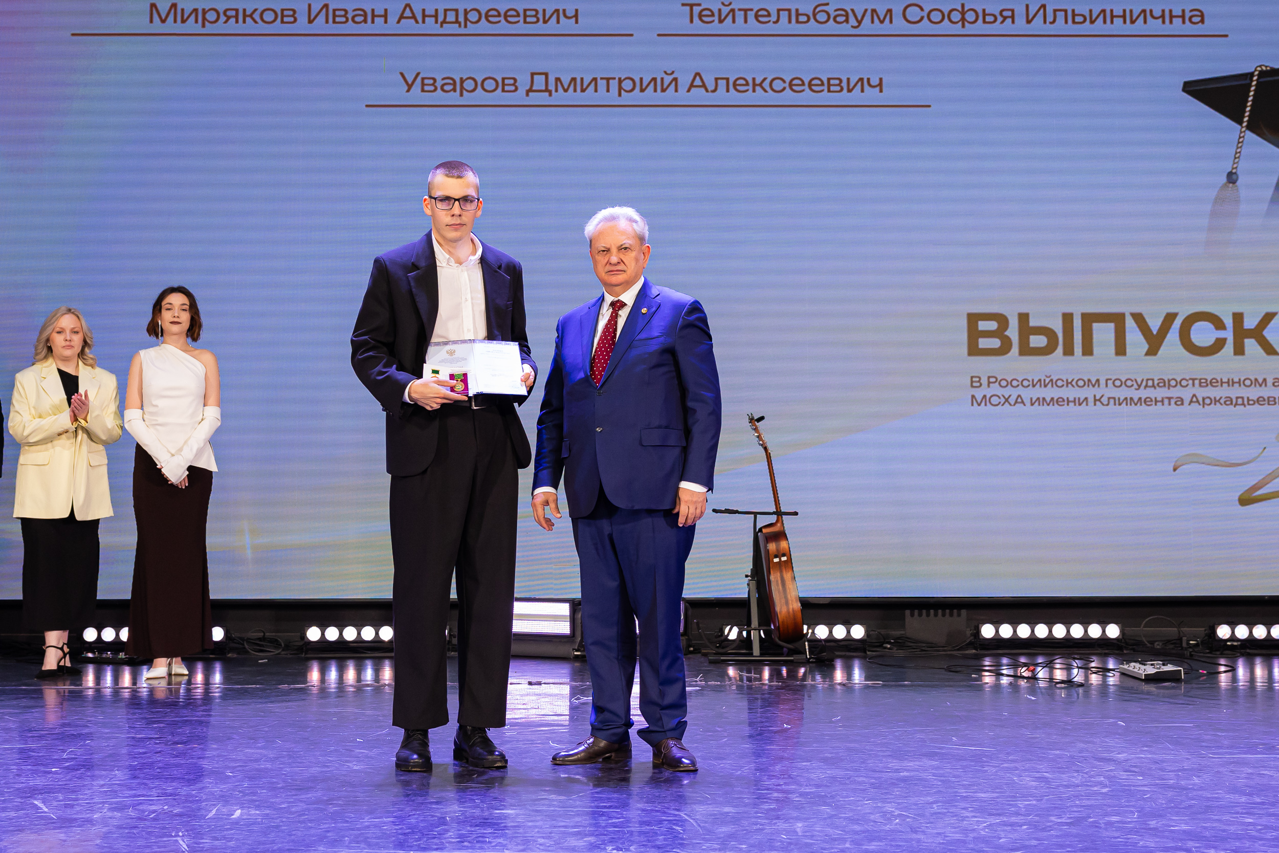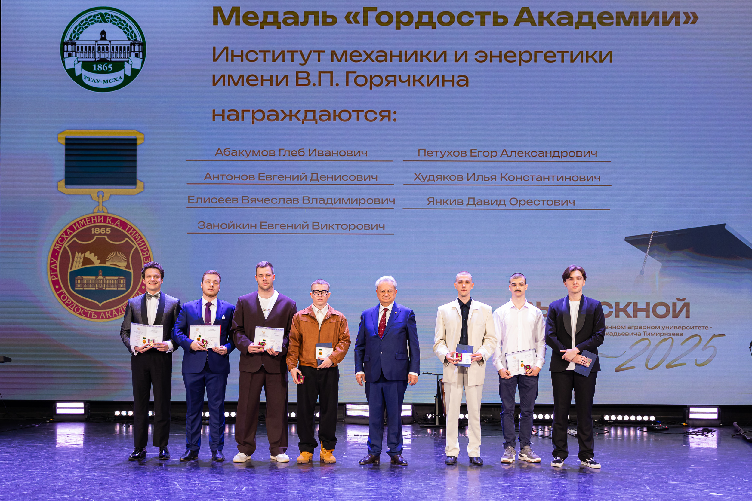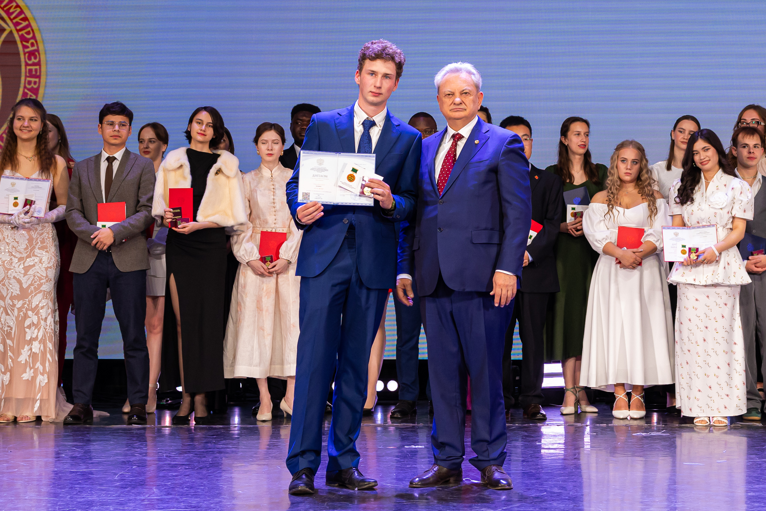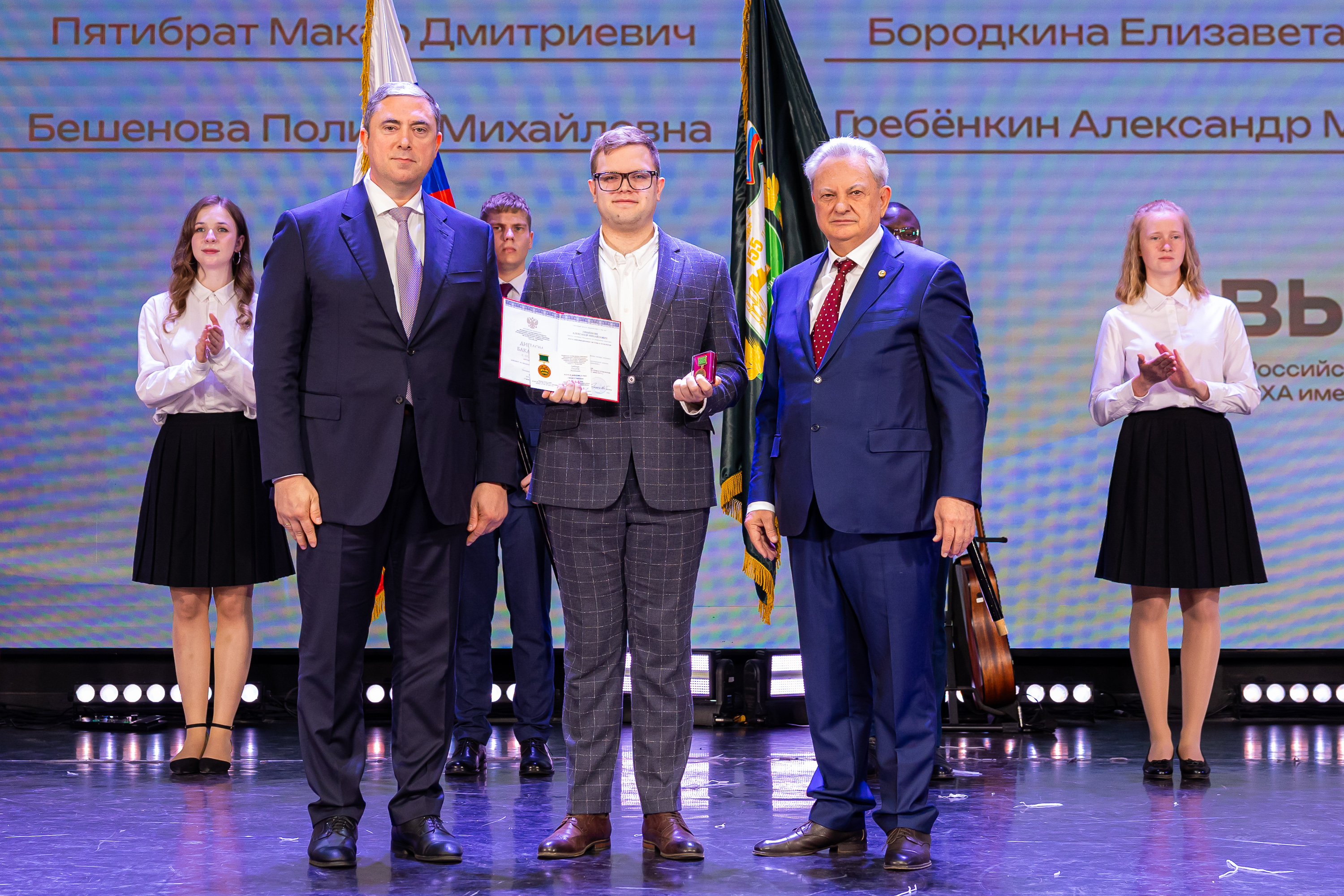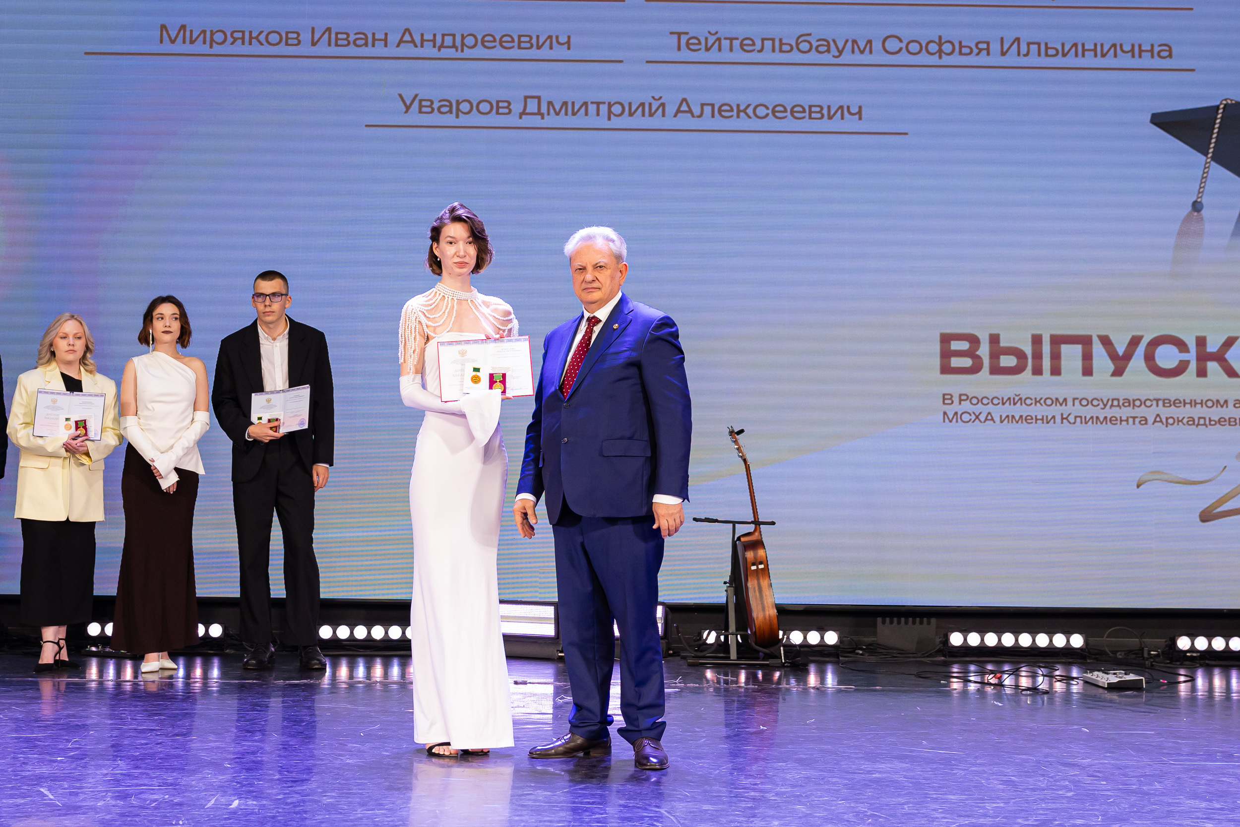 В новую жизнь выпускников напутствовал ректор РГАУ – МСХА имени К.А. Тимирязева, академик РАН, профессор Владимир Иванович Трухачев: «Особая гордость – видеть такое количество усердных и целеустремленных студентов: 945 дипломов с отличием вручены сегодня. Это не просто оценки, это символ вашего трудолюбия, вашей настойчивости и глубокого погружения в выбранную профессию. Вы – золотой фонд нашего университета, и мы уверены, что вы станете двигателем перемен в аграрной отрасли и за её пределами. И, конечно, мы отдельно аплодируем 108 замечательным студентам, которые удостоились почетного знака отличия «Гордость университета». Вы – лучшие из лучших, ваши имена уже вписаны в историю академии как примеры выдающихся достижений в учебе, науке, спорте и общественной жизни».