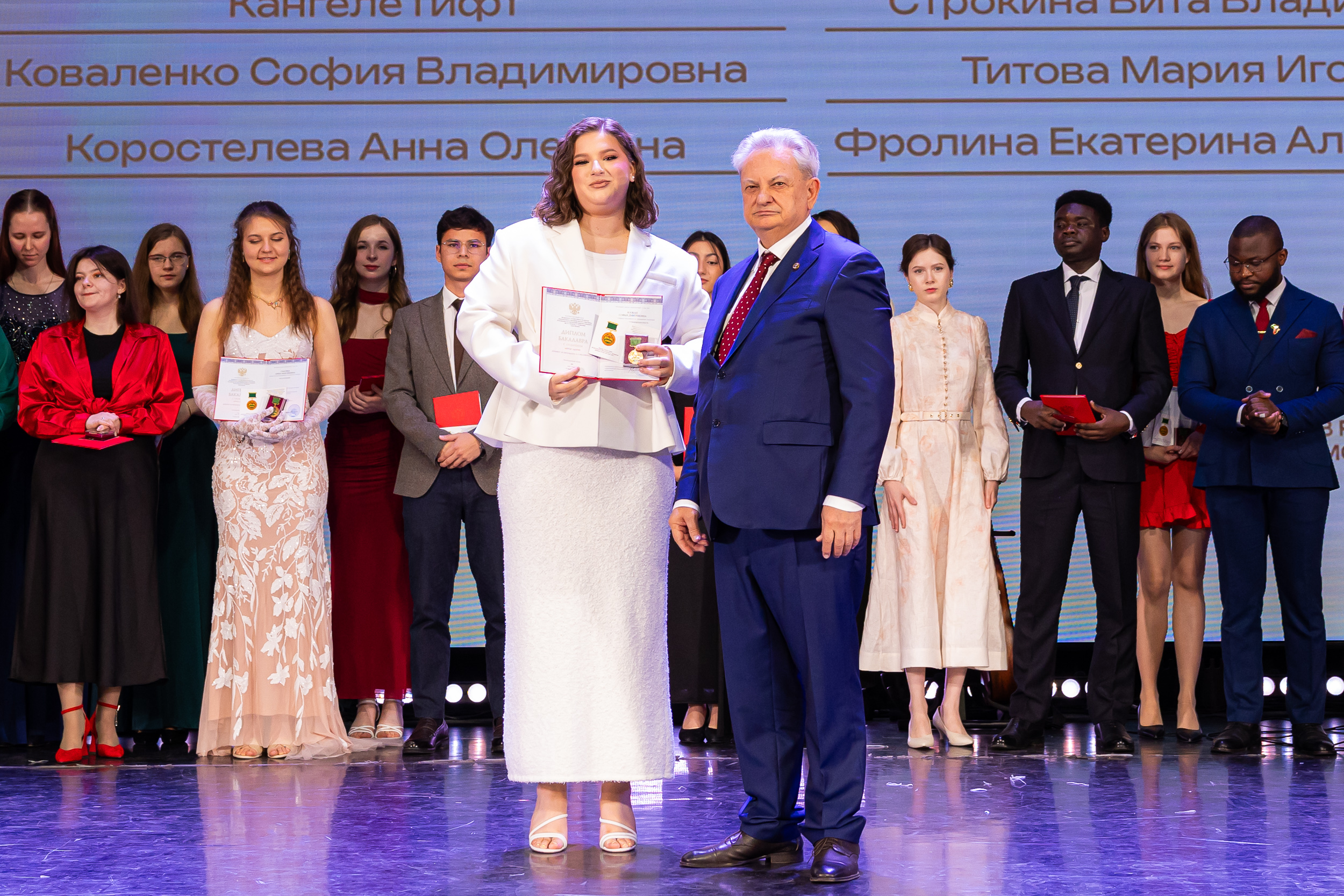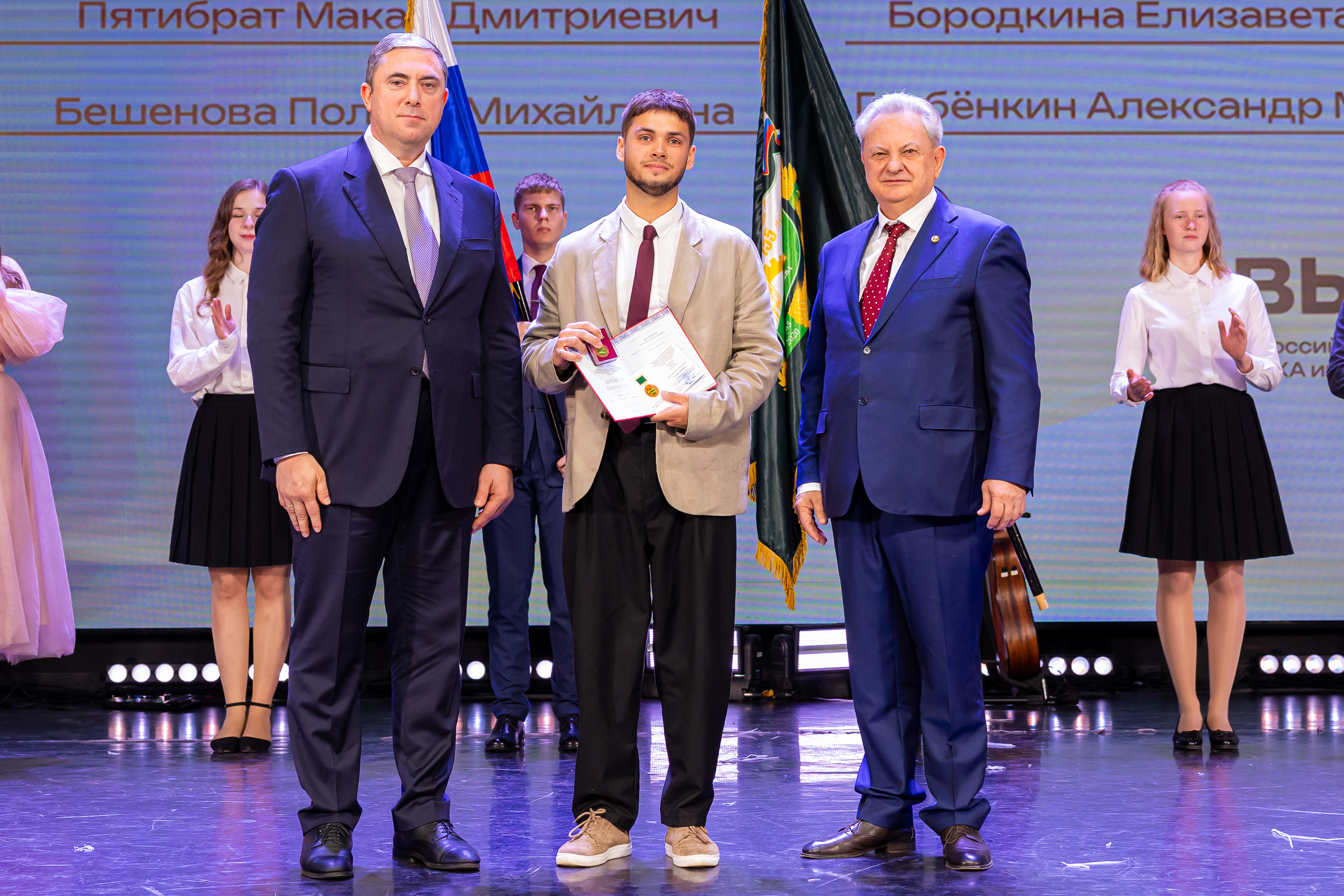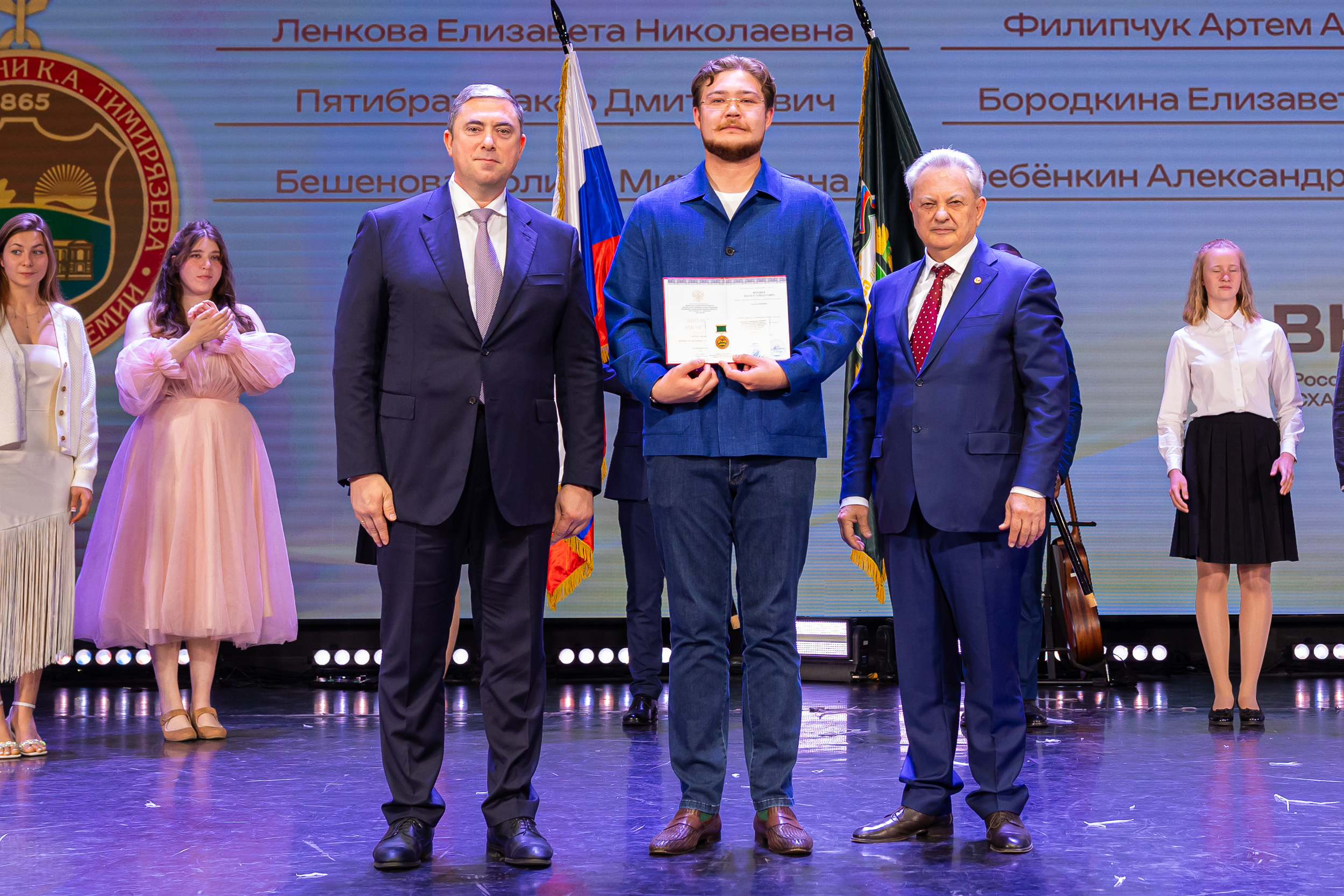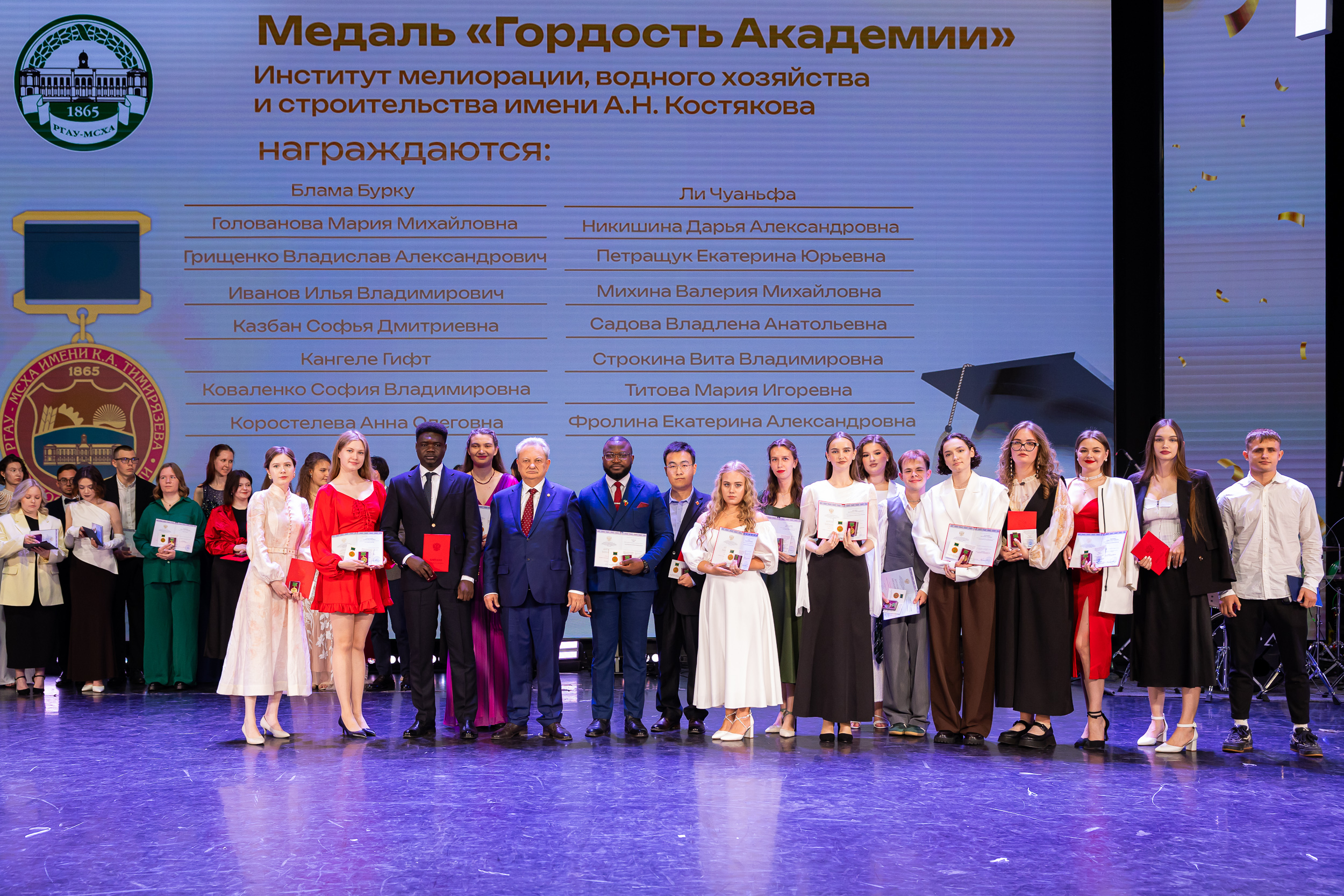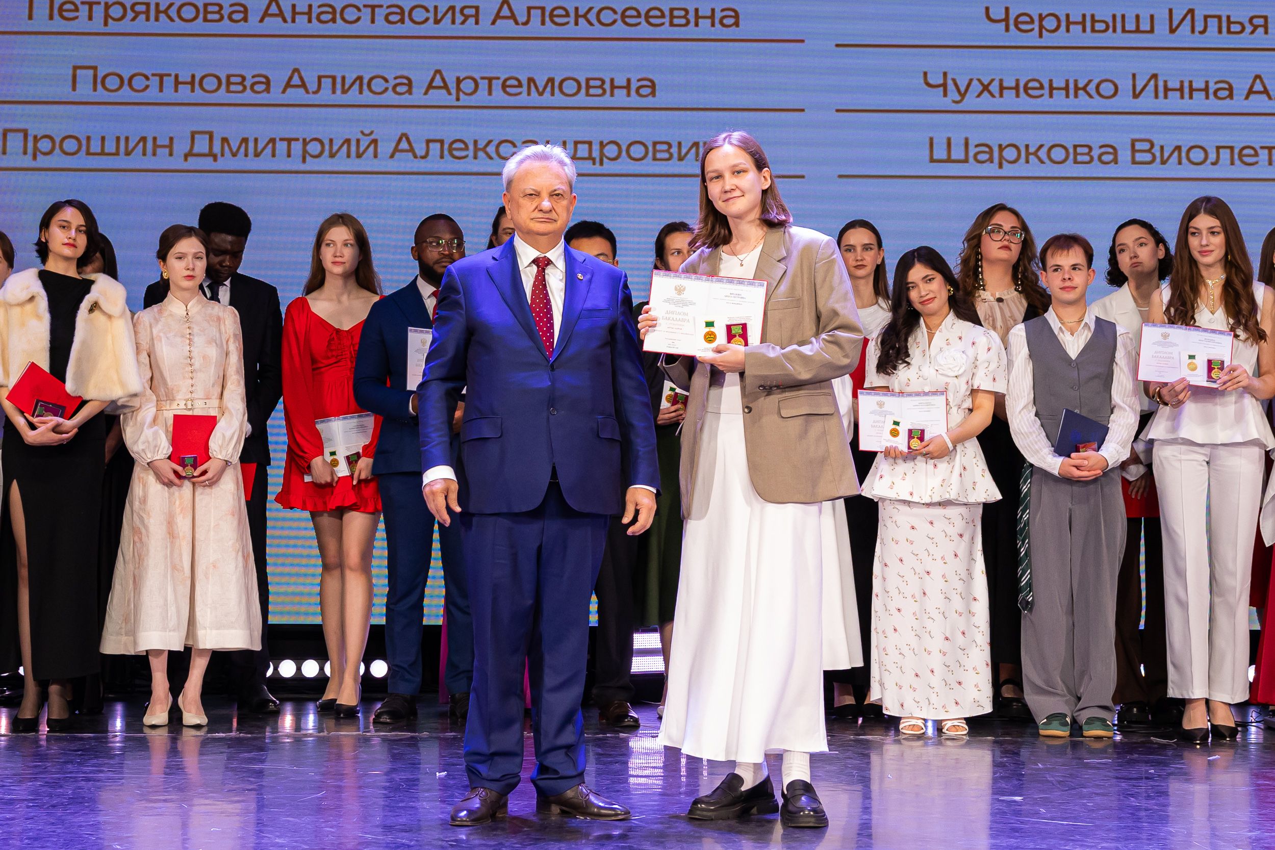 В новую жизнь выпускников напутствовал ректор РГАУ – МСХА имени К.А. Тимирязева, академик РАН, профессор Владимир Иванович Трухачев: «Особая гордость – видеть такое количество усердных и целеустремленных студентов: 945 дипломов с отличием вручены сегодня. Это не просто оценки, это символ вашего трудолюбия, вашей настойчивости и глубокого погружения в выбранную профессию. Вы – золотой фонд нашего университета, и мы уверены, что вы станете двигателем перемен в аграрной отрасли и за её пределами. И, конечно, мы отдельно аплодируем 108 замечательным студентам, которые удостоились почетного знака отличия «Гордость университета». Вы – лучшие из лучших, ваши имена уже вписаны в историю академии как примеры выдающихся достижений в учебе, науке, спорте и общественной жизни».