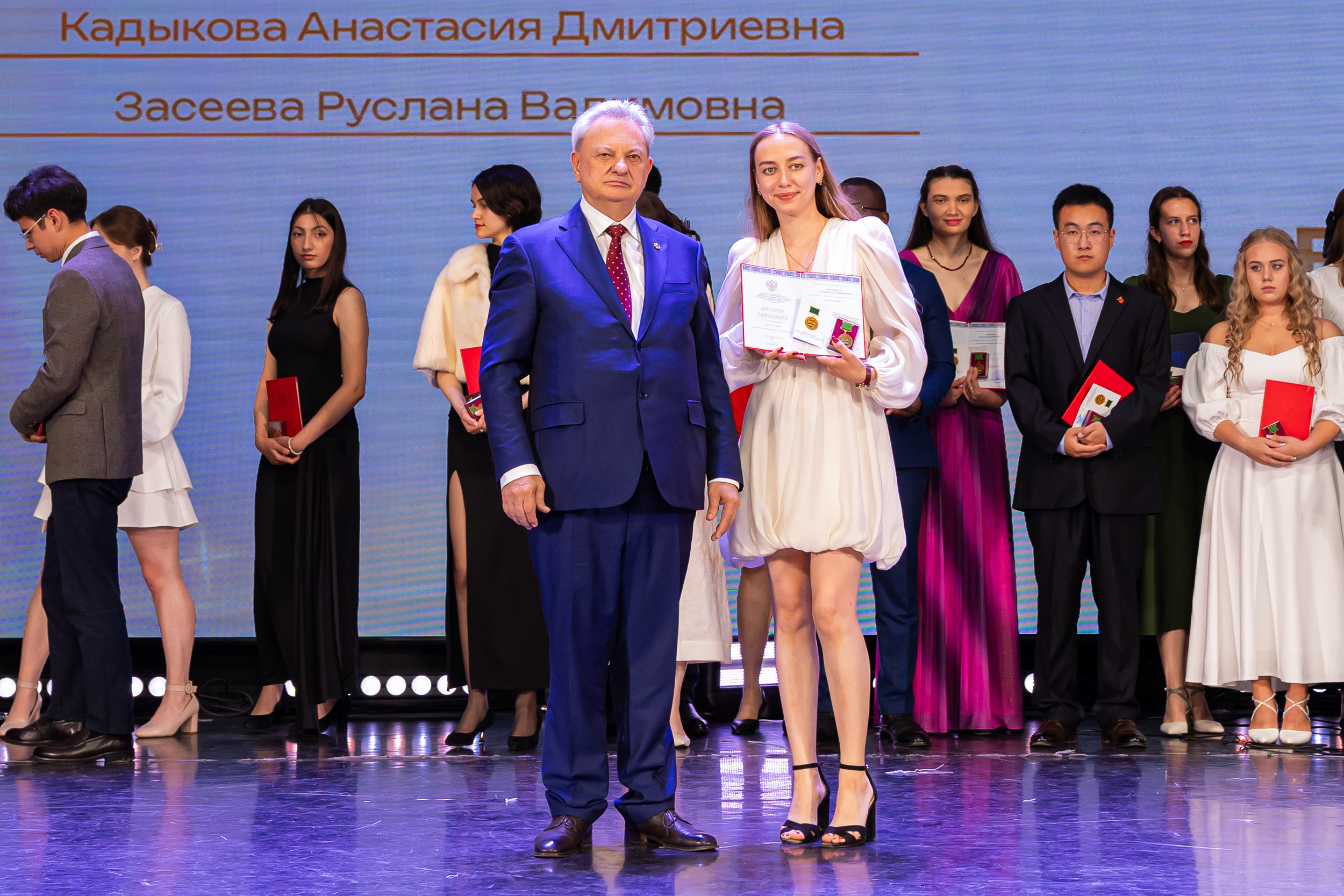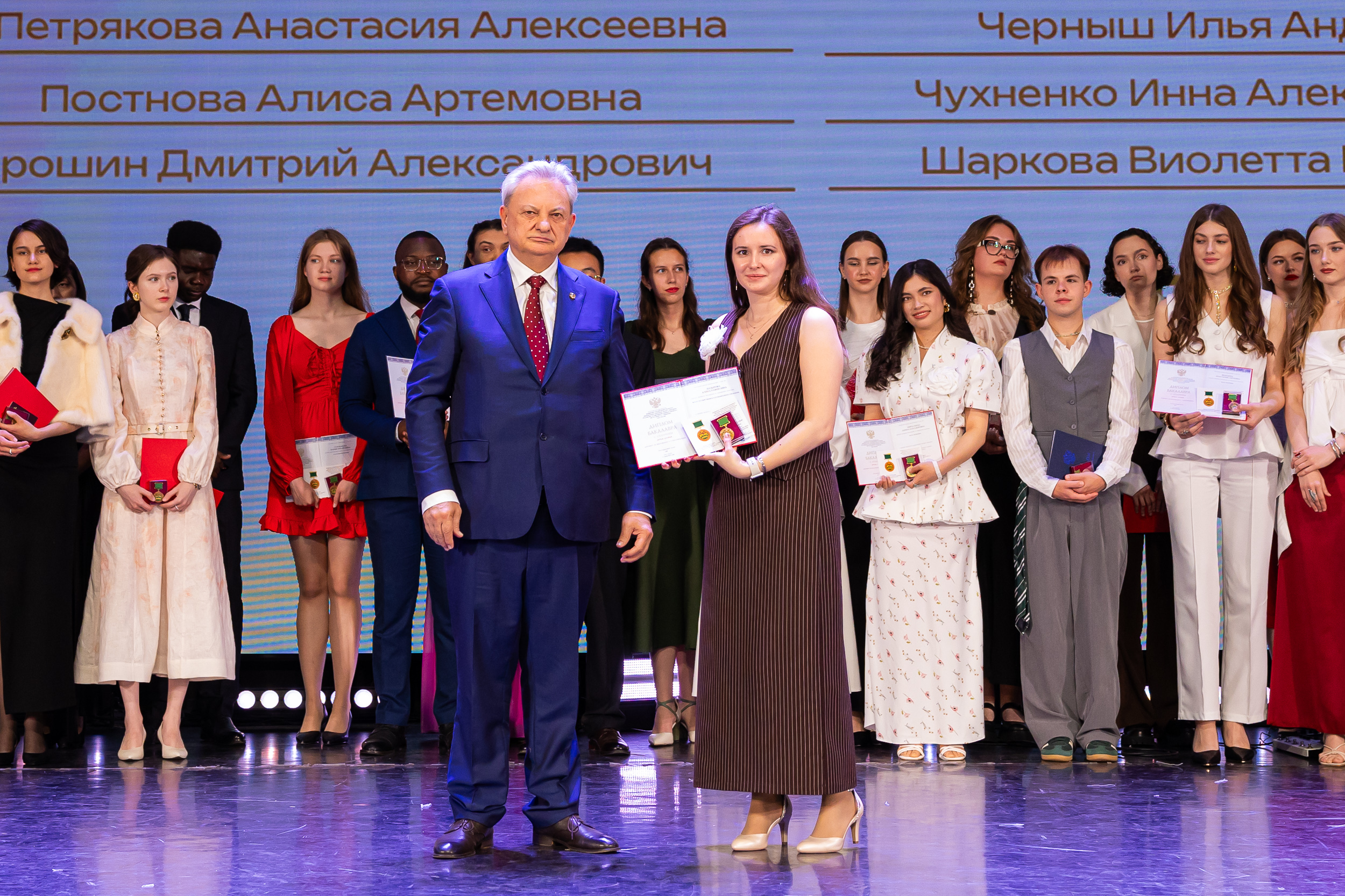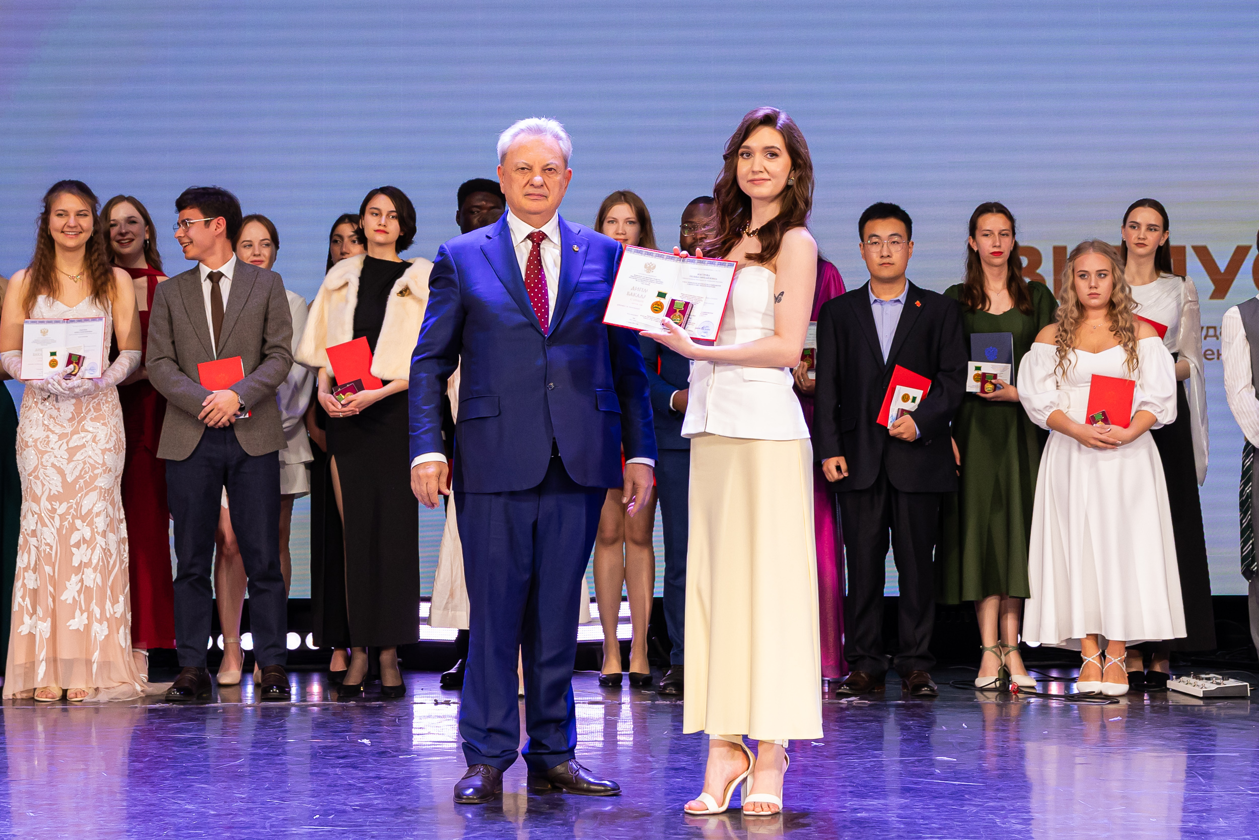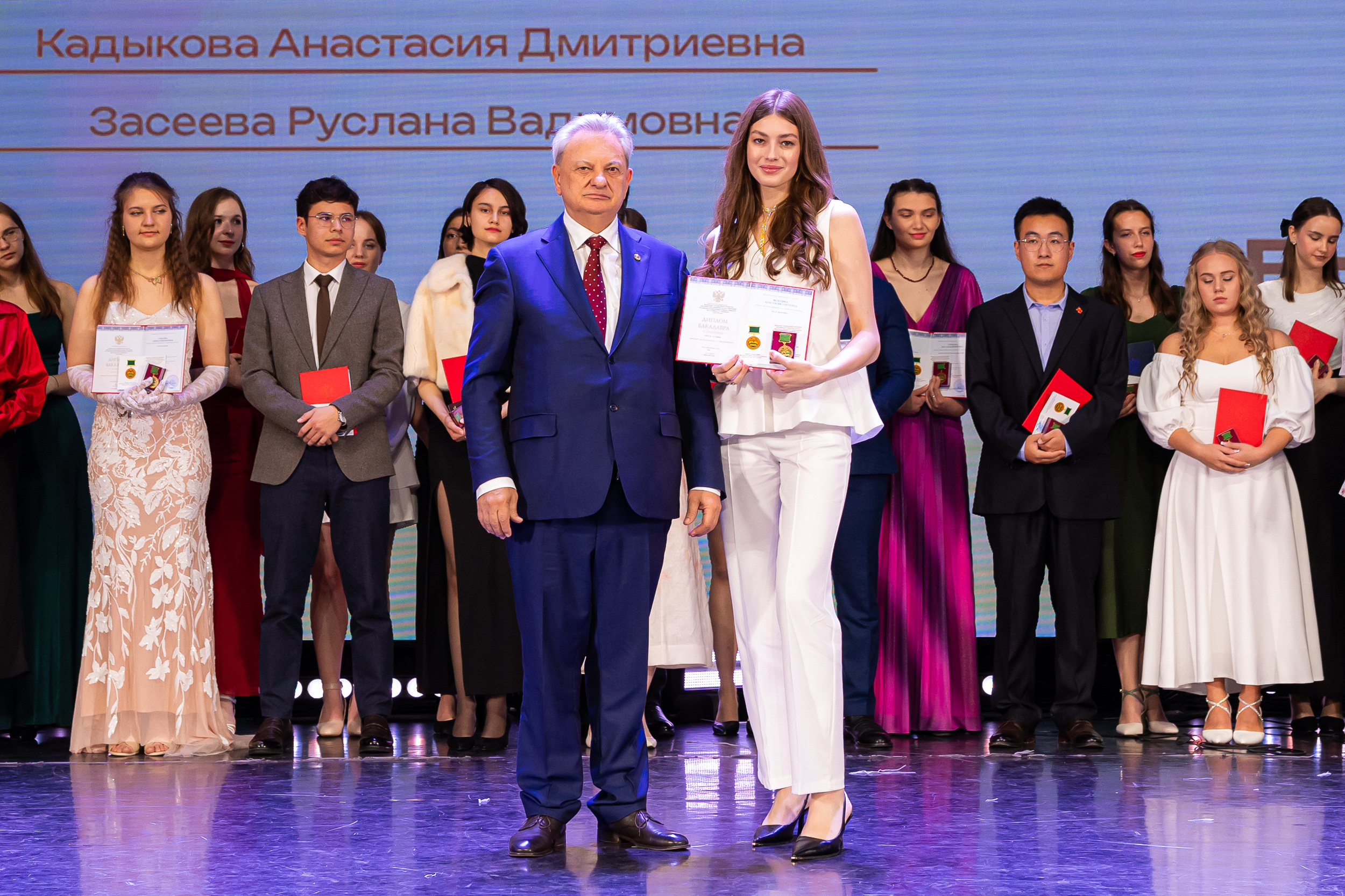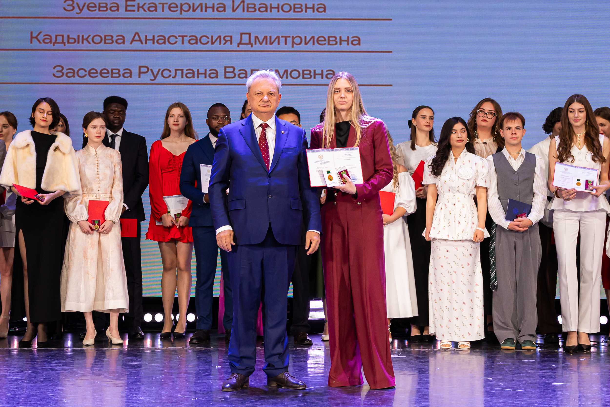 В новую жизнь выпускников напутствовал ректор РГАУ – МСХА имени К.А. Тимирязева, академик РАН, профессор Владимир Иванович Трухачев: «Особая гордость – видеть такое количество усердных и целеустремленных студентов: 945 дипломов с отличием вручены сегодня. Это не просто оценки, это символ вашего трудолюбия, вашей настойчивости и глубокого погружения в выбранную профессию. Вы – золотой фонд нашего университета, и мы уверены, что вы станете двигателем перемен в аграрной отрасли и за её пределами. И, конечно, мы отдельно аплодируем 108 замечательным студентам, которые удостоились почетного знака отличия «Гордость университета». Вы – лучшие из лучших, ваши имена уже вписаны в историю академии как примеры выдающихся достижений в учебе, науке, спорте и общественной жизни».