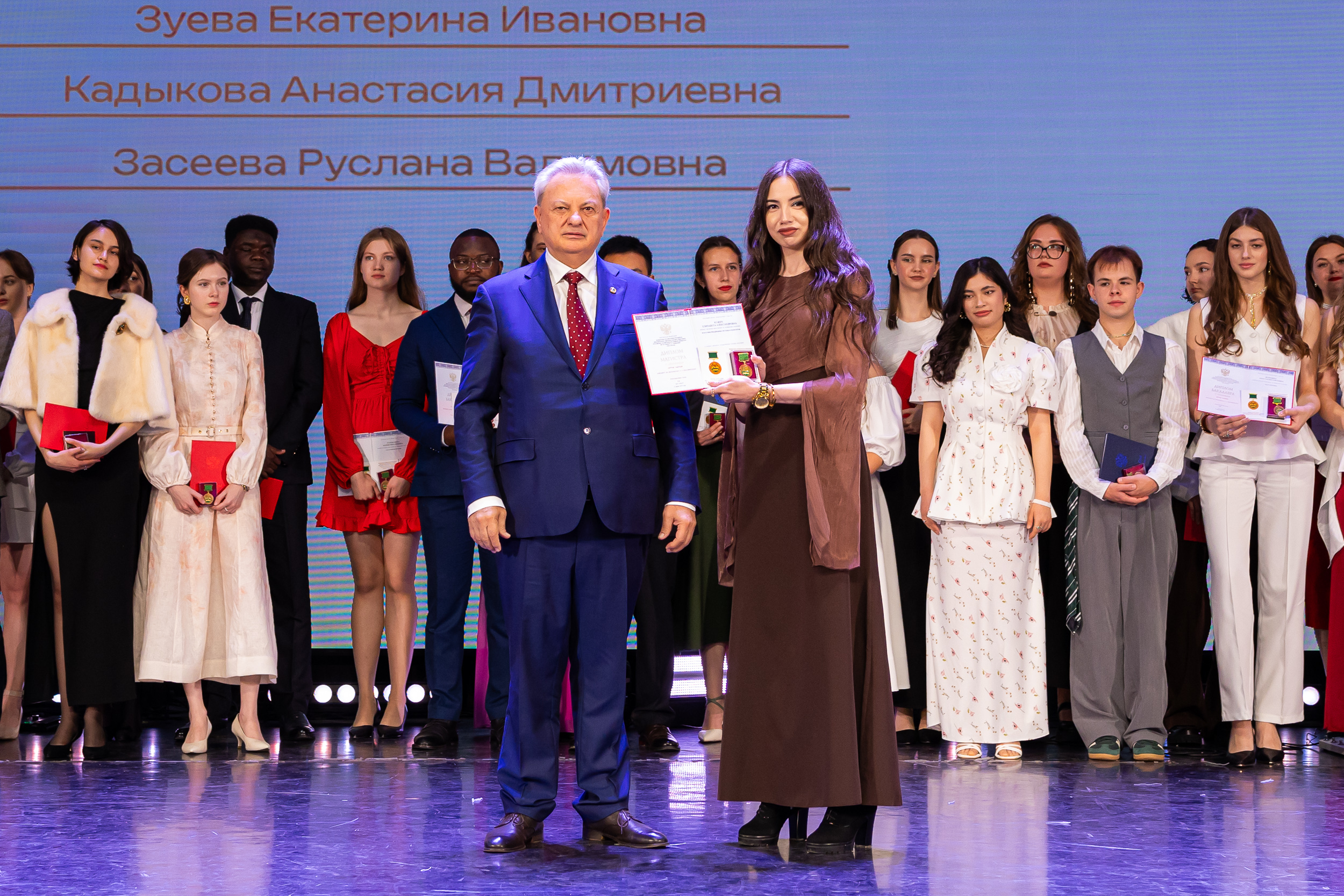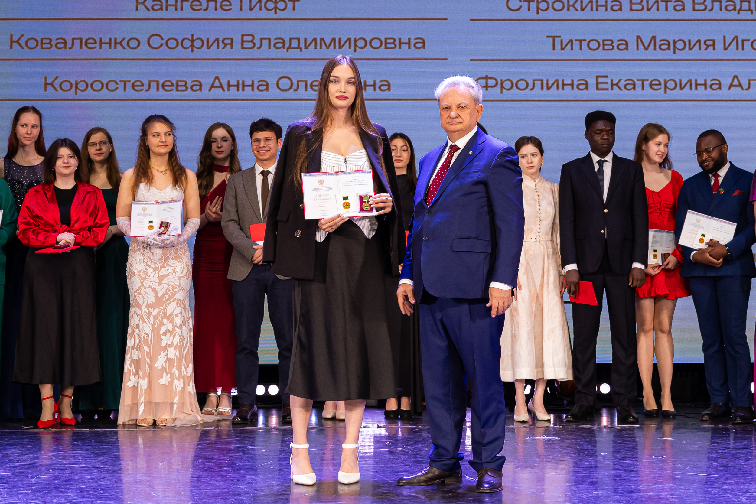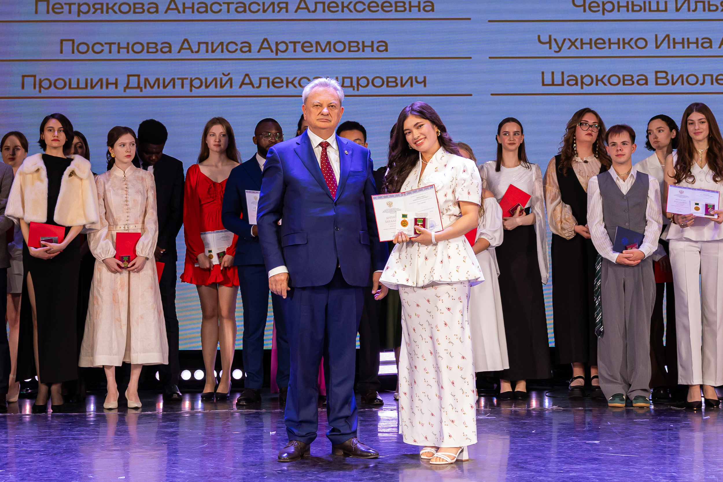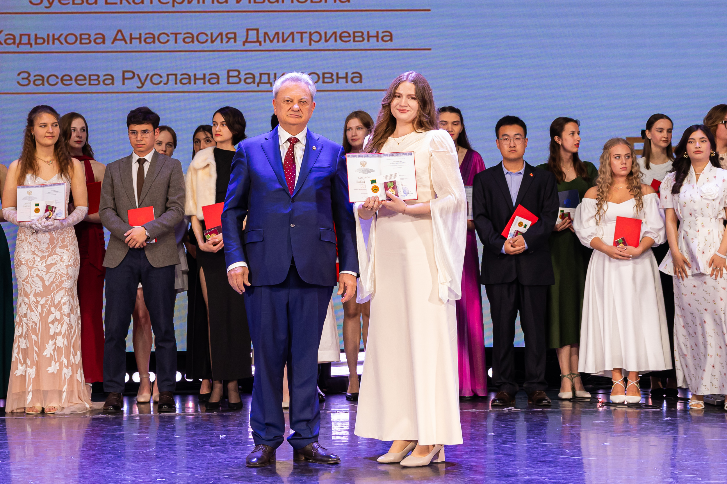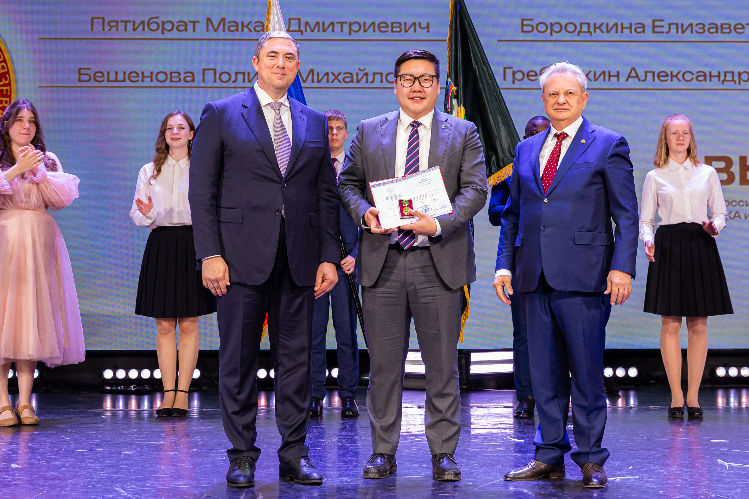 В новую жизнь выпускников напутствовал ректор РГАУ – МСХА имени К.А. Тимирязева, академик РАН, профессор Владимир Иванович Трухачев: «Особая гордость – видеть такое количество усердных и целеустремленных студентов: 945 дипломов с отличием вручены сегодня. Это не просто оценки, это символ вашего трудолюбия, вашей настойчивости и глубокого погружения в выбранную профессию. Вы – золотой фонд нашего университета, и мы уверены, что вы станете двигателем перемен в аграрной отрасли и за её пределами. И, конечно, мы отдельно аплодируем 108 замечательным студентам, которые удостоились почетного знака отличия «Гордость университета». Вы – лучшие из лучших, ваши имена уже вписаны в историю академии как примеры выдающихся достижений в учебе, науке, спорте и общественной жизни».