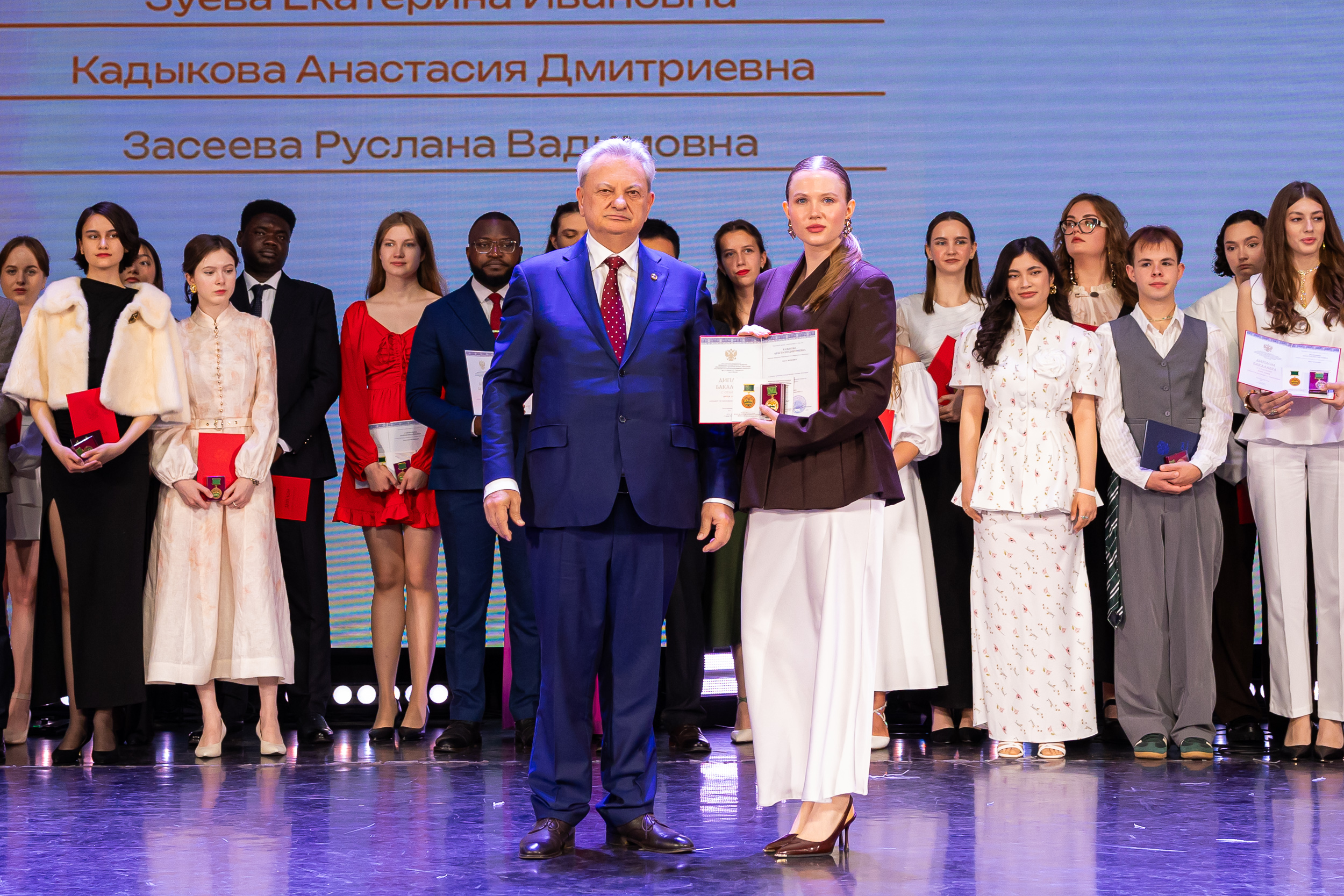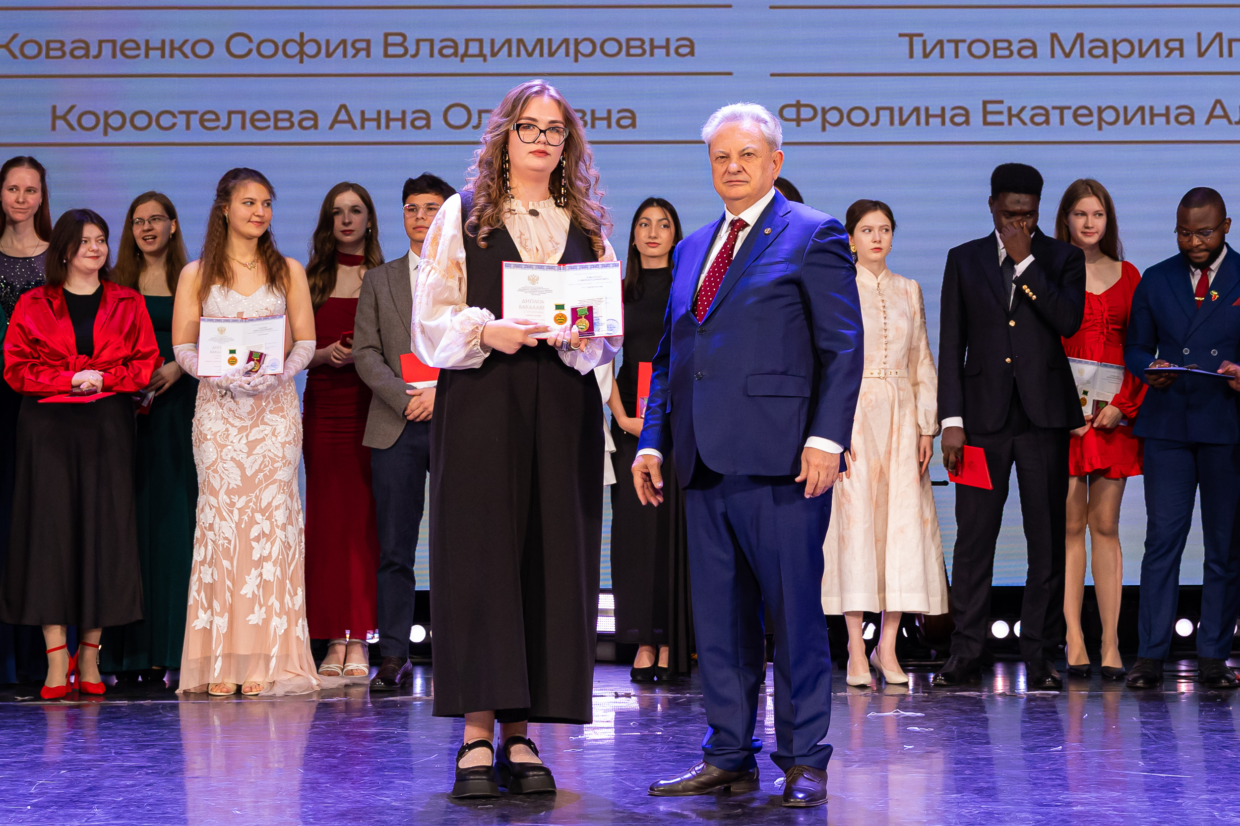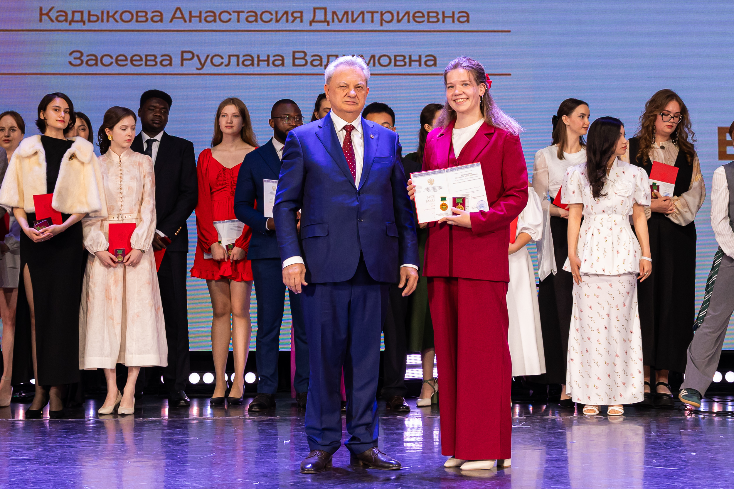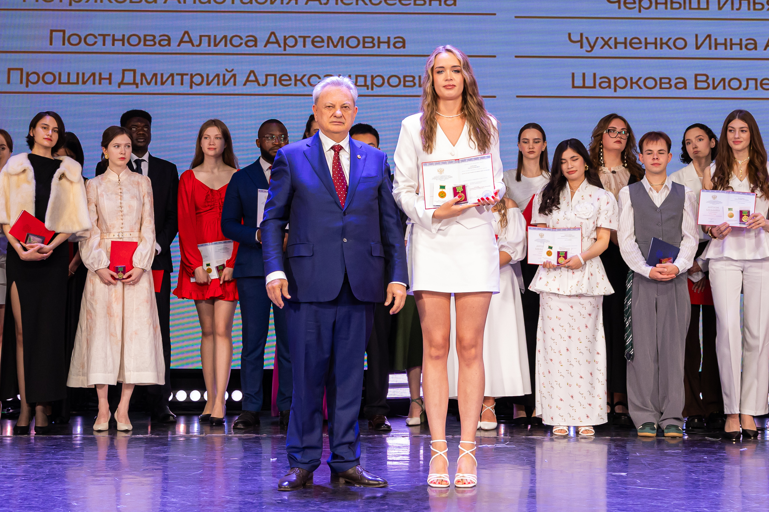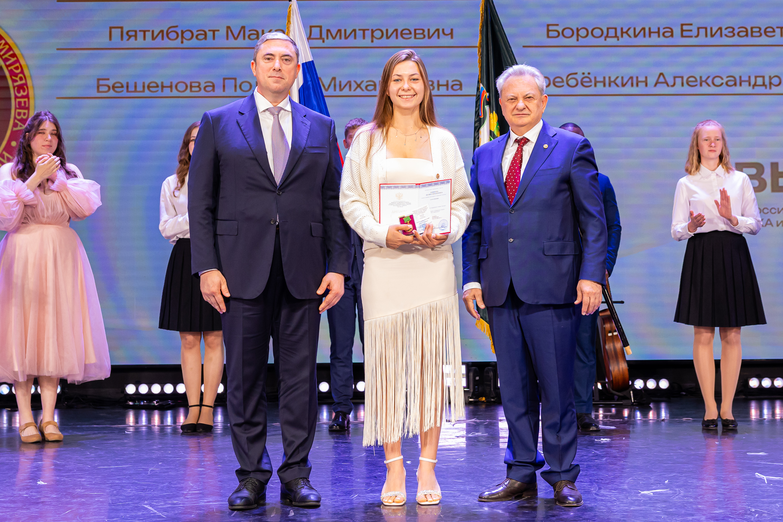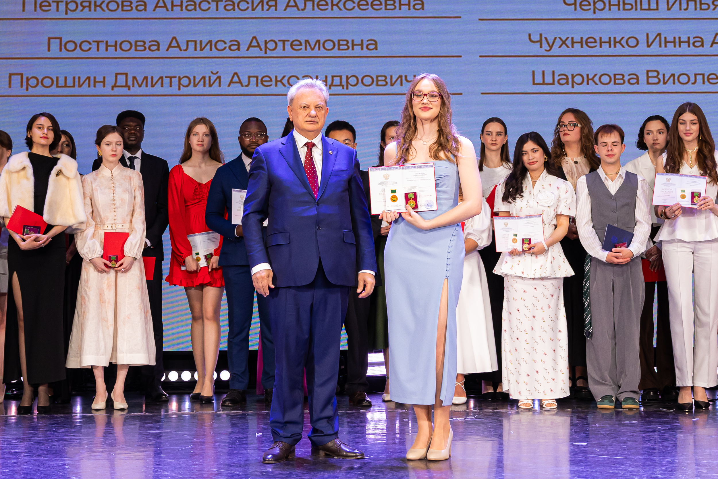 В новую жизнь выпускников напутствовал ректор РГАУ – МСХА имени К.А. Тимирязева, академик РАН, профессор Владимир Иванович Трухачев: «Особая гордость – видеть такое количество усердных и целеустремленных студентов: 945 дипломов с отличием вручены сегодня. Это не просто оценки, это символ вашего трудолюбия, вашей настойчивости и глубокого погружения в выбранную профессию. Вы – золотой фонд нашего университета, и мы уверены, что вы станете двигателем перемен в аграрной отрасли и за её пределами. И, конечно, мы отдельно аплодируем 108 замечательным студентам, которые удостоились почетного знака отличия «Гордость университета». Вы – лучшие из лучших, ваши имена уже вписаны в историю академии как примеры выдающихся достижений в учебе, науке, спорте и общественной жизни».
