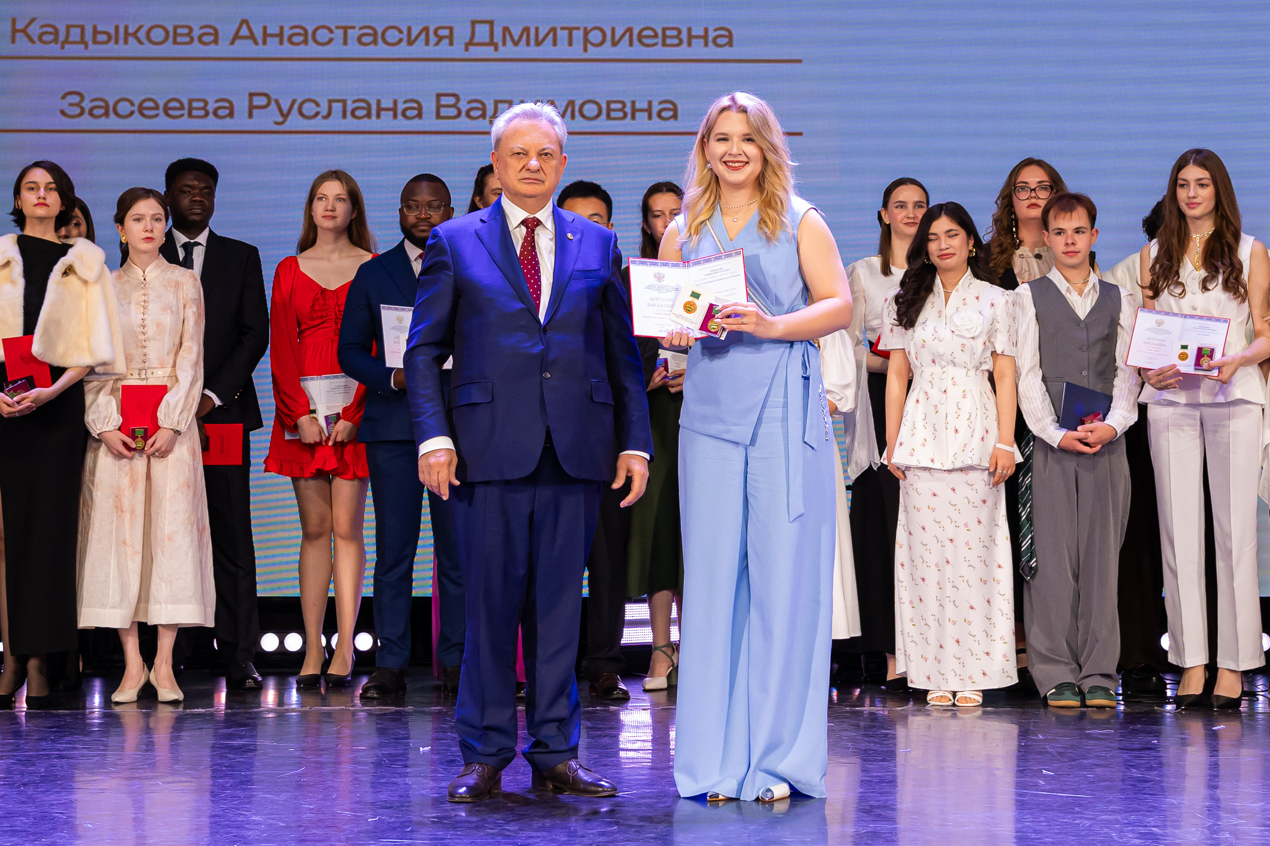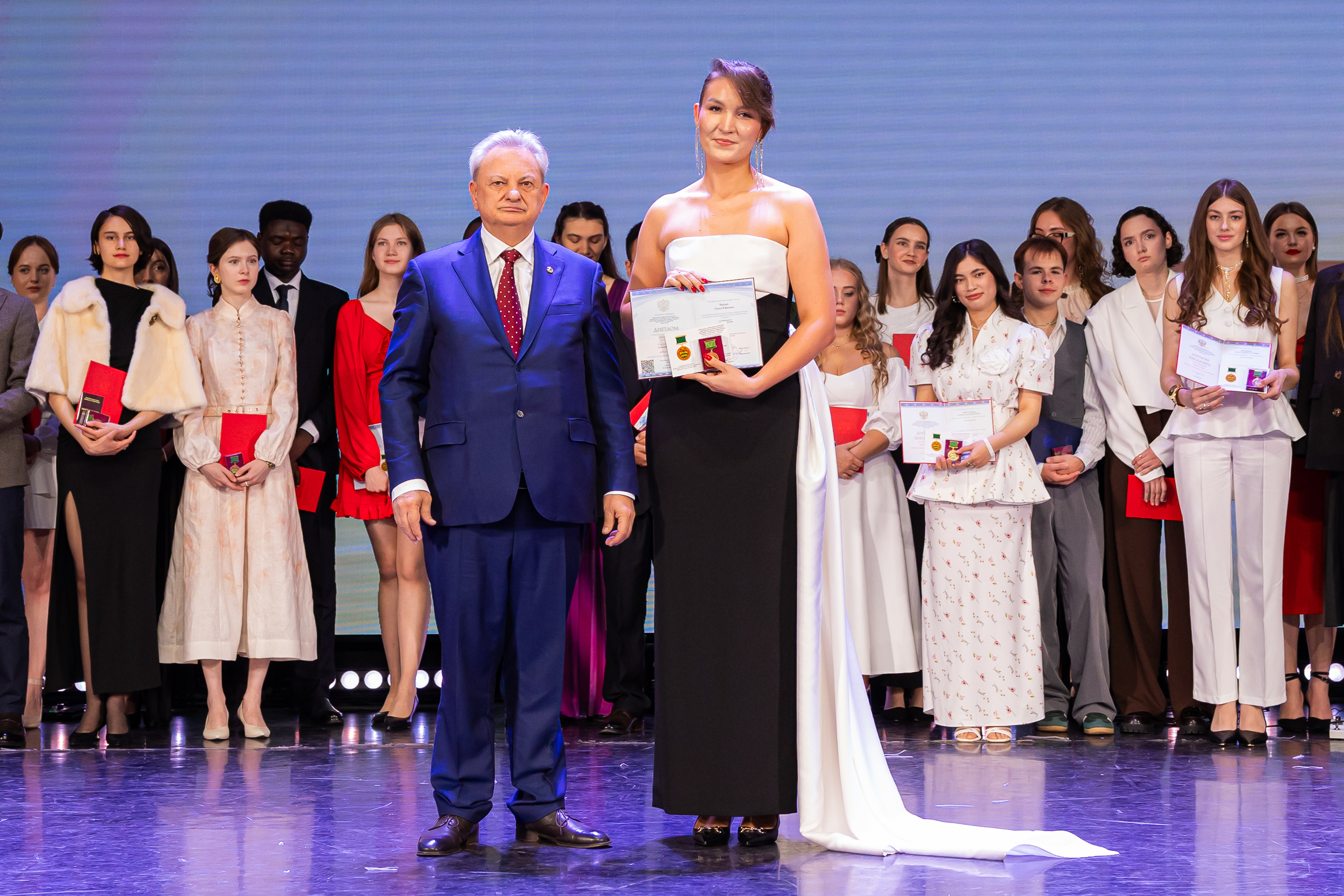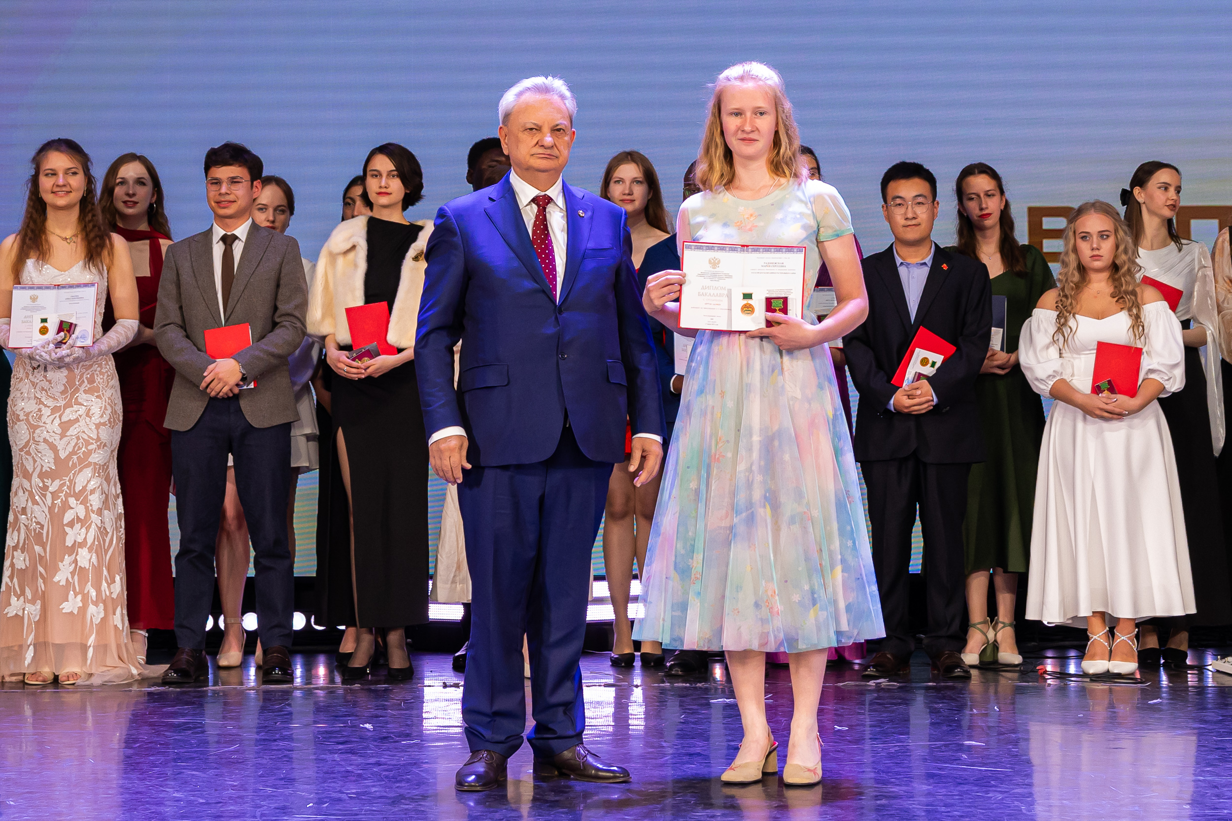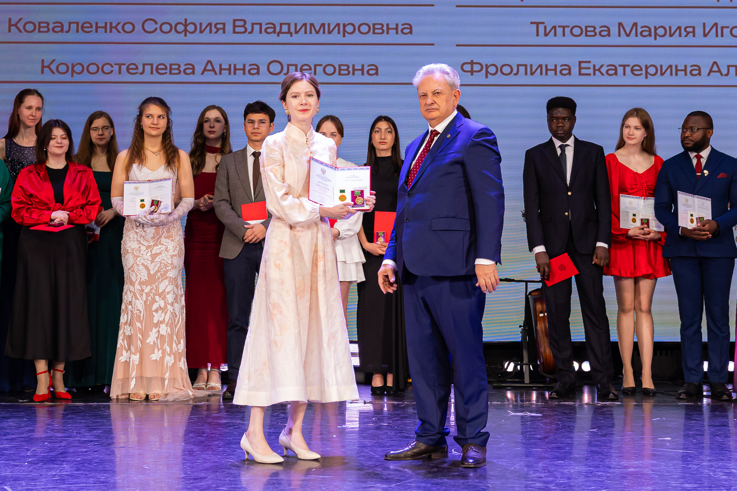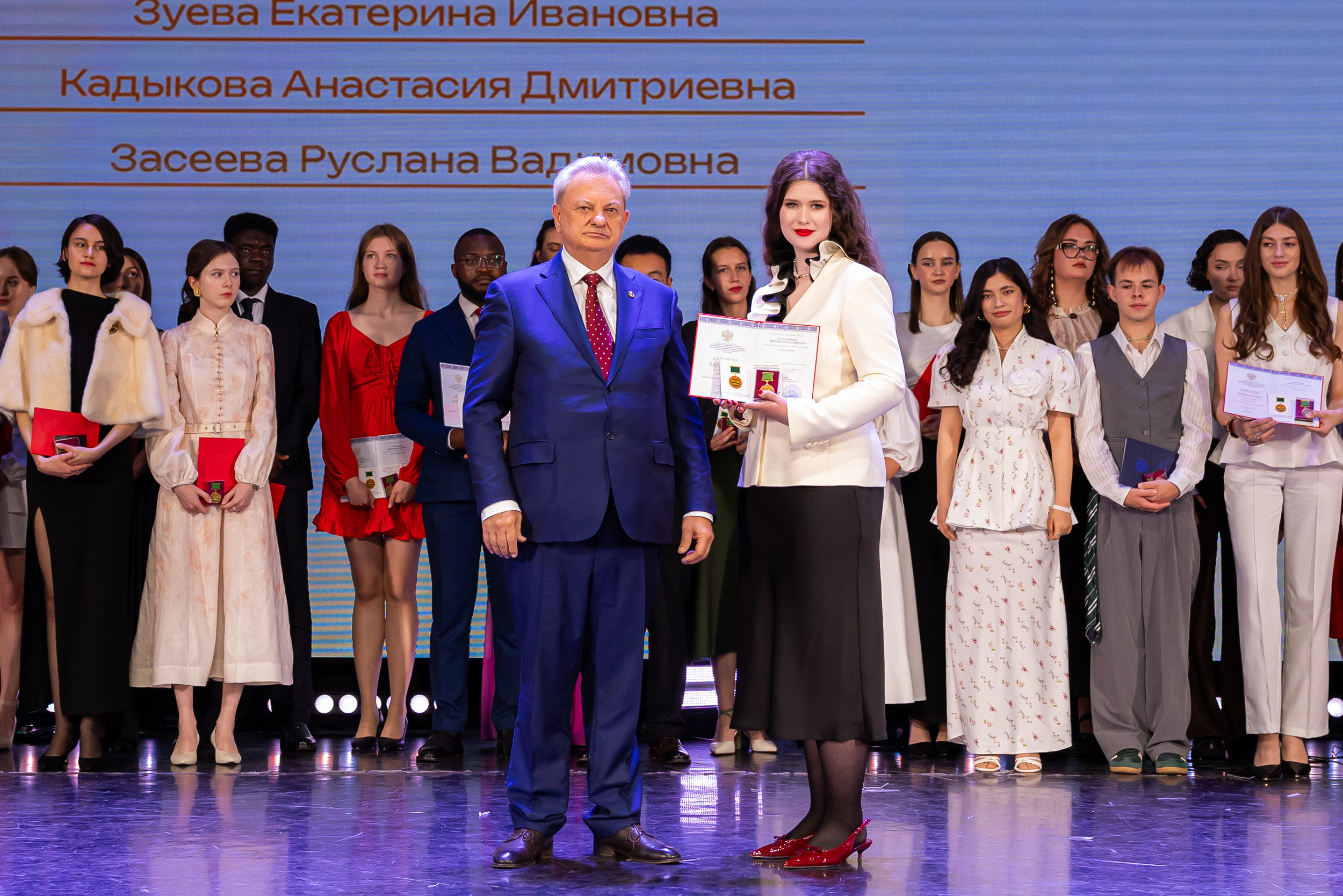 В новую жизнь выпускников напутствовал ректор РГАУ – МСХА имени К.А. Тимирязева, академик РАН, профессор Владимир Иванович Трухачев: «Особая гордость – видеть такое количество усердных и целеустремленных студентов: 945 дипломов с отличием вручены сегодня. Это не просто оценки, это символ вашего трудолюбия, вашей настойчивости и глубокого погружения в выбранную профессию. Вы – золотой фонд нашего университета, и мы уверены, что вы станете двигателем перемен в аграрной отрасли и за её пределами. И, конечно, мы отдельно аплодируем 108 замечательным студентам, которые удостоились почетного знака отличия «Гордость университета». Вы – лучшие из лучших, ваши имена уже вписаны в историю академии как примеры выдающихся достижений в учебе, науке, спорте и общественной жизни».