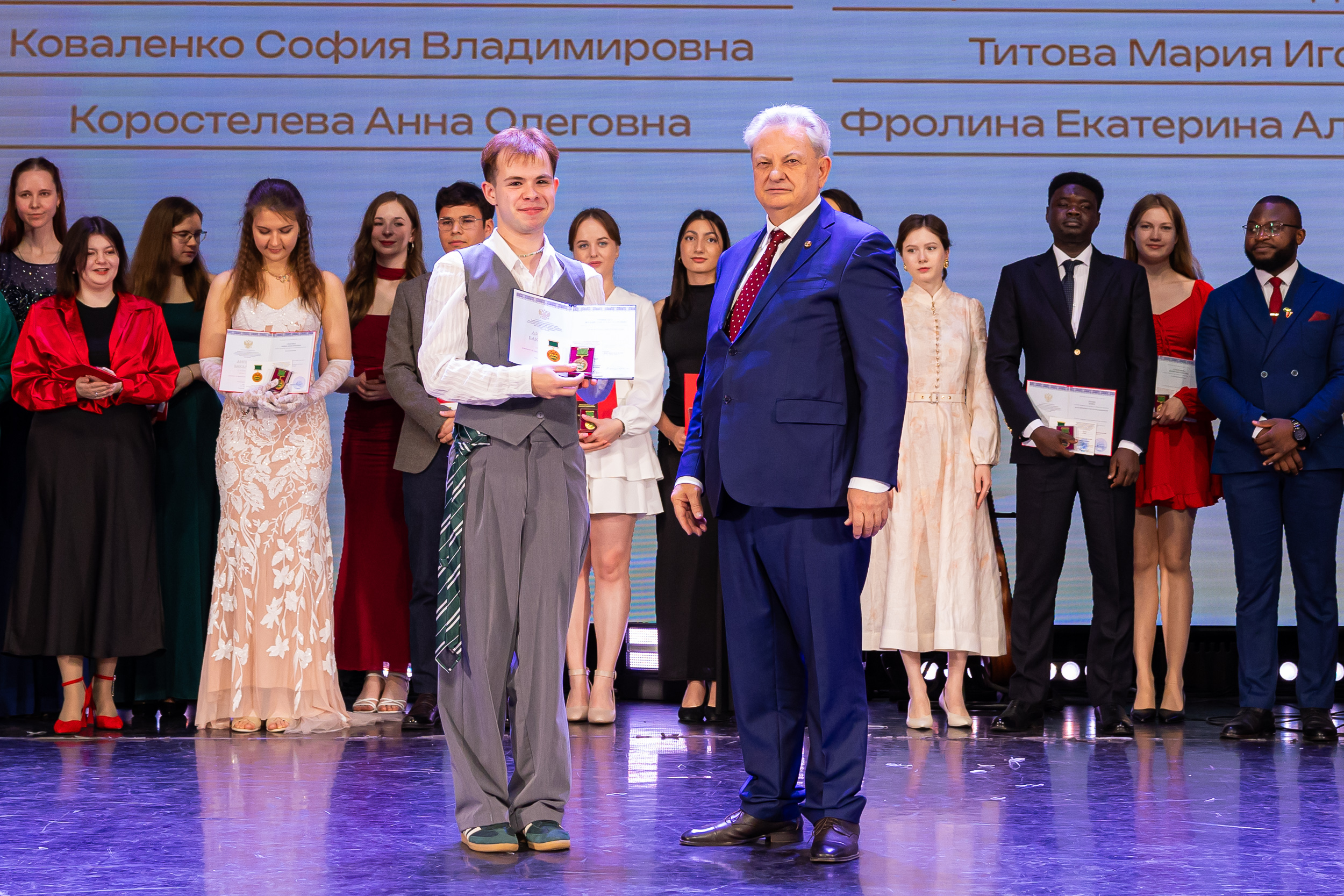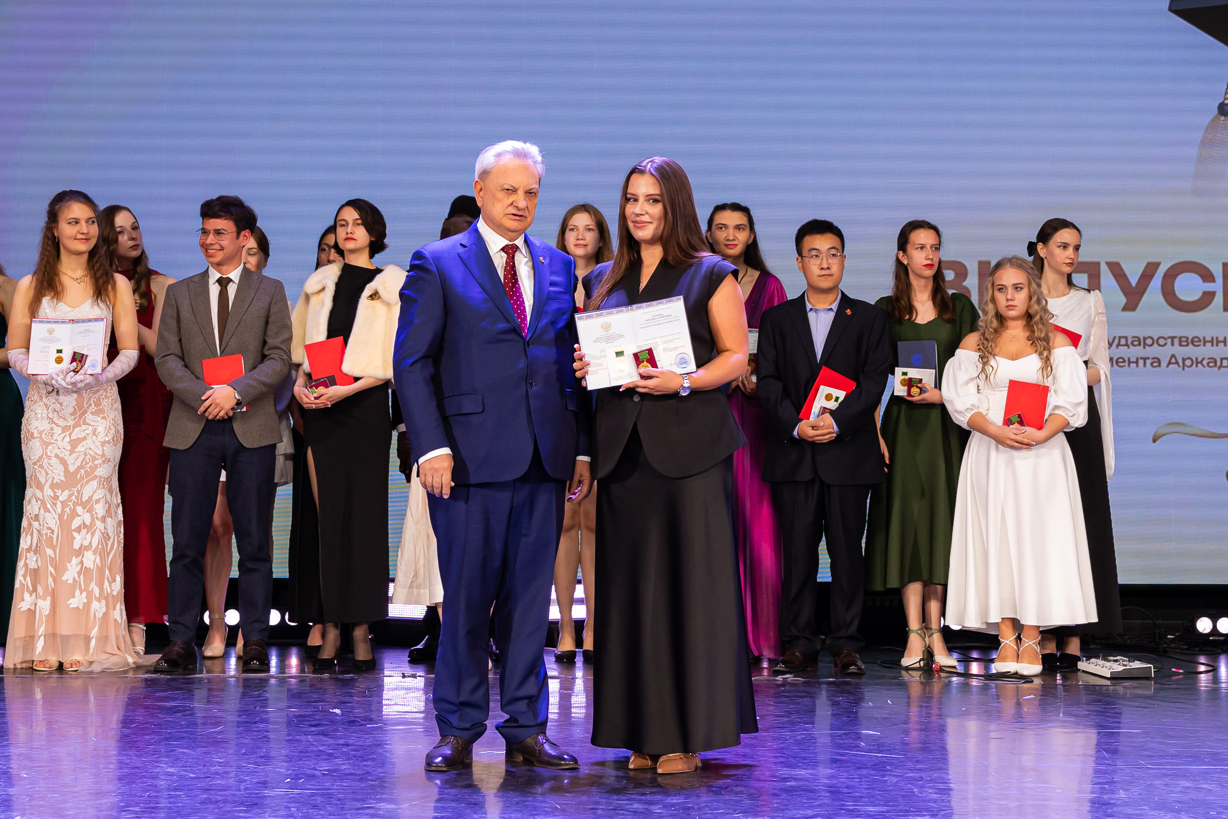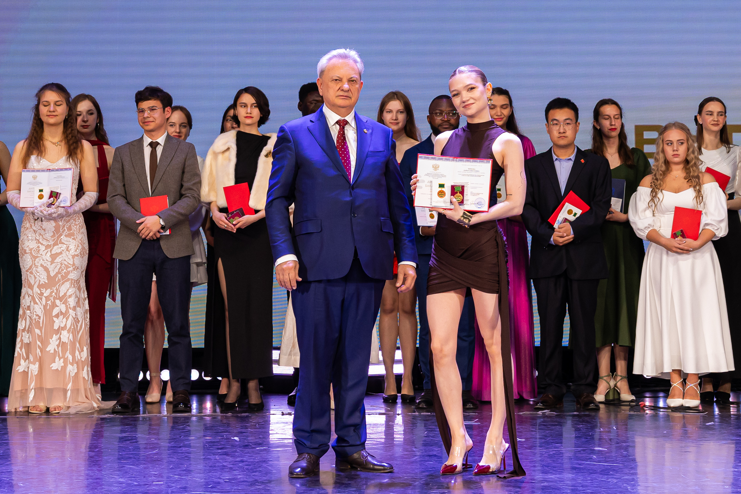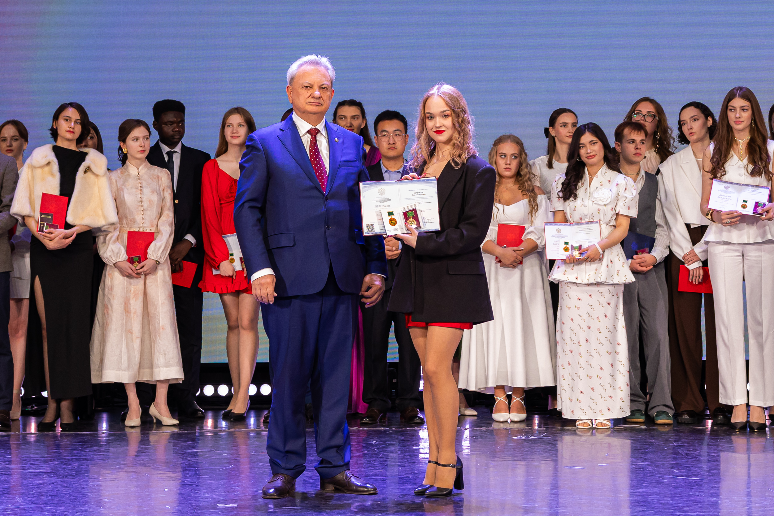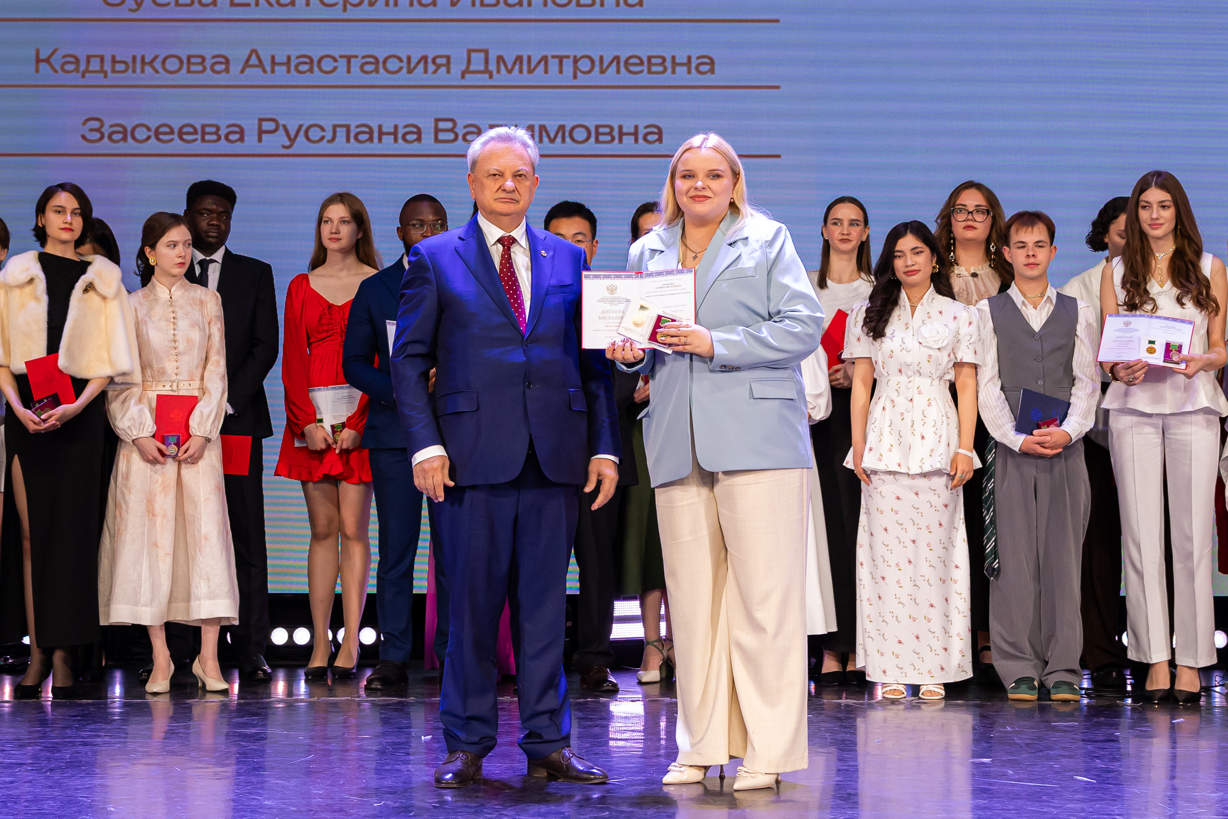 В новую жизнь выпускников напутствовал ректор РГАУ – МСХА имени К.А. Тимирязева, академик РАН, профессор Владимир Иванович Трухачев: «Особая гордость – видеть такое количество усердных и целеустремленных студентов: 945 дипломов с отличием вручены сегодня. Это не просто оценки, это символ вашего трудолюбия, вашей настойчивости и глубокого погружения в выбранную профессию. Вы – золотой фонд нашего университета, и мы уверены, что вы станете двигателем перемен в аграрной отрасли и за её пределами. И, конечно, мы отдельно аплодируем 108 замечательным студентам, которые удостоились почетного знака отличия «Гордость университета». Вы – лучшие из лучших, ваши имена уже вписаны в историю академии как примеры выдающихся достижений в учебе, науке, спорте и общественной жизни».