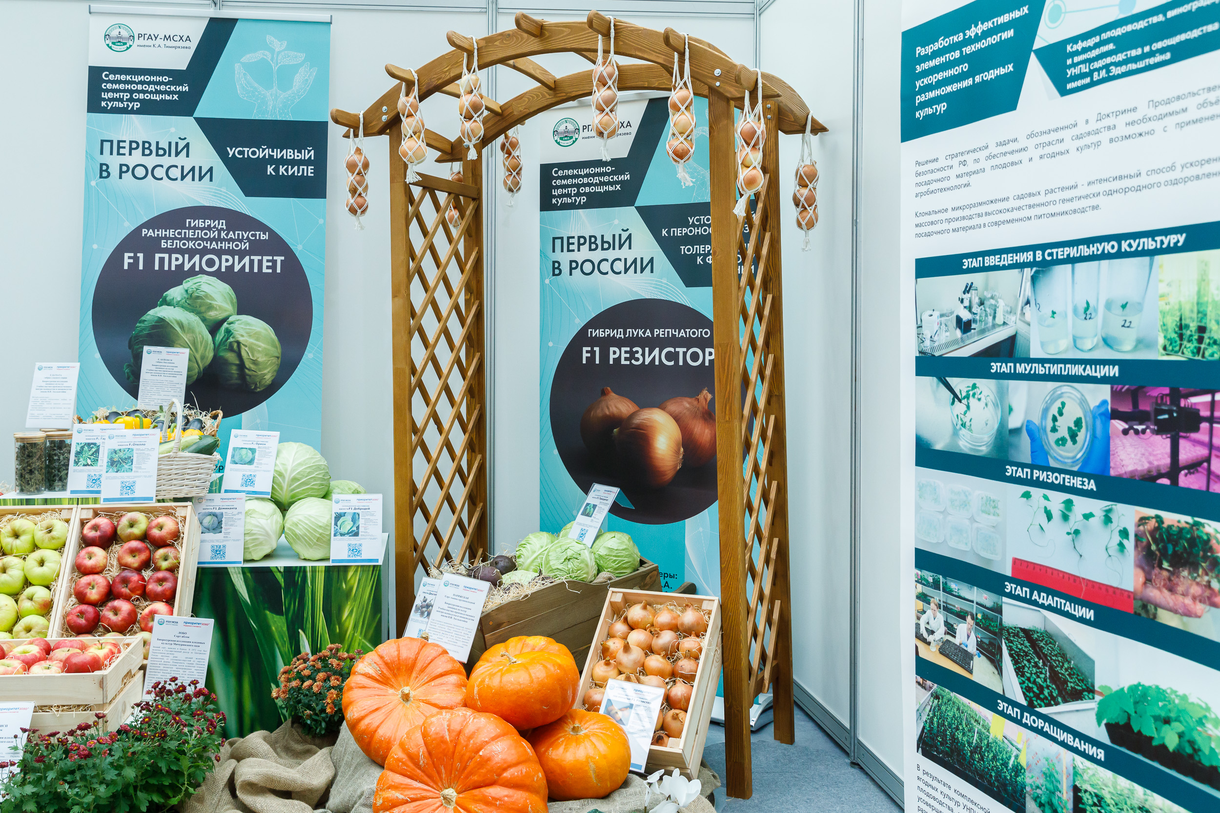 Пристальное внимание участников и гостей выставки привлекали инновационные разработки и селекционные достижения РГАУ-МСХА имени К.А. Тимирязева. На стенде университета была представлена коллекция плодовых и овощных культур, обладающих высокой урожайностью и содержанием полезных веществ.