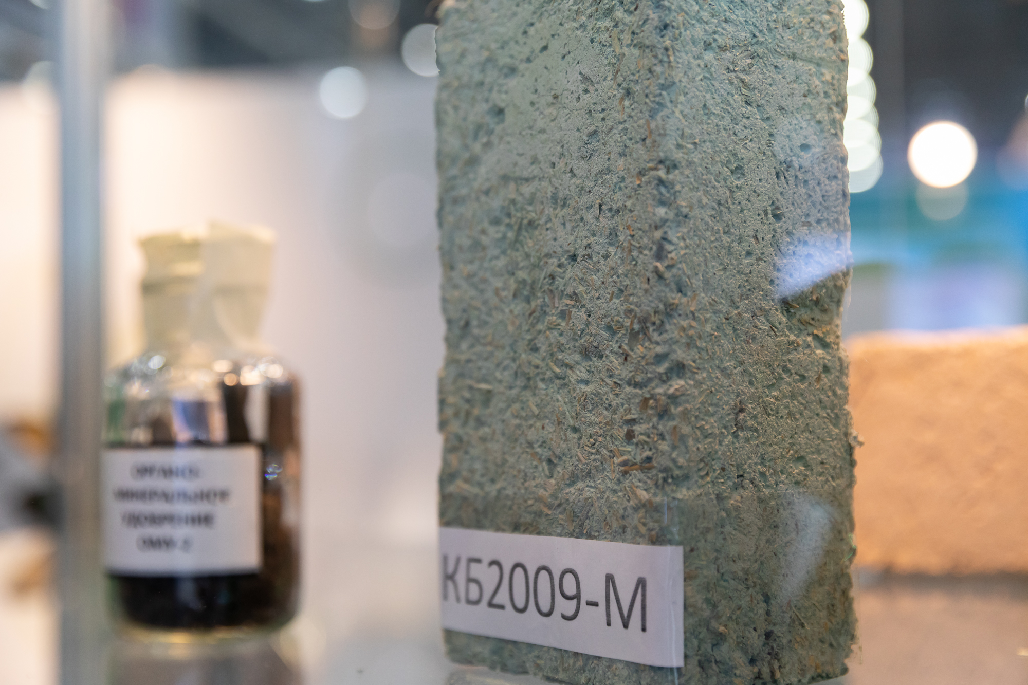 Еще одним ноу-хау на тимирязевском стенде стали образцы «Агролита» – строительные блоки на основе целлюлозосодержащих отходов растениеводства. Они предназначены для изготовления внутренних и внешних стен. Такие приспособления на 30-40% легче и значительно дешевле, чем бетоно-пескоцементные блоки, и обладают более высокой механической прочностью.