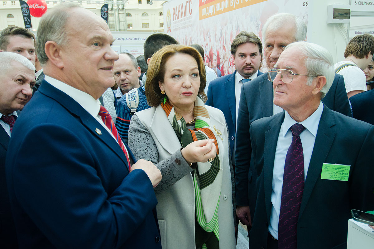 Вячеслав Старченко от имени Министерства образования и науки России и Правительства Москвы поприветствовал собравшихся и выразил благодарность организациям, которые являются постоянными участниками выставки. Геннадий Зюганов обратился с напутствием к молодым людям, которым еще только предстоит выбрать свою будущую профессию. Галина Золина отметила значение и профориентационную направленность выставки, рассказала о престижности аграрного образования, об обучении в академии инженерным и гуманитарным профессиям и от имени коллектива университета пожелала школьникам определиться с направлениями подготовки и вузом.