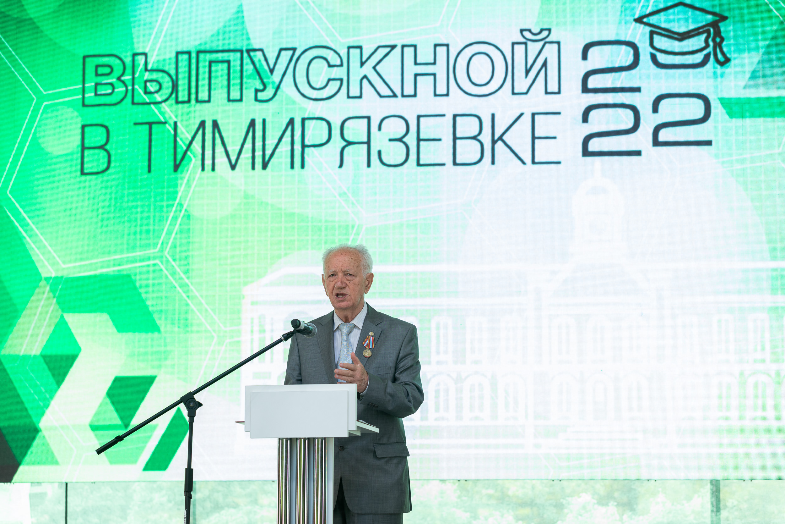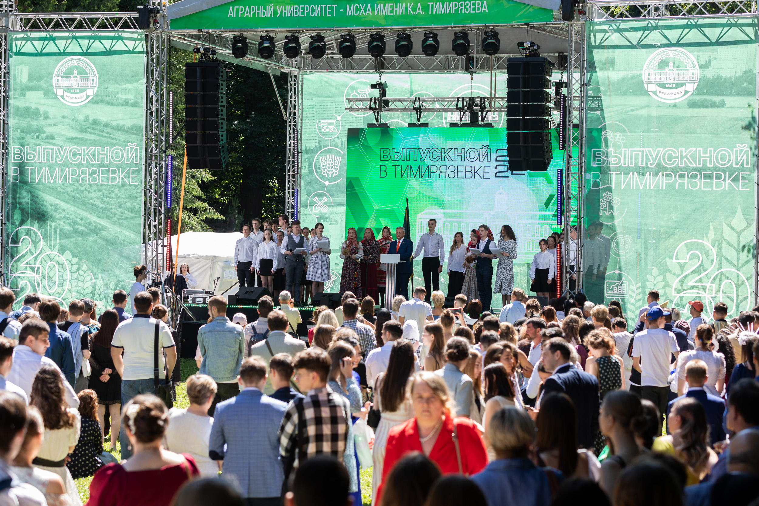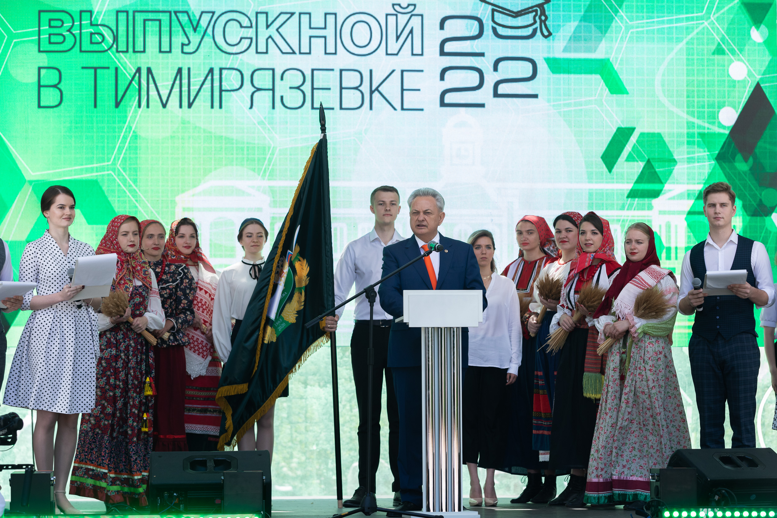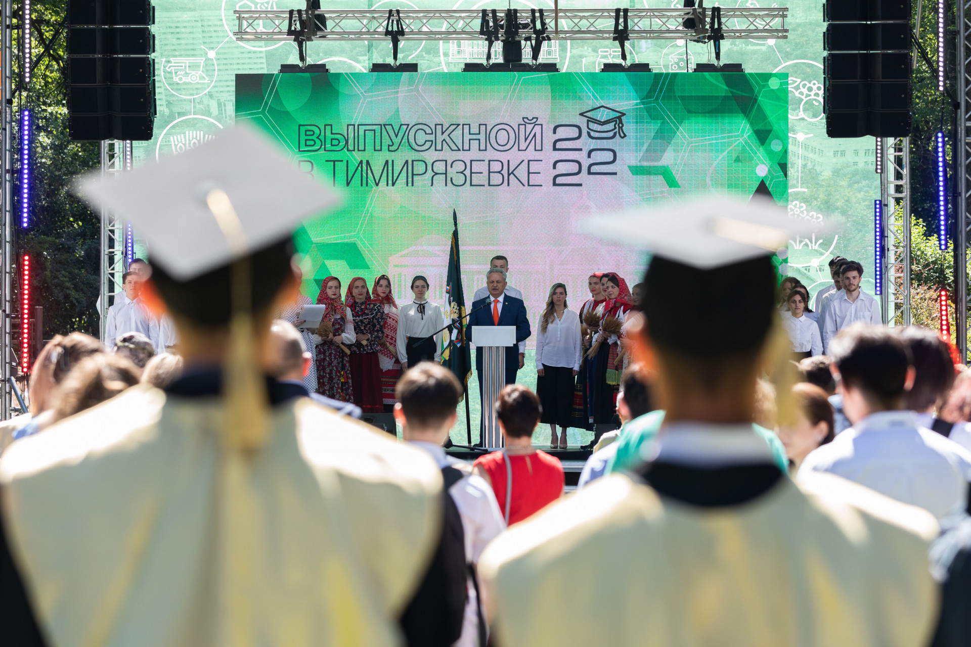 - Сегодня совершенно удивительный Выпускной! По красивой традиции мы чествуем вас в Историческом парке Тимирязевской академии! Здесь, на территории бывшей усадьбы Петровско-Разумовское, проводил свое детство будущий император Петр I. Здесь же в гостях у графа Разумовского бывал весь цвет нашего государства. Отсюда уходили на фронт Великой Отечественной войны сотни преподавателей, сотрудников, студентов Тимирязевской академии. Сюда же они возвращались с Победой.