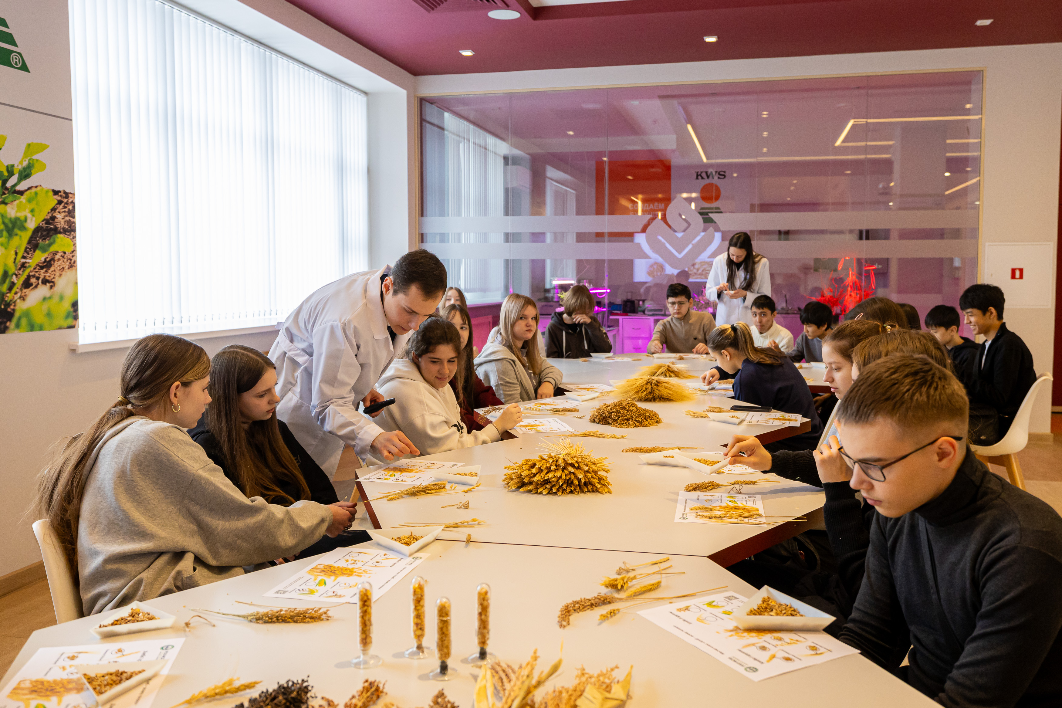 В ходе мастер-класса ученые познакомили ребят с основными зерновыми культурами отечественного и мирового растениеводства. Занятие было построено на практическом подходе: школьники получили возможность наглядно изучить различные виды зерновых, учились отличать их по соцветиям и семенам. Они узнали о многообразии направлений использования этих культур – от производства хлеба до кормов, а также познакомились с интересными фактами их биологии и строения.