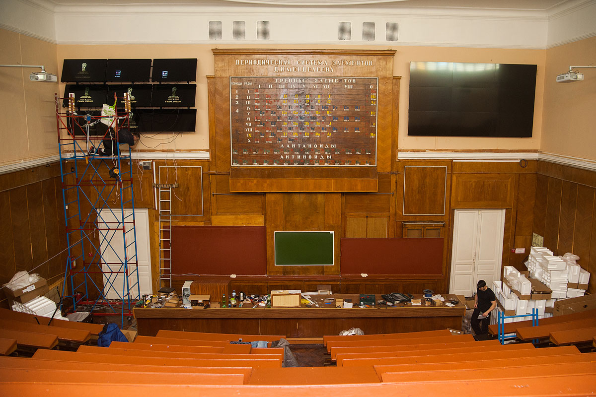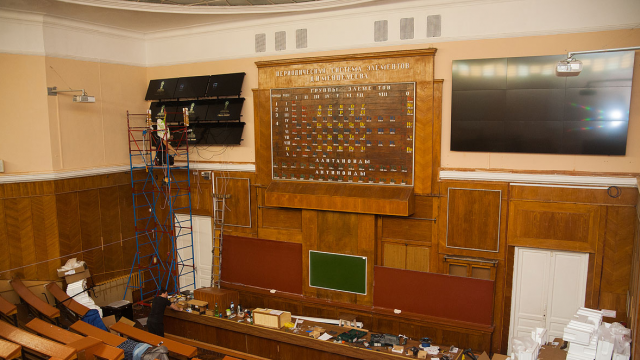 В большом актовом зале ректората будет установлено отвечающее последним требованиям оборудование для видеоконференцсвязи и система управления. На сегодняшний день аппаратурой для "видеомостов" располагает только малый зал ректората, вместительность и технические возможности которого очень ограничены. В скором времени мультимедийная "начинка" появится в ряде крупных аудиторий университета.