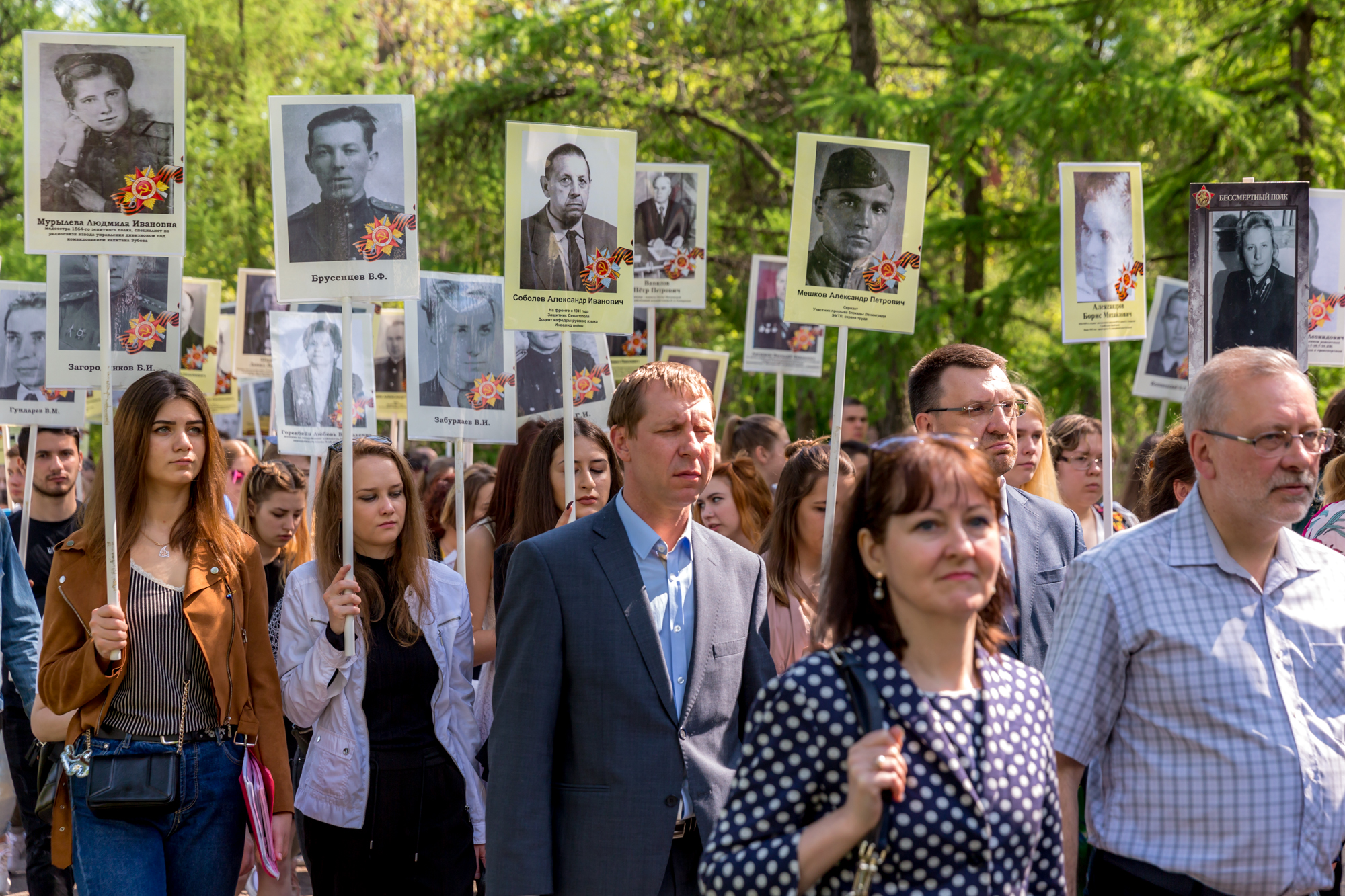08 Май / 2019В Тимирязевке стало доброй традицией проводить в этот праздничный день акцию «Бессмертный полк», которая призвана способствовать сохранению памяти о поколении Великой Отечественной войны. 7 мая колонна численностью около 500 человек, в числе которых были ветераны, студенты, аспиранты, преподаватели и сотрудники нашего вуза, двинулась по Лиственничной аллее в сторону Исторического парка. Возглавили колонну руководители Университета, академики и профессора, офицеры военной кафедры. Все участников акции несли фотографии своих родственников — ветеранов армии и флота, партизан, тружеников тыла, узников концлагерей, блокадников, детей войны. Ровно в полдень у Мемориала павшим в Великой Отечественной войне начался митинг.