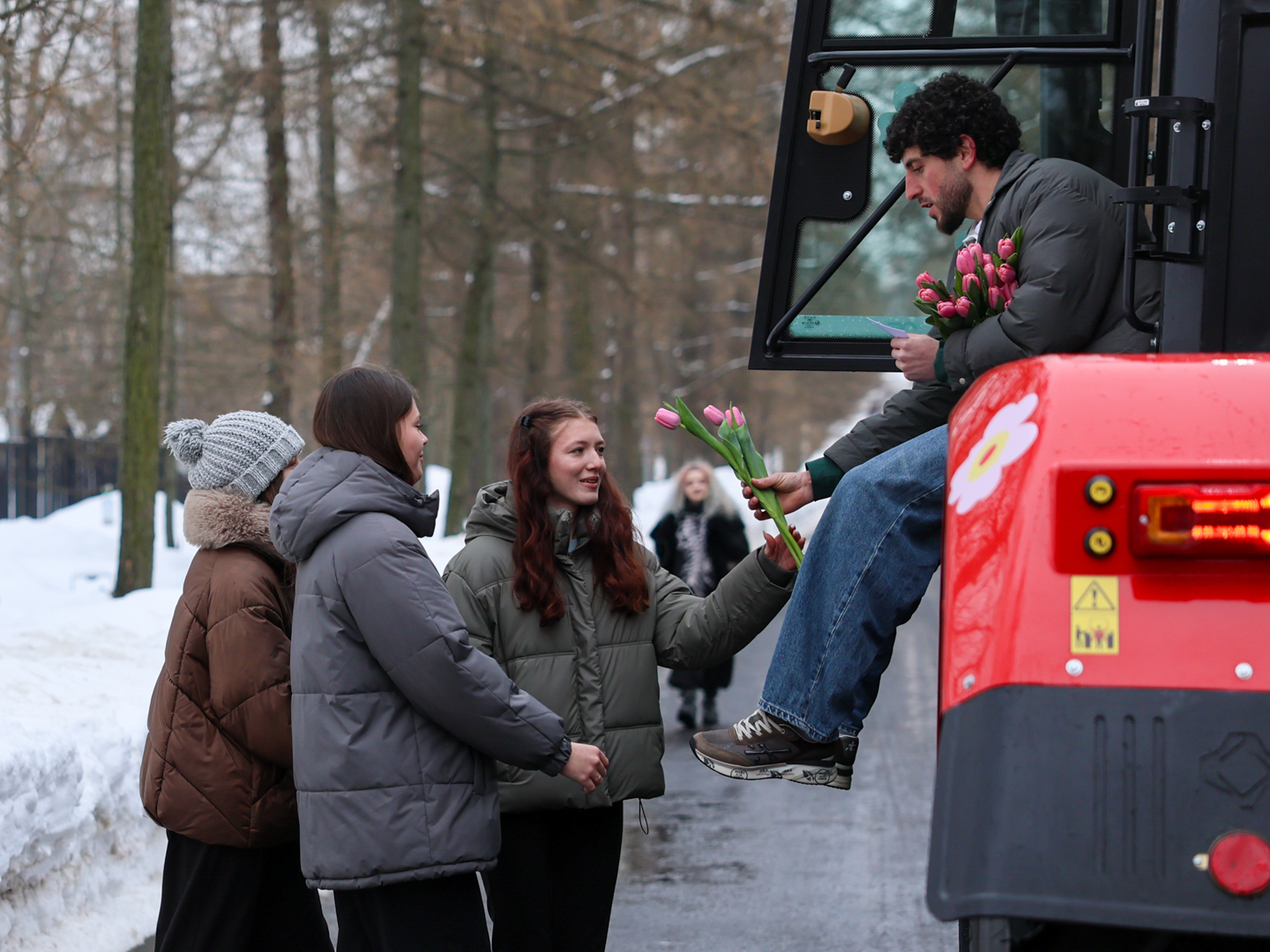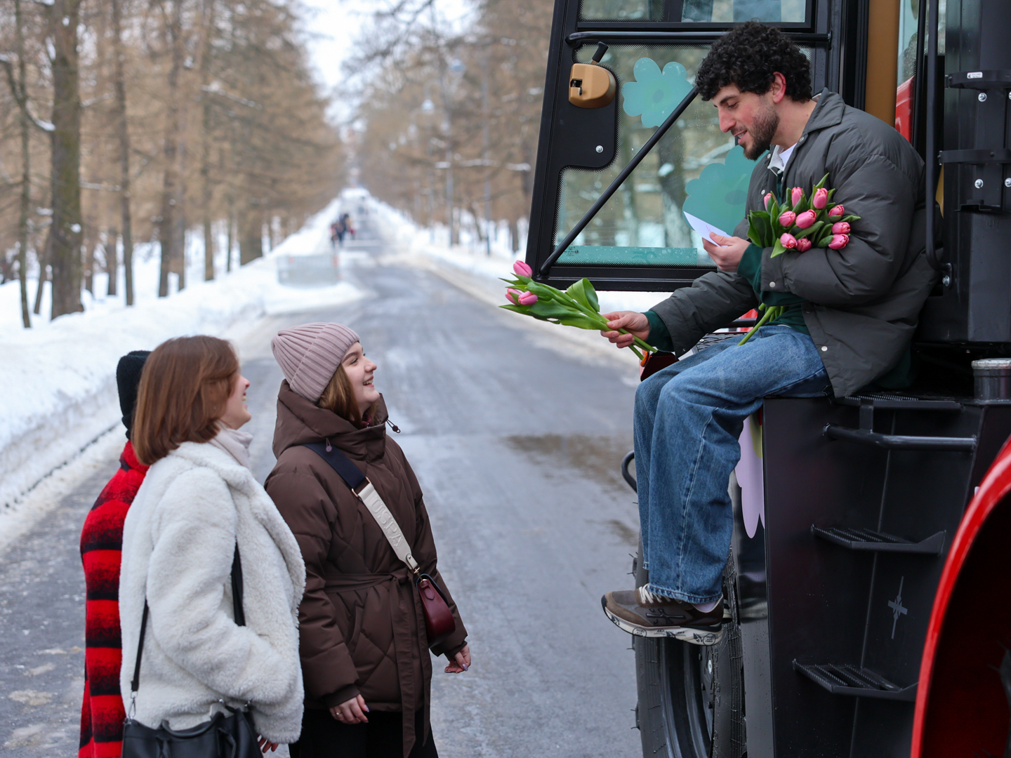 С приходом первого дня весны Лиственничная аллея РГАУ-МСХА имени К.А. Тимирязева превратилась в настоящий праздничный уголок. Студенток академии и всех жителей Тимирязевского района ожидало необычное и очень тёплое поздравление от популярного блогера и фермера из Астраханской области – Тимура Далгатова.