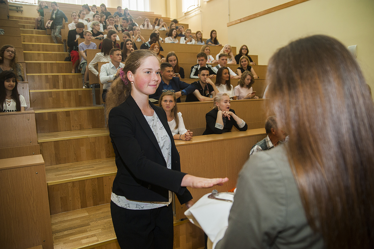 Гуманитарно-педагогический факультет встретил первокурсников на свежем воздухе, благо погода к этому располагала. Теплые слова студентам сказали декан факультета Валентина Шабунина и ее заместители, заведующие кафедрами и активисты. Под руководством выпускницы Ириной Вялых юноши и девушки дали клятву первокурсников. А талантливые учащиеся своими песнями и танцами показали новичкам, почему на университетских творческих фестивалях гуманитарии – всегда в числе фаворитов.