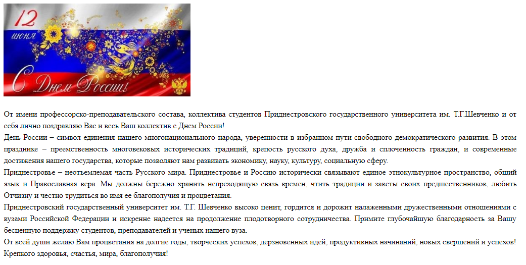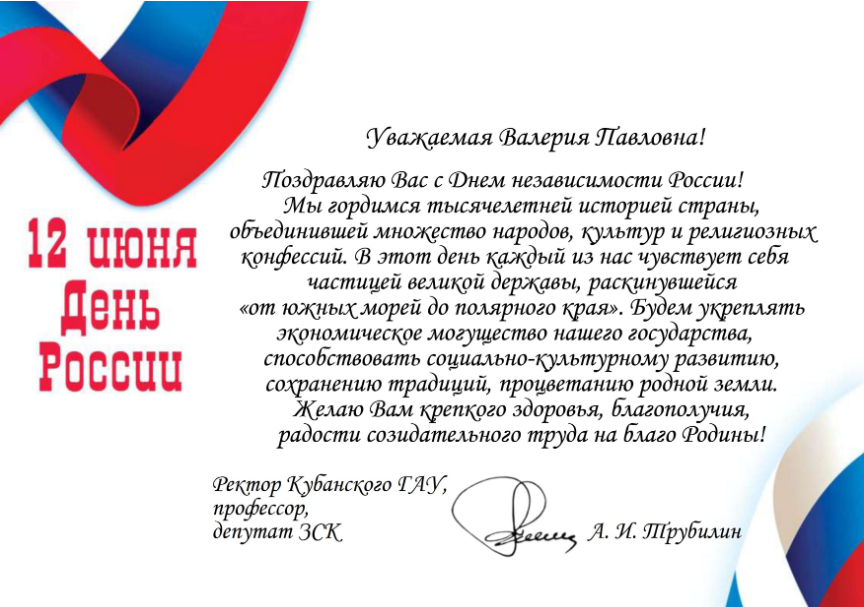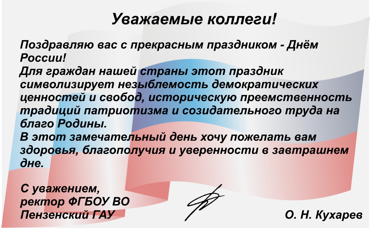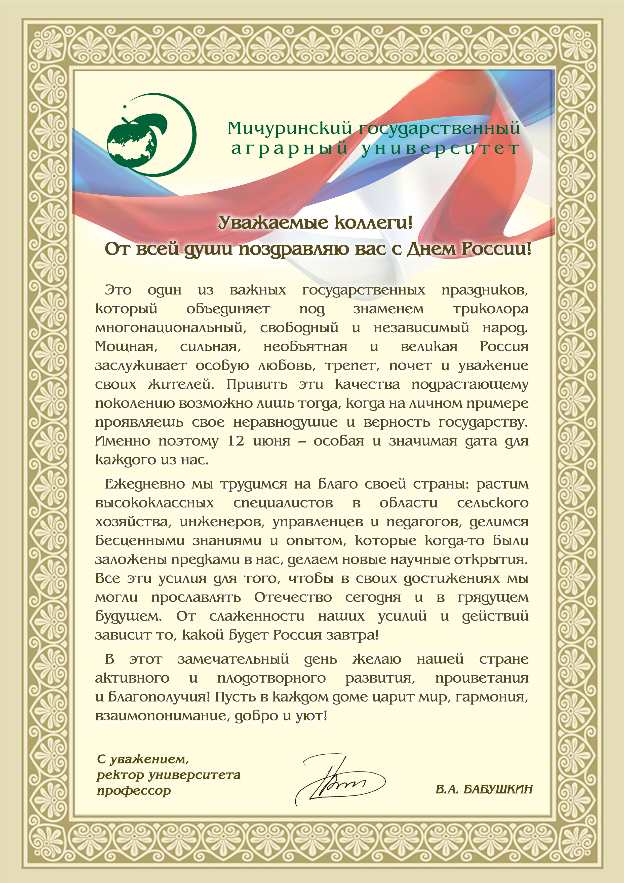 13 Июнь / 2019В адрес университета и лично и.о. ректора Валерии Чайки поступили поздравительные адреса из аграрных вузов: Мичуринского ГАУ, Южно-Уральского ГАУ, Белгородского ГАУ, Пензенского ГАУ Орловского ГАУ, Кубанского ГАУ, Санкт-Петербургского ГАУ, Волгоградского ГАУ, Донского ГАУ, Бурятской ГСХА имени В.Р. Филиппова, Российского государственного заочного университета, Рязанского государственного агротехнического университета имени П.А. Костычева, Санкт-Петербургской государственной академии ветеринарной медицины, Азово-Черноморского инженерного института Донского ГАУ.