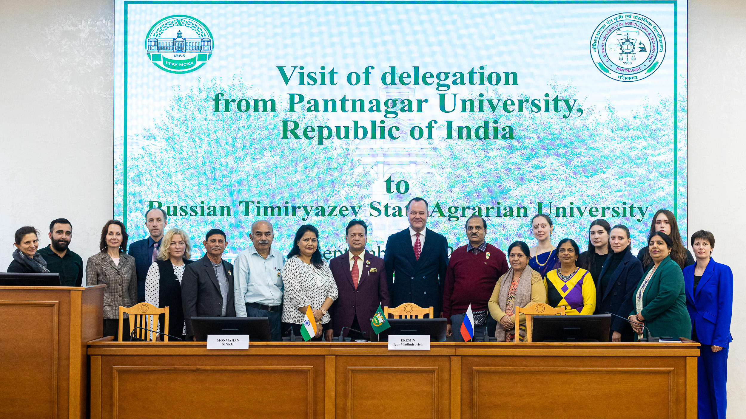 Делегация Университета Пантнагар во главе с ректором, доктором Монмаханом Сингх Чауханом посетила Тимирязевскую академию. Развитие сотрудничества и реализацию совместных научных и образовательных проектов с индийскими партнерами обсудил ректор РГАУ-МСХА имени К.А. Тимирязева, Академик РАН, профессор Владимир Иванович Трухачев.