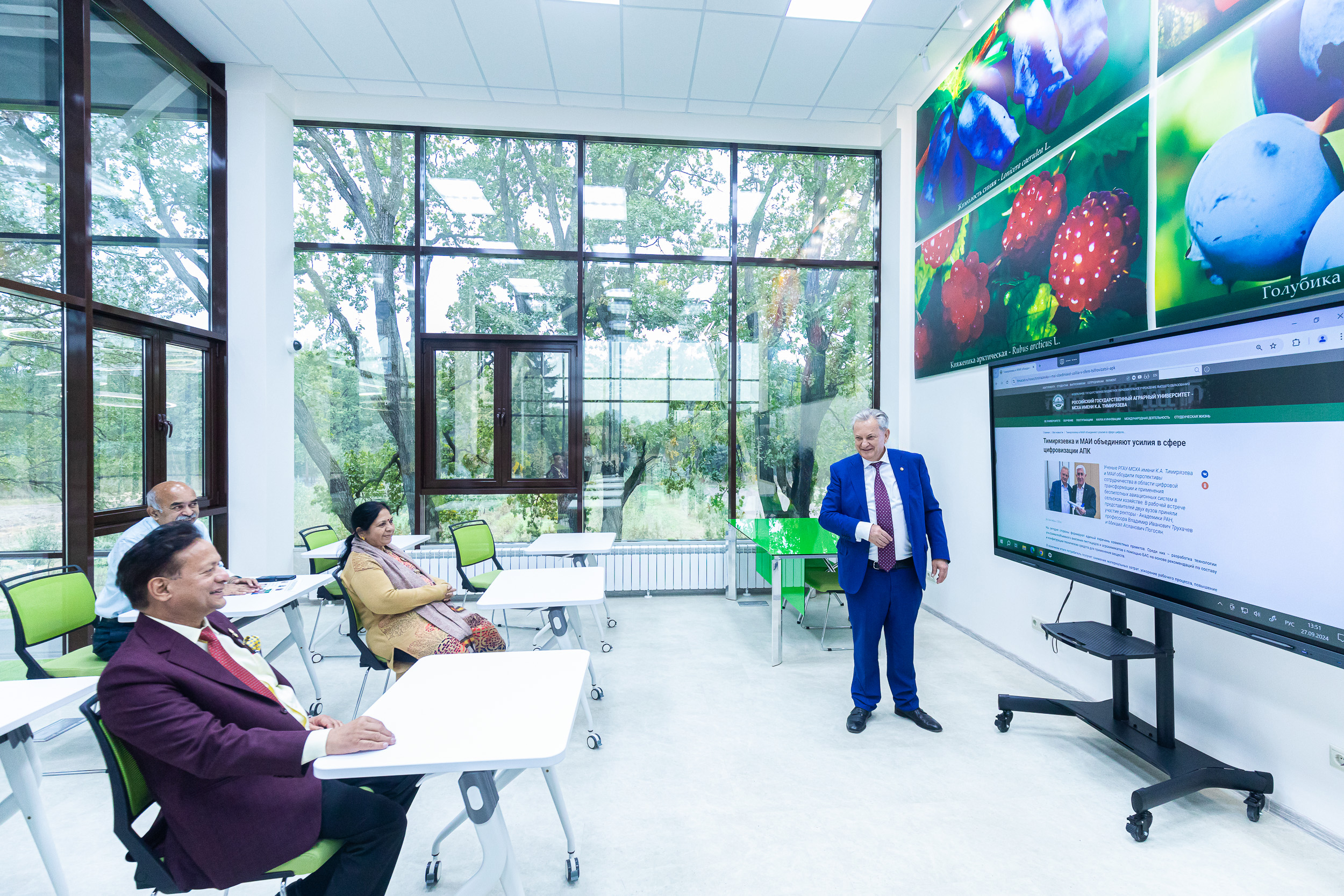 01 Октябрь / 2024В.И. Трухачев поблагодарил коллег из Индии за визит в Тимирязевскую академию и стремление воплотить в жизнь совместные проекты. Перспективными направлениями сотрудничества могут стать растениеводство, животноводство, управление водными ресурсами, агроинженерия и садоводство.