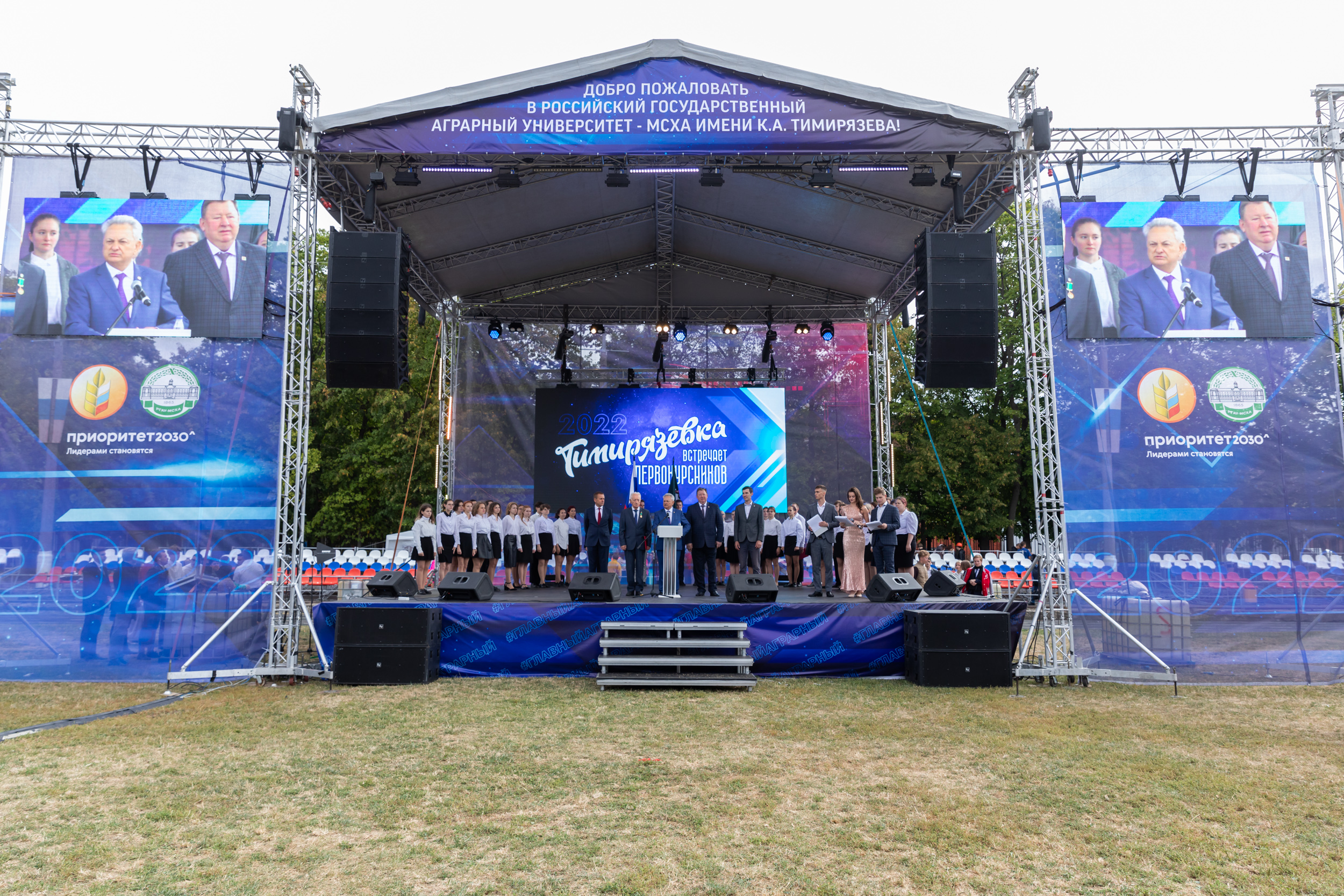 Впервые в своей истории Российский государственный аграрный университет провел День знаний со стадионным размахом. С праздничной сцены первокурсников поздравили ректор, Академик РАН, профессор В.И. Трухачев, Председатель Комитета Государственной Думы по аграрным вопросам, Академик РАН Владимир Иванович Кашин, генеральный директор ОХК «Уралхим» Дмитрий Владимирович Коняев, Председатель Совета ветеранов университета Юрий Исуфович Агирбов и Председатель Российского союза сельской молодежи Дмитрий Александрович Пекуровский.