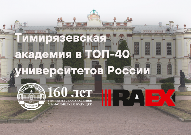 В соответствии с четырнадцатым ежегодным рейтингом лучших вузов России RAEX-100, составленным рейтинговым агентством RAEX, Тимирязевская академия значительно улучшила свои позиции, поднявшись на 6 строчек и заняв 37-ю позицию. Рейтинг, который охватывает университеты из 30 регионов России, основывается на анализе статистических данных, а также результатах опросов более 150 000 респондентов, включая представителей академических кругов, студентов, выпускников и работодателей.