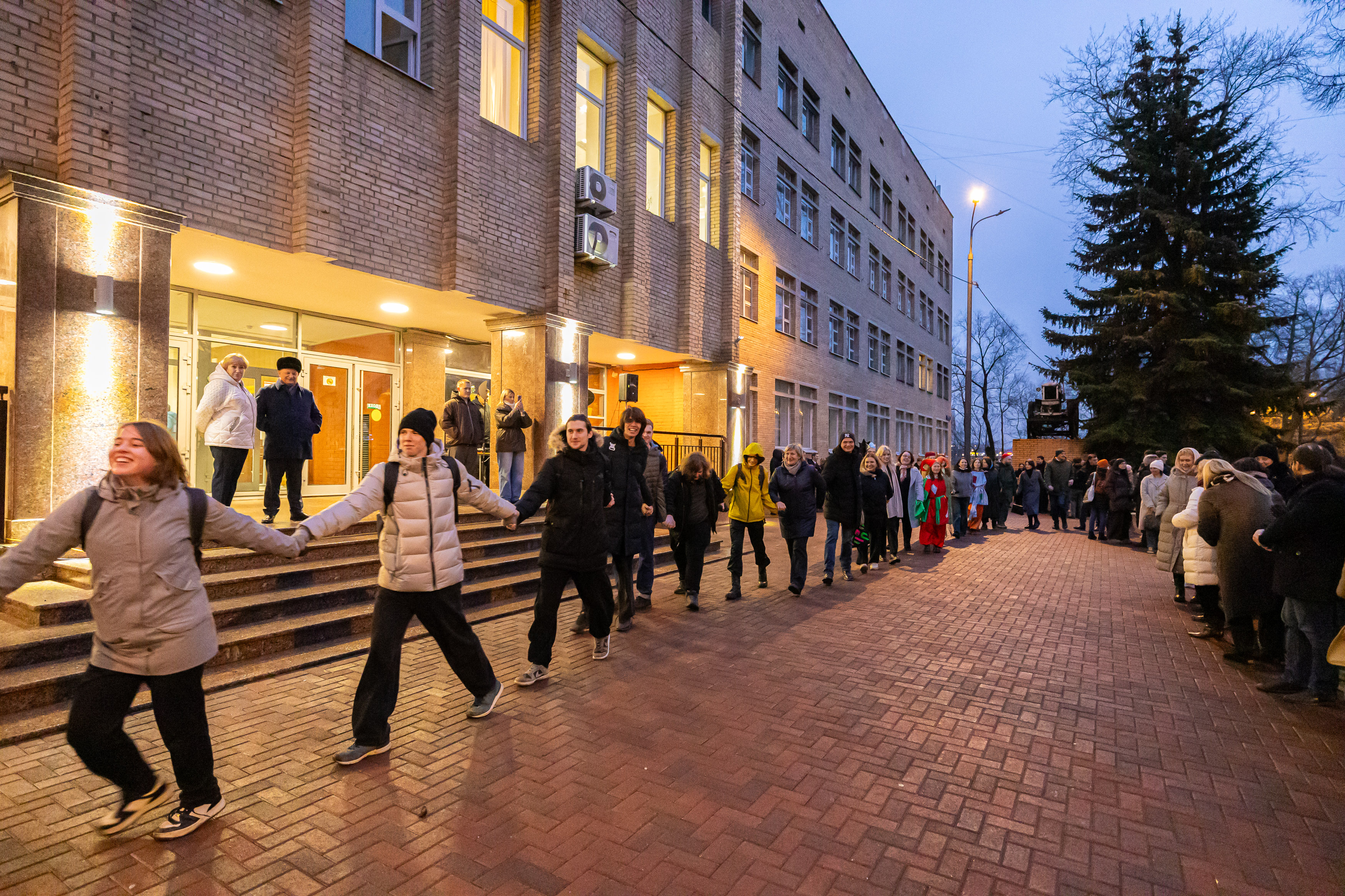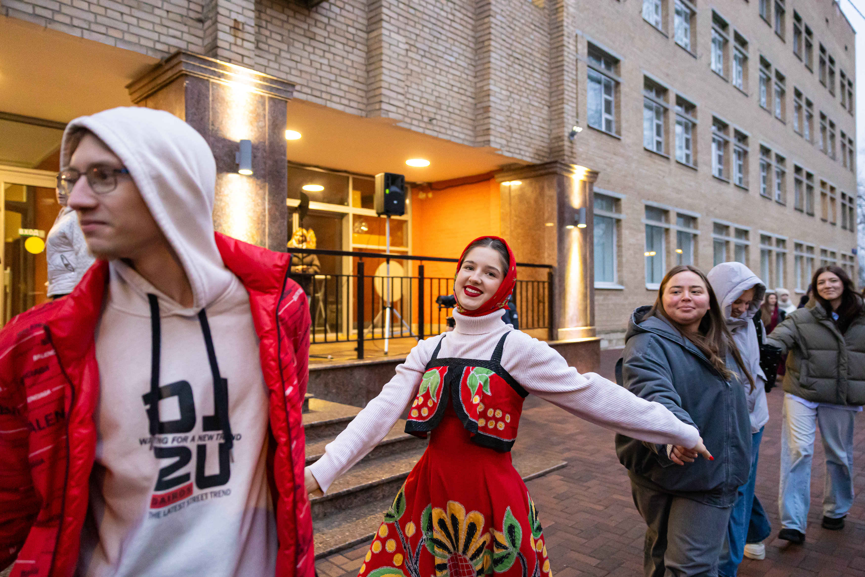 На помощь пришли талантливые студенты: ансамбль народного танца «Каблучок» имени Киры Черданцевой под художественным руководством Дмитрия Крея. Музыкальную программу вечера украсила песня «Хлопушки» в исполнении Оксаны Пырлий.