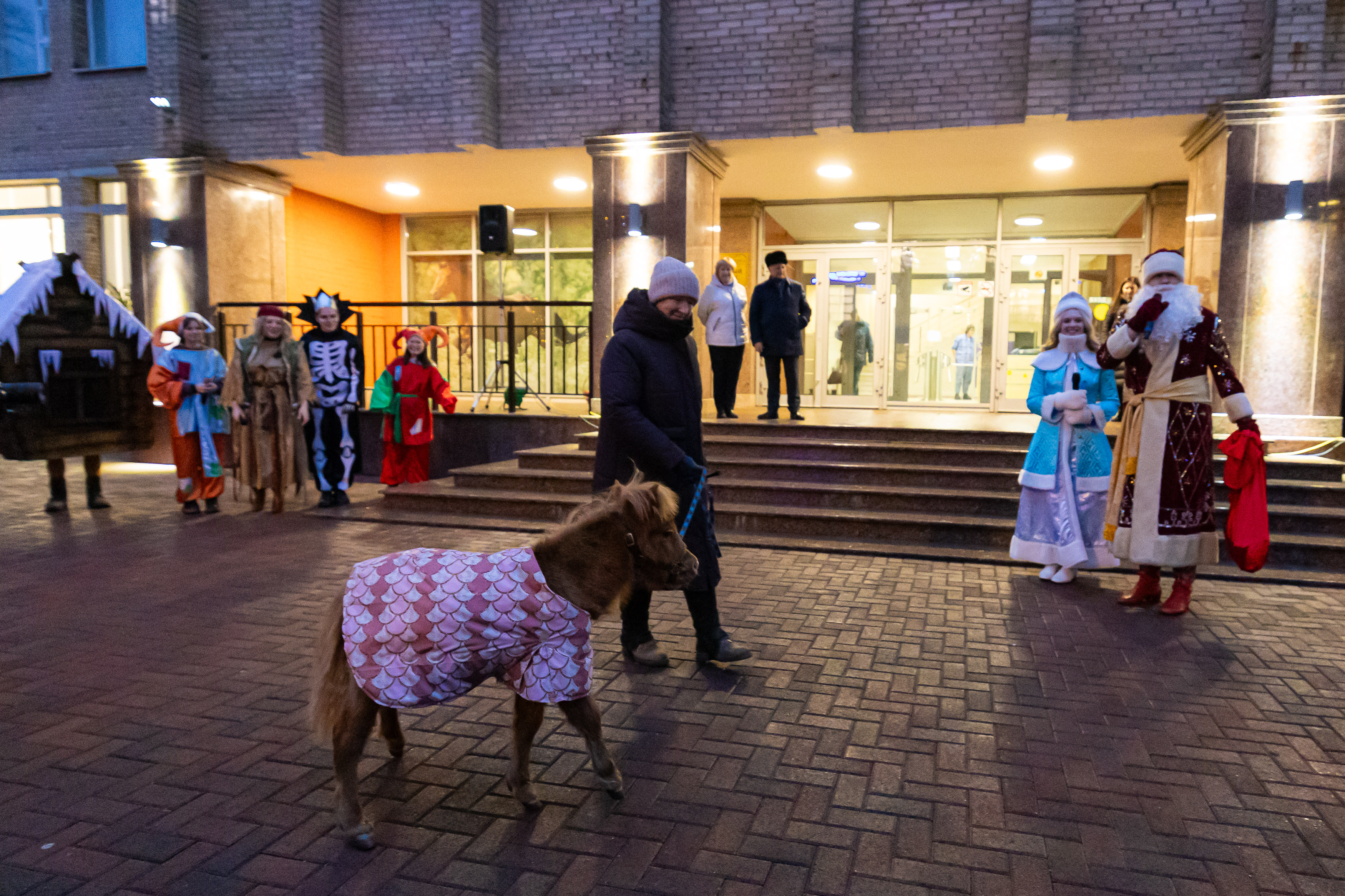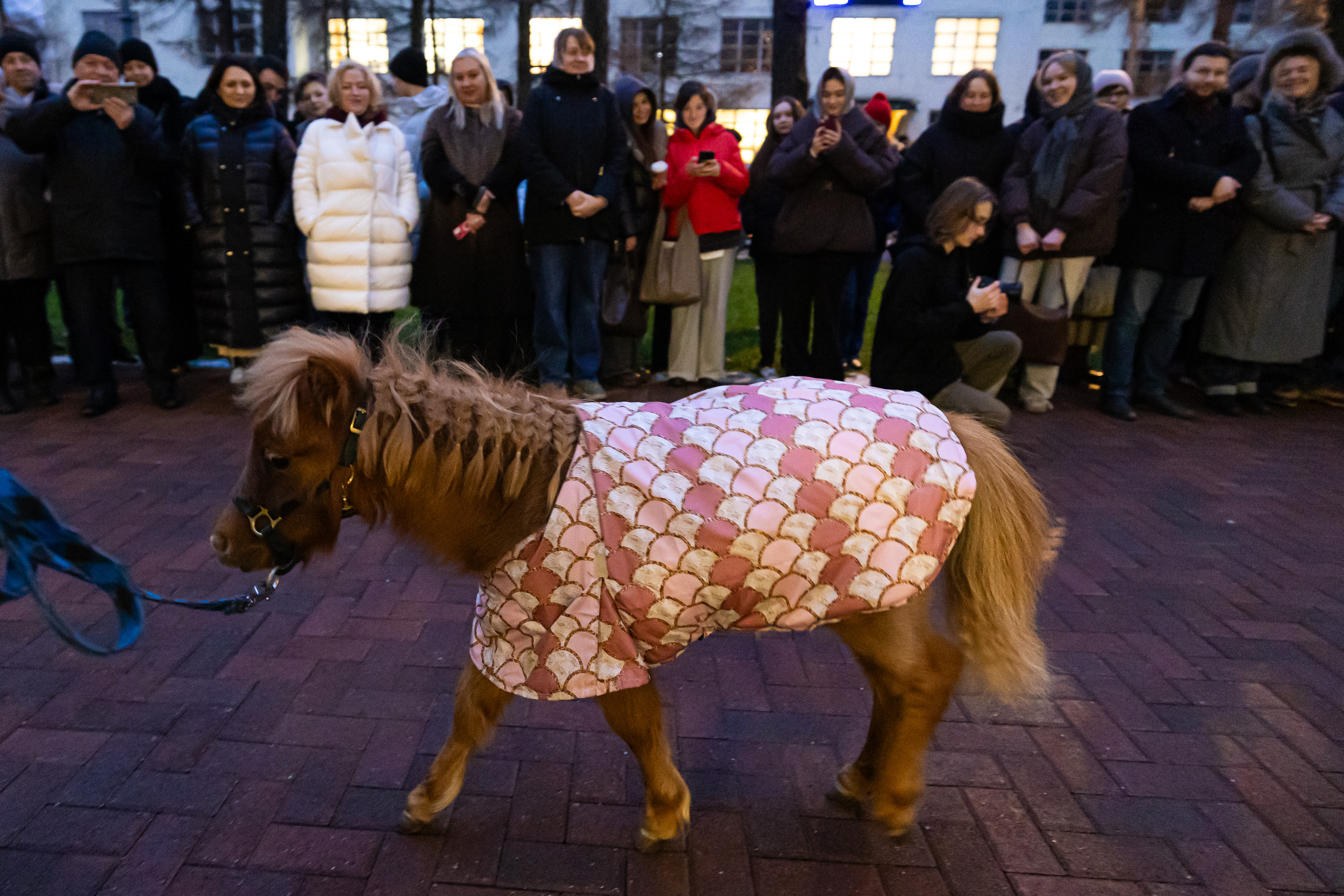 Кульминацией вечера стал торжественный выход Деда Мороза, Снегурочки и, конечно, живого символа, наступающего 2026 года – Огненной Лошади! Ей оказалась миниатюрная американская лошадка по кличке Лисичка.