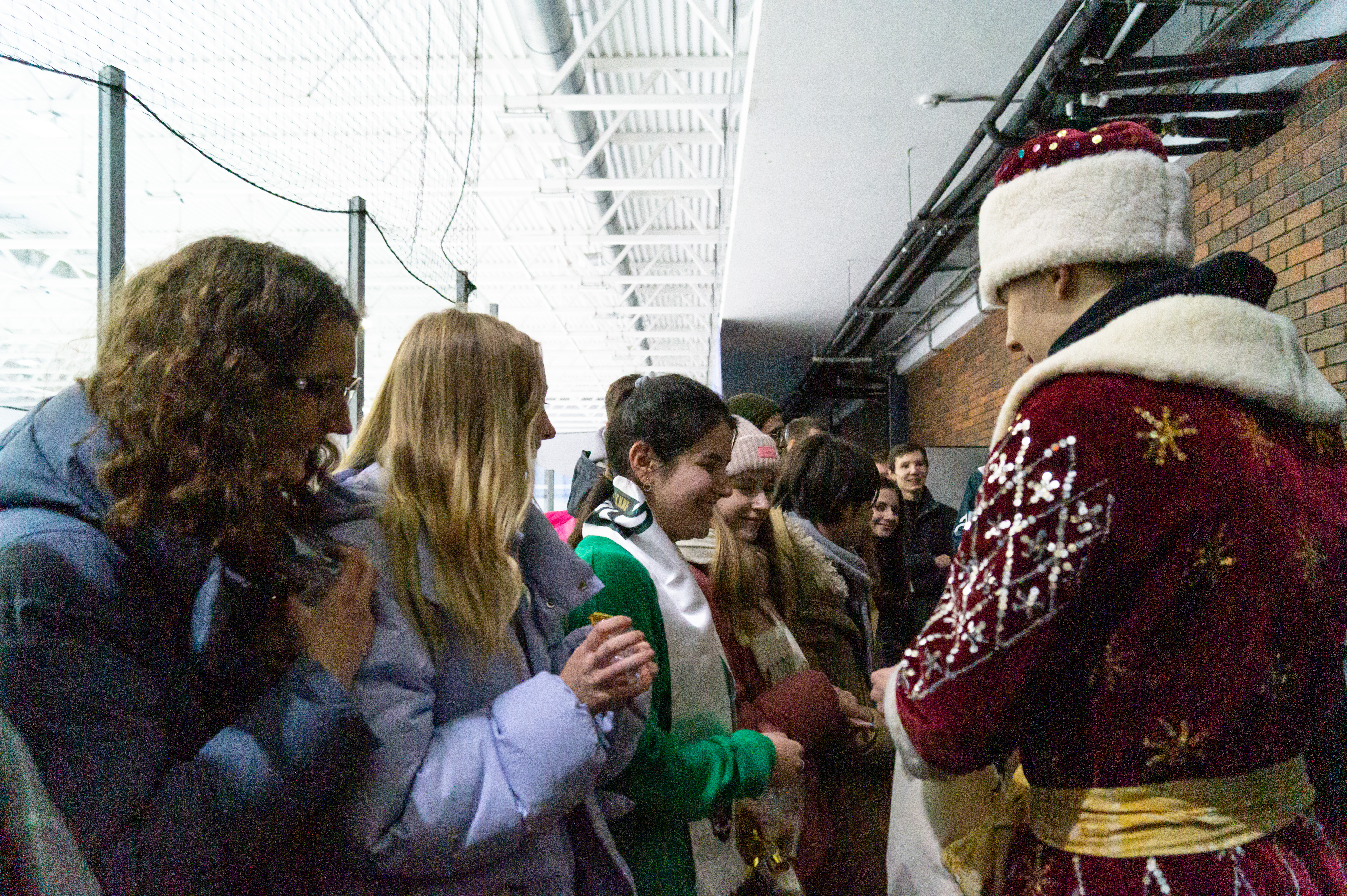 Перед матчем тимирязевцы обещали много подарков. Сказано – сделано: на матче штаб «Зубров» и Управление молодежной политикой и воспитательной деятельности университета приготовили для болельщиков памятные сувениры с логотипом команды, а также вручили специальные призы активным участникам новогодних активностей «Зубров».