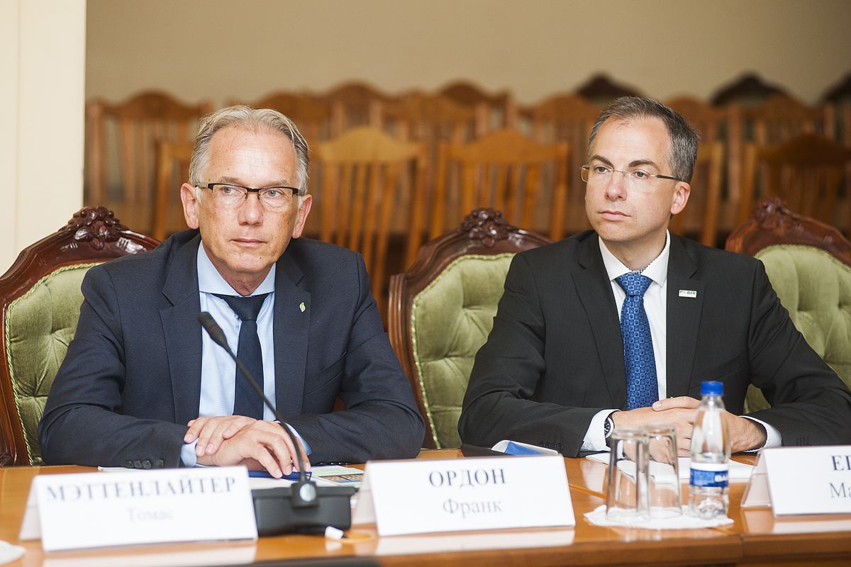 Директор департамента научных исследований и инноваций Федерального министерства продовольствия и сельского хозяйства ФРГ Петер Бартодци представил свою делегацию. Профессора Томас Мэттенлайтер и Франк Ордон из Института охраны здоровья животных имени Фридриха Леффлера и Института культурных растений имени Юлиуса Кюна обрисовали перспективы развития научной деятельности своих организаций.