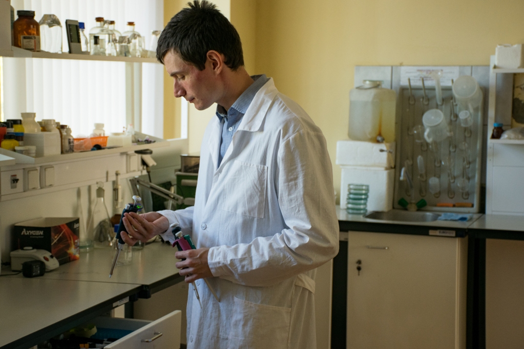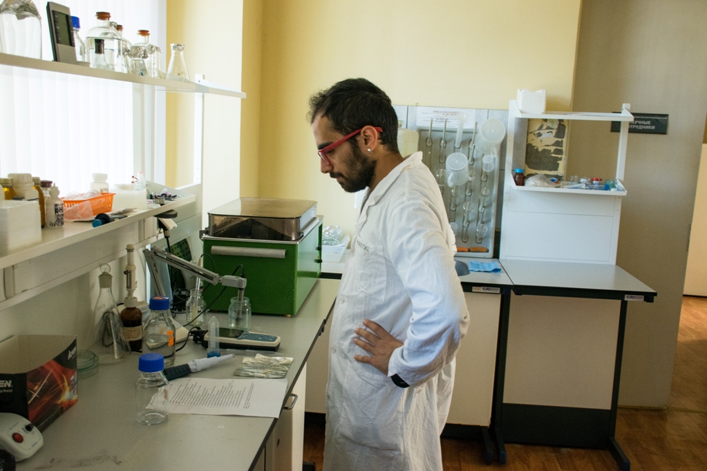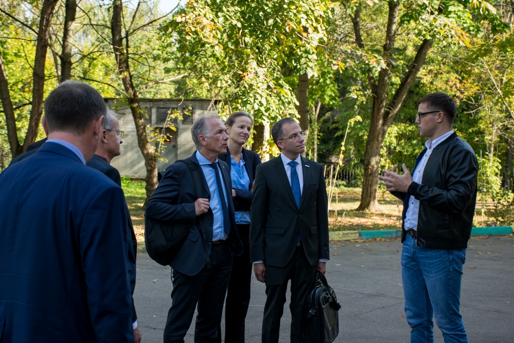 После фотографирования делегации на фоне величественного ректората старший преподаватель Илья Киров проводил гостей на экскурсию в Центр молекулярной биотехнологии.