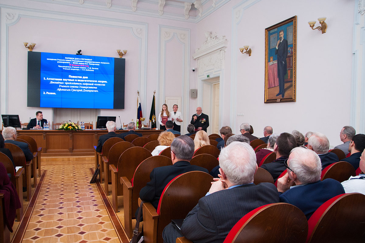 На заседании Ученого совета университета состоялась церемония награждения премий имени Д.Н. Прянишникова и В.Р. Вильямса.