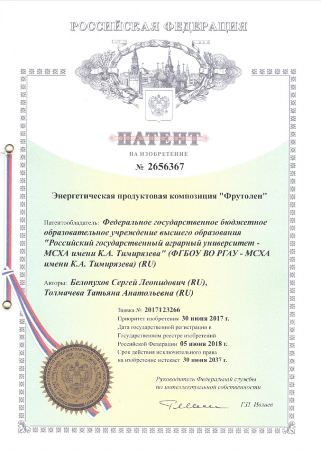 Ученые академии получили патент на энергетическую продуктовую композицию «Фрутолен», употребление которой препятствует возникновению раковых опухолей