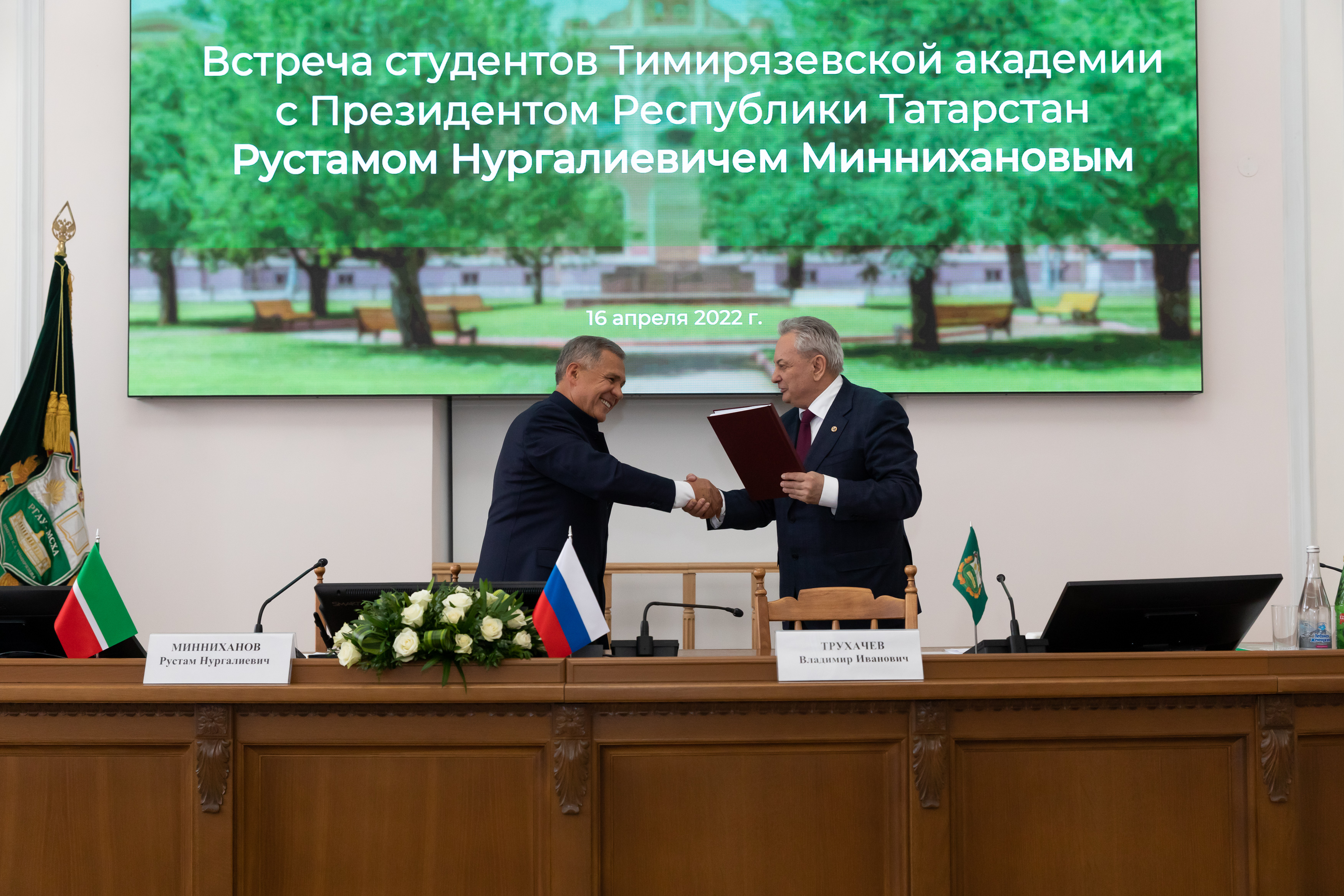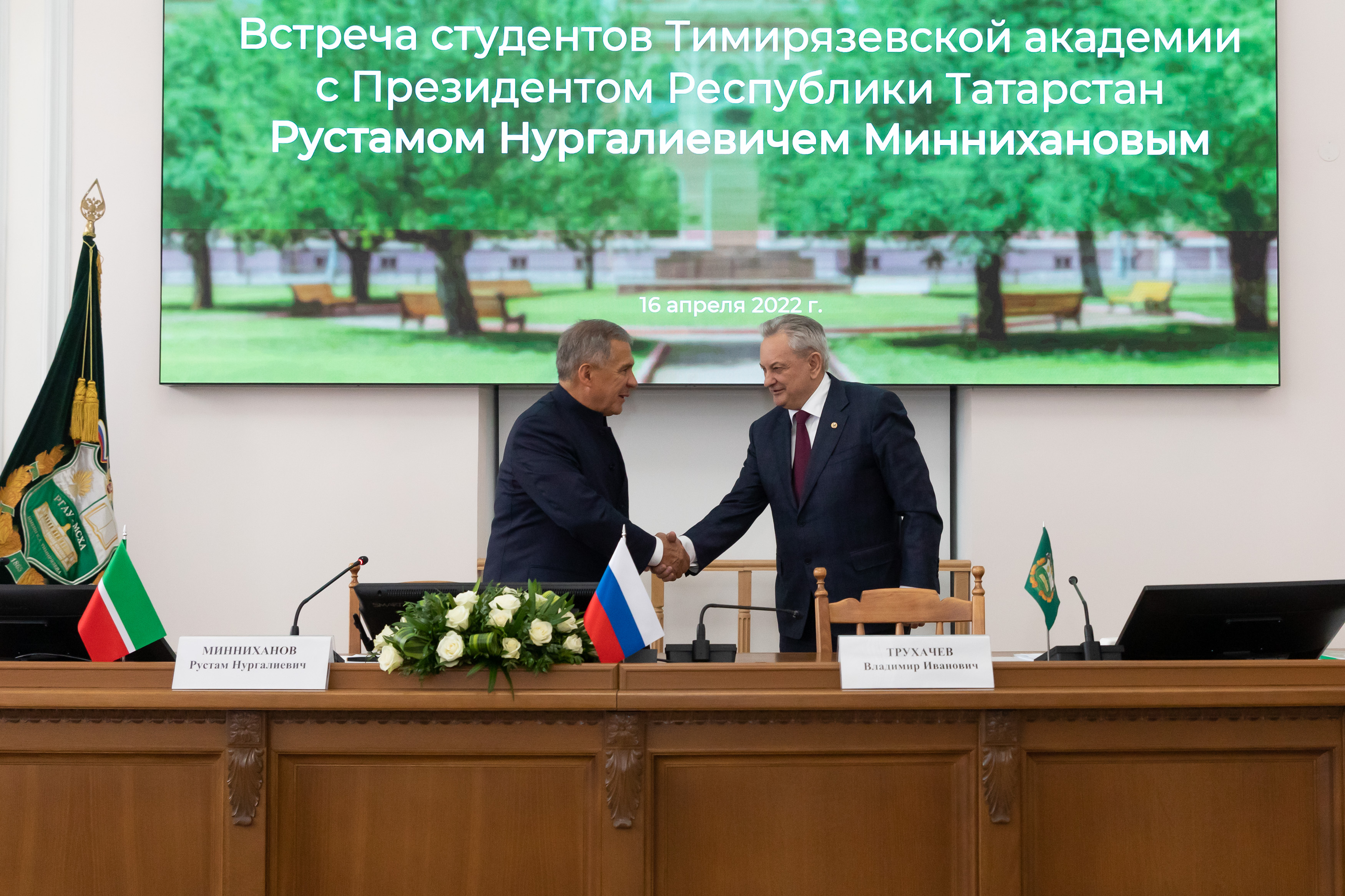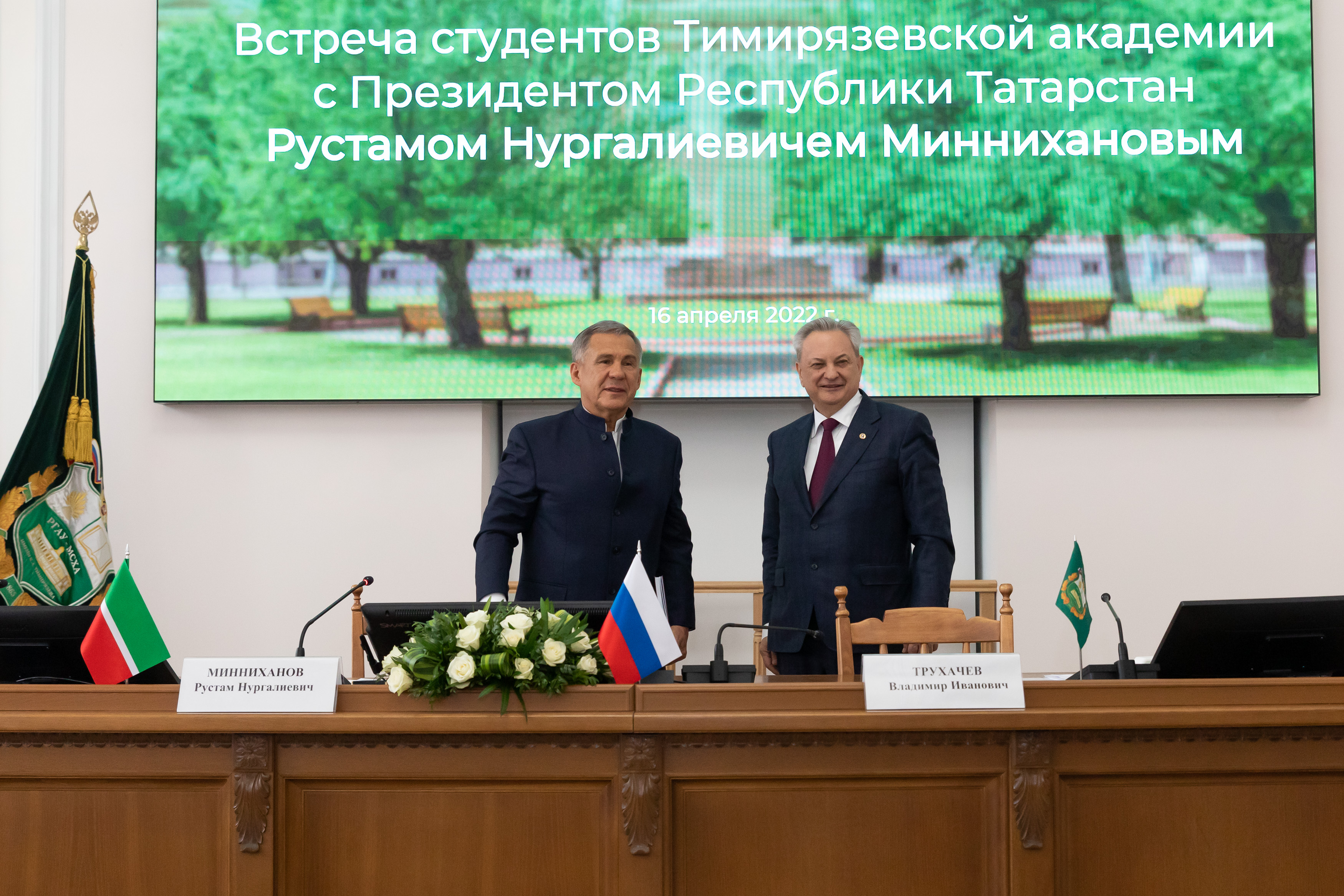 Ректор В.И. Трухачев поблагодарил Р.Н. Минниханова за посещение Тимирязевской академии и выразил надежду, что визит придаст импульс развитию сотрудничества между вузом и Республикой Татарстан.