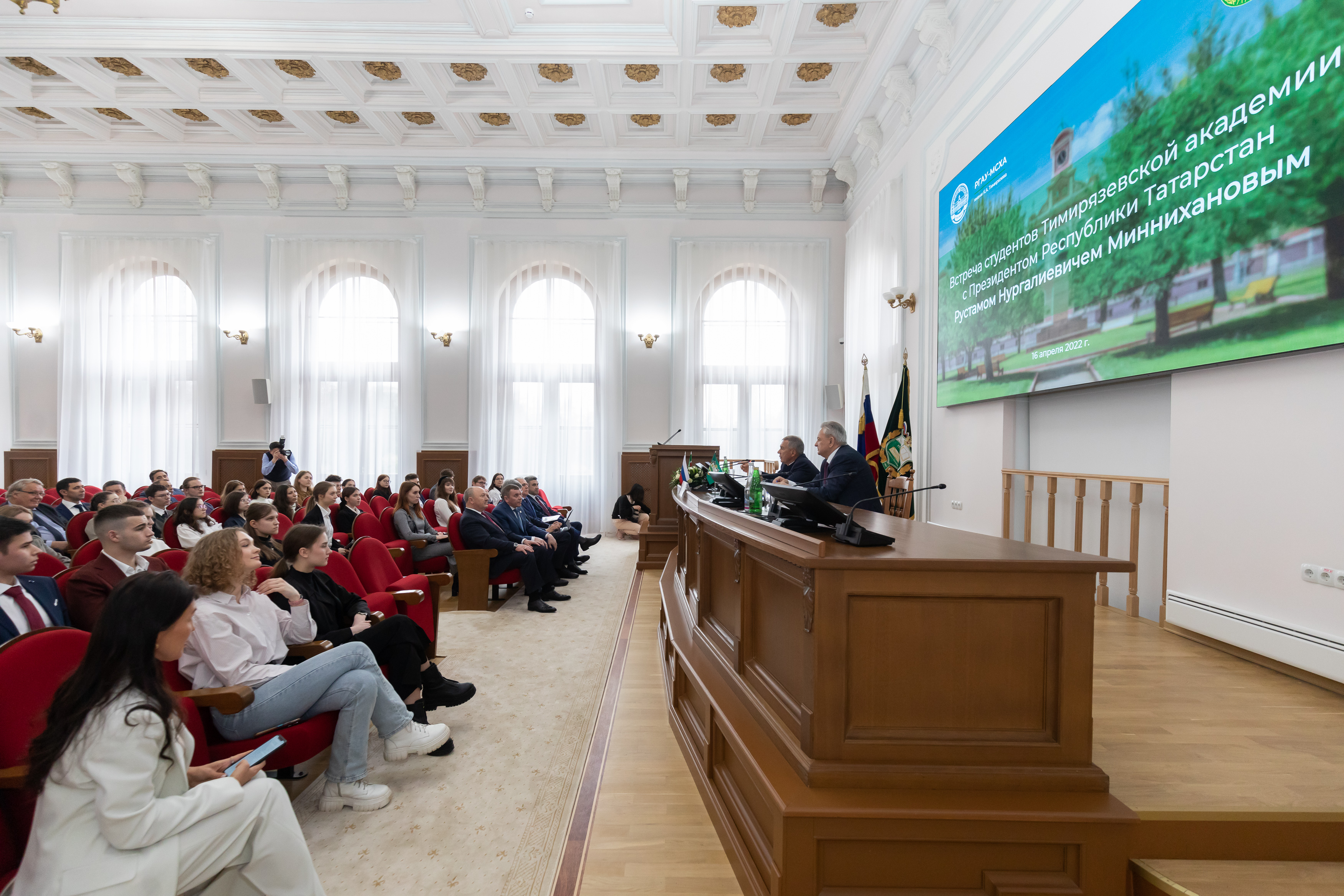 На сегодняшний день в Тимирязевке обучаются 95 этнических татар и представителей Татарстана. На встрече с Президентом республики студенты интересовались наличием современных сельскохозяйственных предприятий, мерами поддержки молодых специалистов на селе в Татарстане.