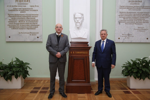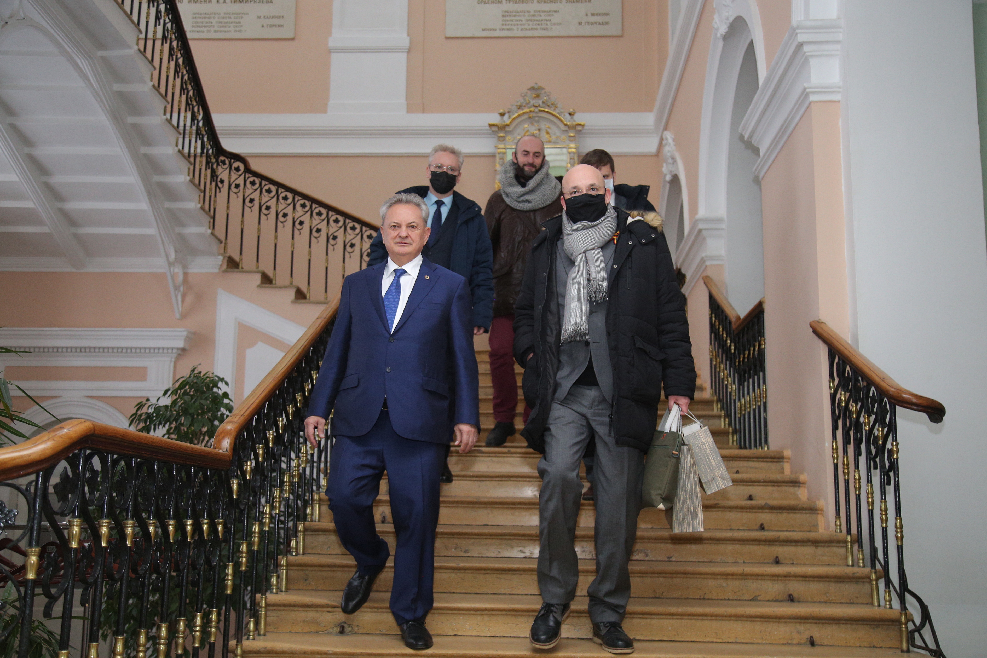 09 Декабрь / 2021В рамках деловой встречи ректор В.И. Трухачев познакомил гостя с инфраструктурой вуза и качественными изменениями последнего времени. Руководитель университета подчеркнул, что Тимирязевская академия нацелена на развитие международных взаимоотношений в научно-образовательной сфере.