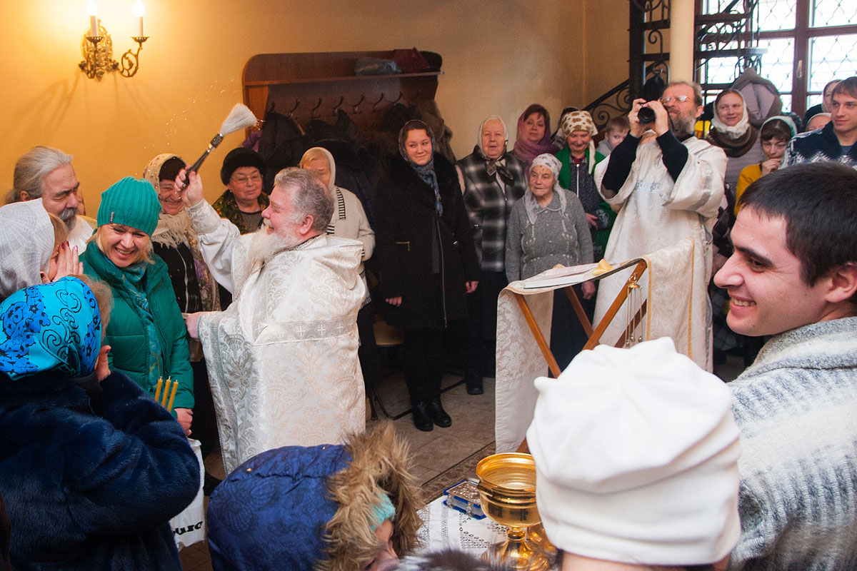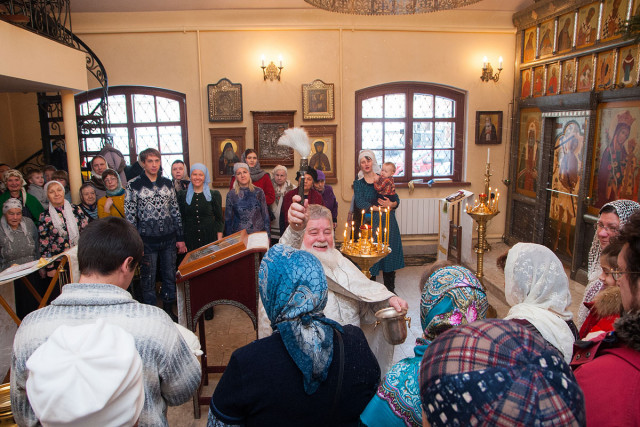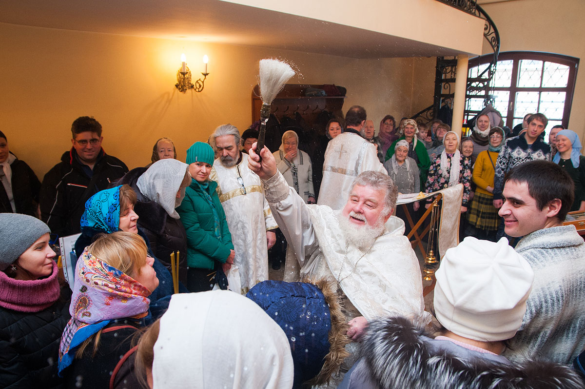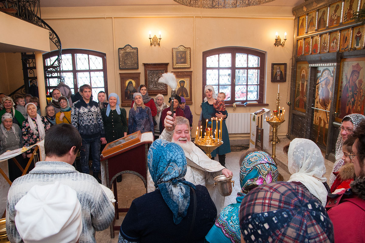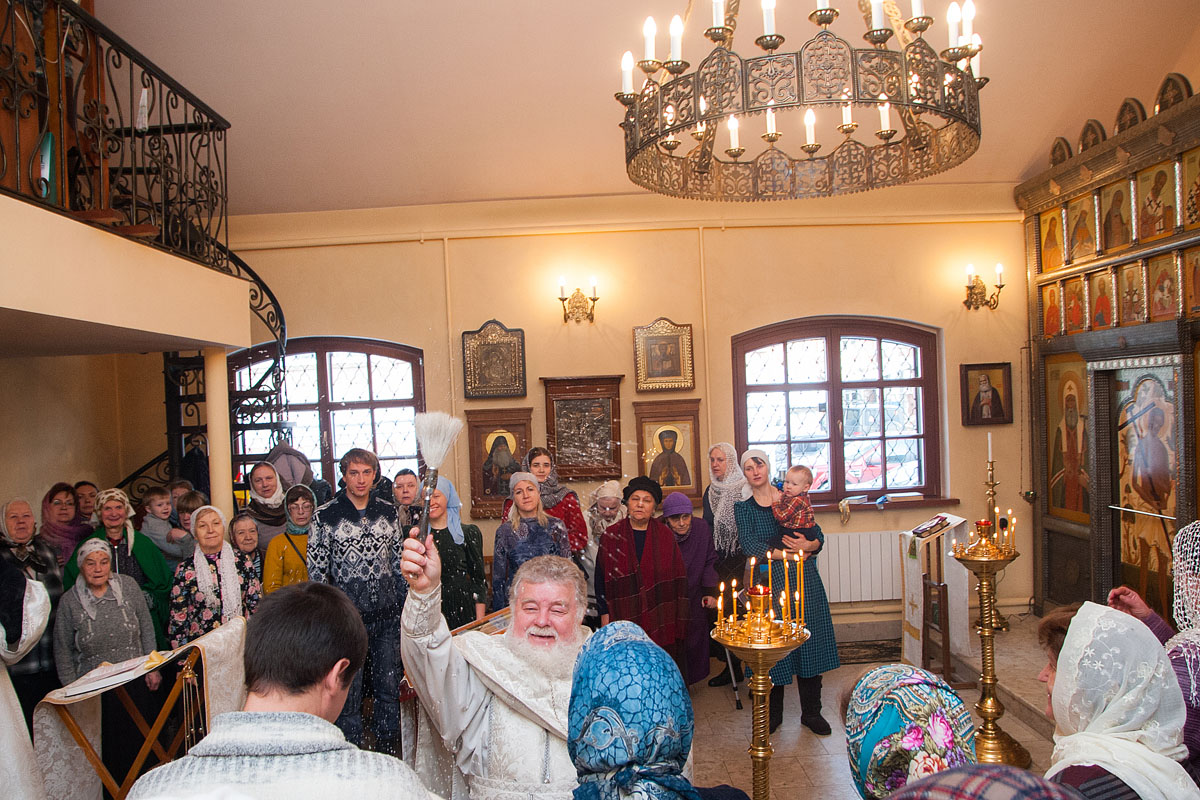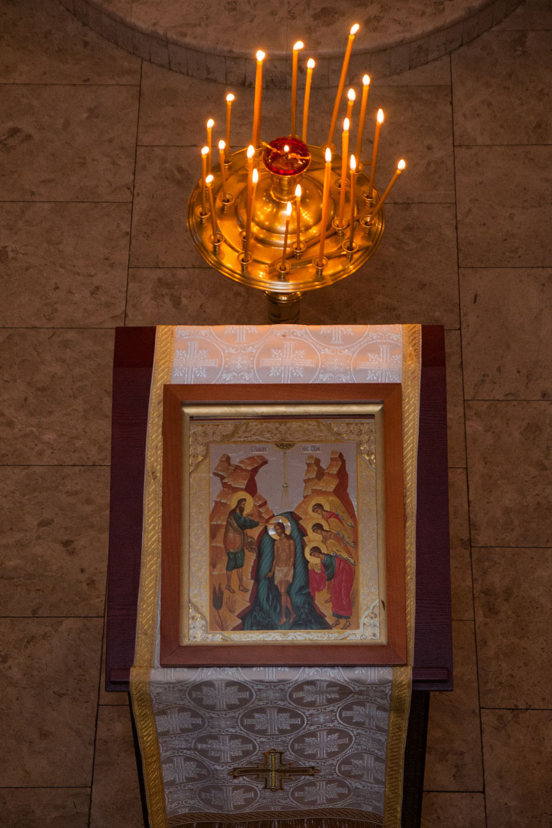 А в домовом храме священномученика Иоанна (Артоболевского) священники, облаченные в белые ризы, во время богоявленского богослужения освещали воду. Накануне, 18 января, в Крещенский сочельник — Чином Великого освящения воды, который еще называют Великой агиасмой. И второй раз — в день Богоявления, 19 января, на Божественной литургии.