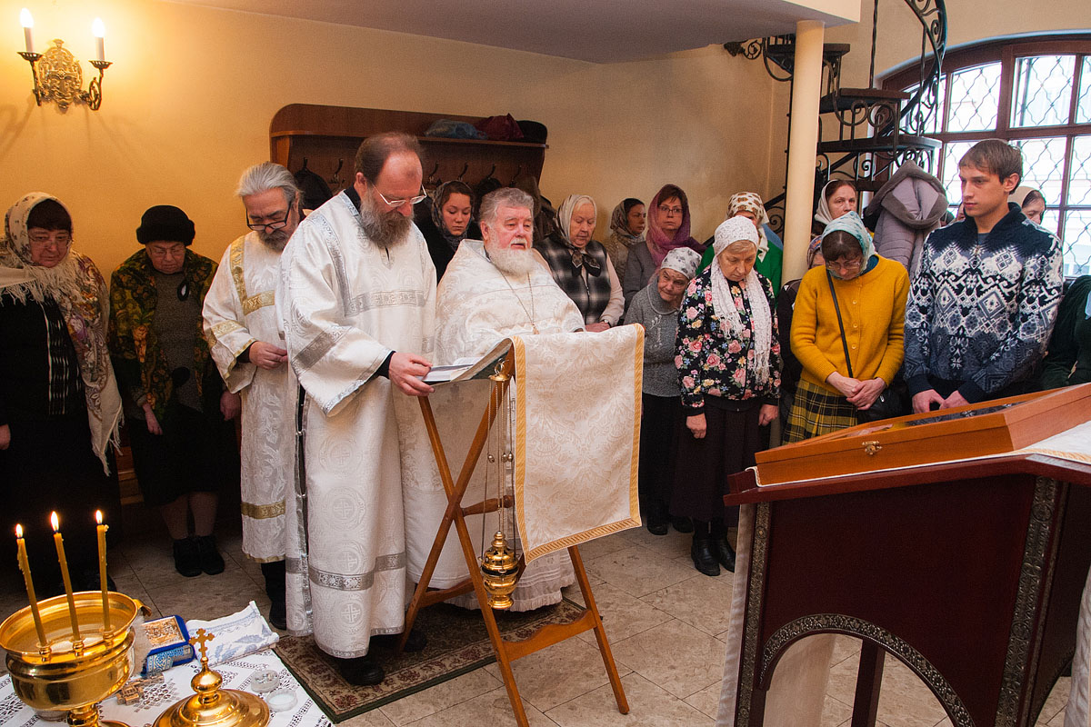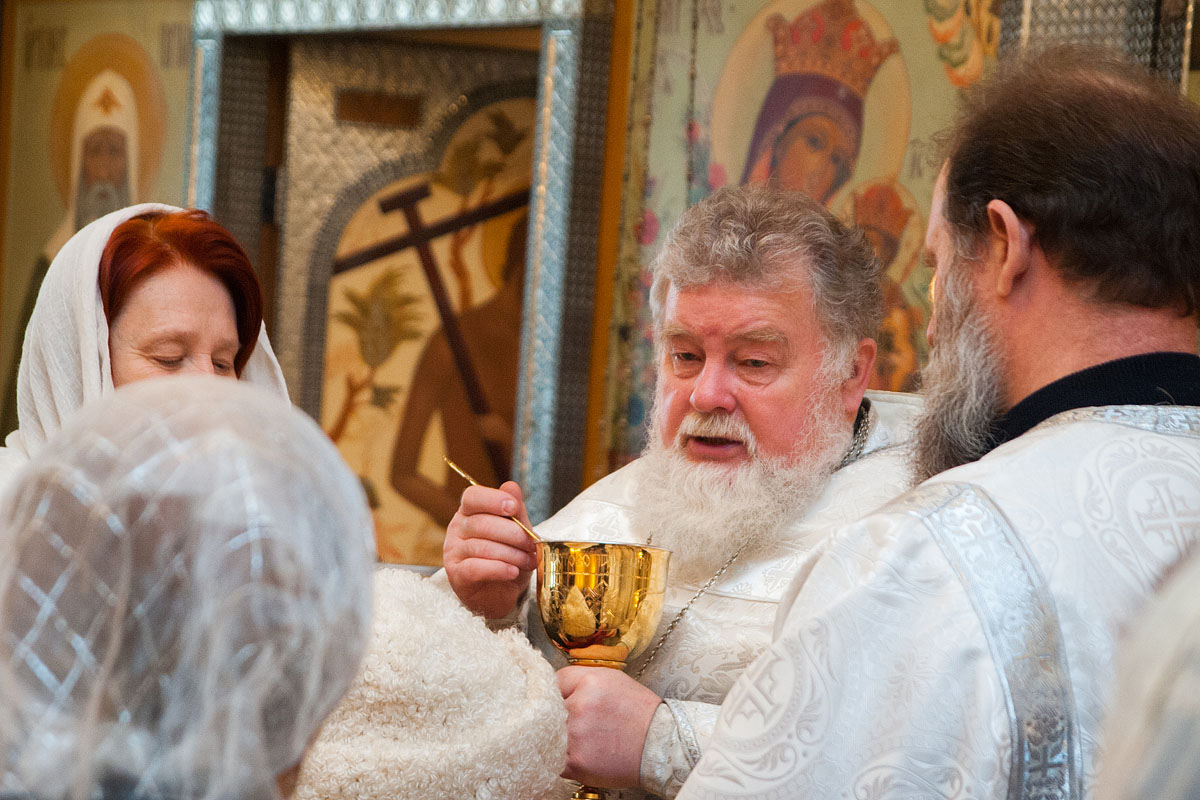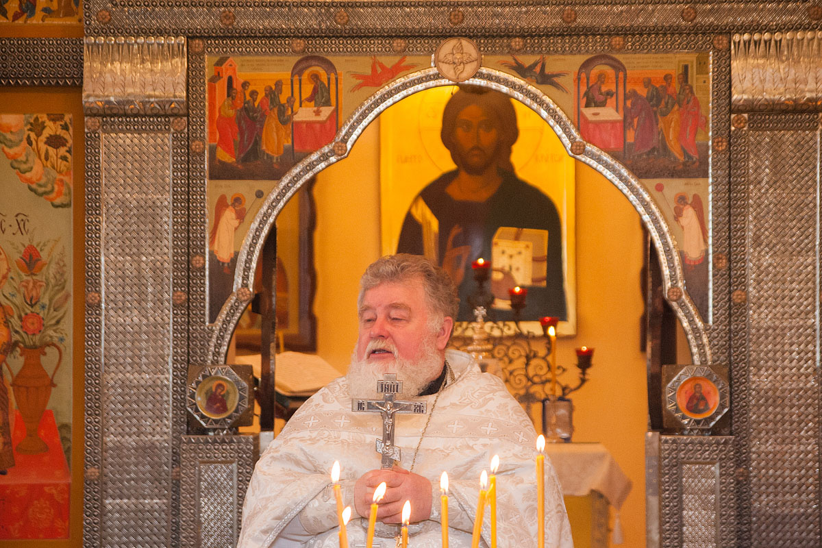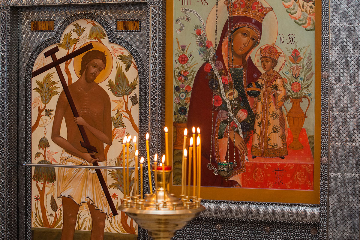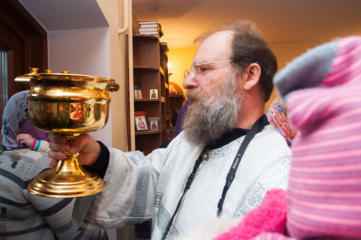 А в домовом храме священномученика Иоанна (Артоболевского) священники, облаченные в белые ризы, во время богоявленского богослужения освещали воду. Накануне, 18 января, в Крещенский сочельник — Чином Великого освящения воды, который еще называют Великой агиасмой. И второй раз — в день Богоявления, 19 января, на Божественной литургии.