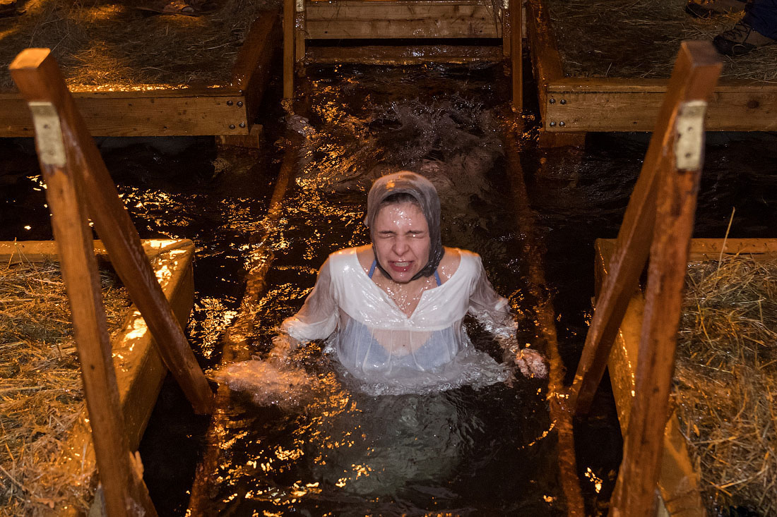 Ольга Вороньжева, студентка 4 курса факультета природообустройства и водопользования, в Крещенский сочельник впервые купалась в ледяной купели.