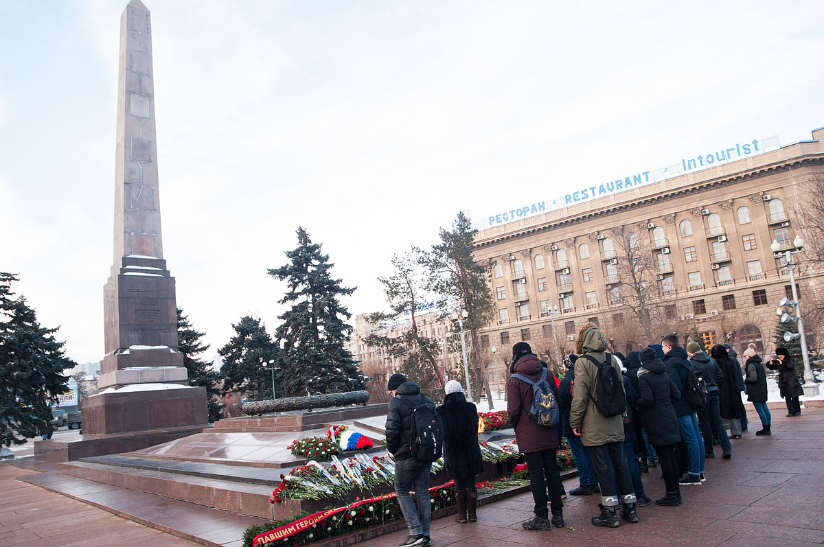 В этот раз в город-герой Волгоград отправились лучшие представители со всех факультетов. В памятный день они посетили Мамаев Курган, мемориалы «Героям Сталинградской битвы», «Панорама Сталинградской битвы», Дом Павлова, посмотрели военный парад на Площади борцов.