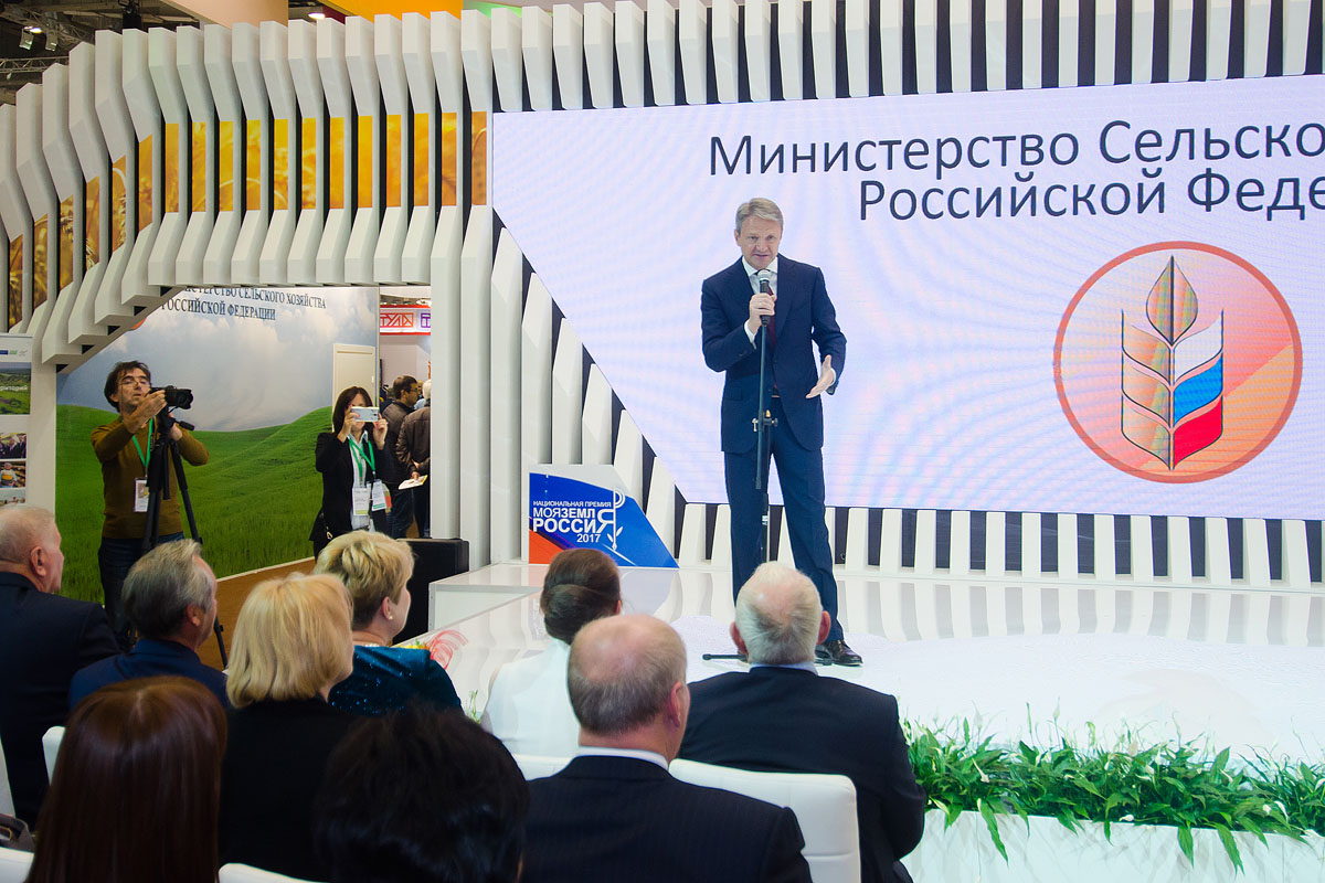 Сегодня министр сельского хозяйства РФ Александр Ткачев на Российской агропромышленной выставке "Золотая осень" вручил золотые медали аграриям и ученым, внесшим большой вклад в развитие агропромышленного комплекса России. Он отметил роль каждого в создании экономически крепкого государства.