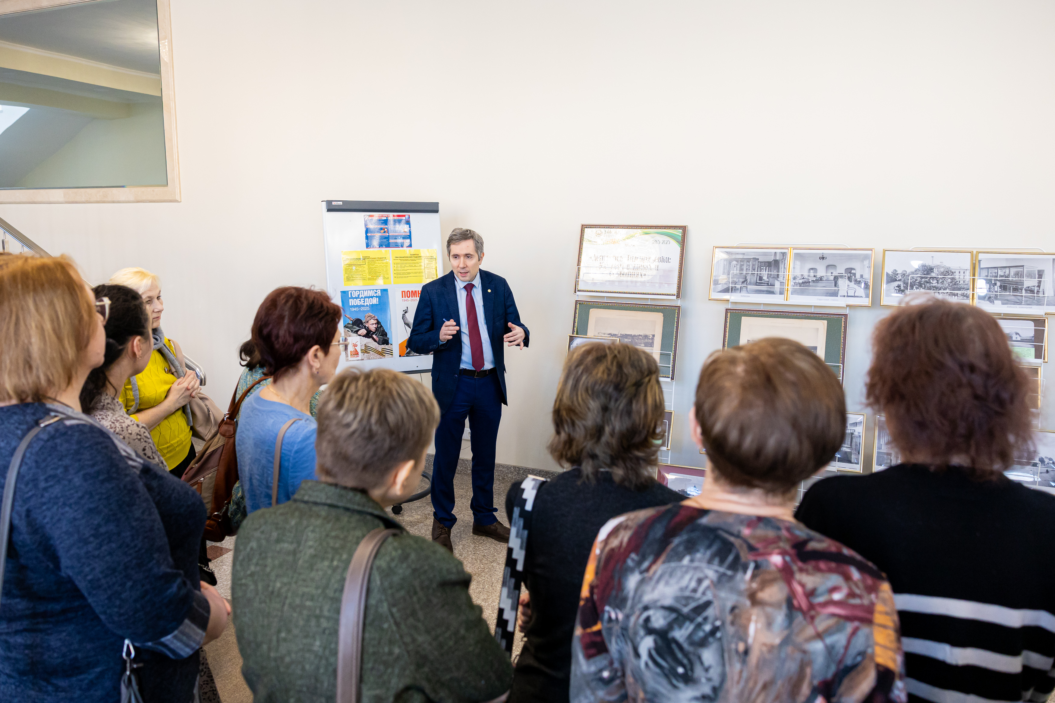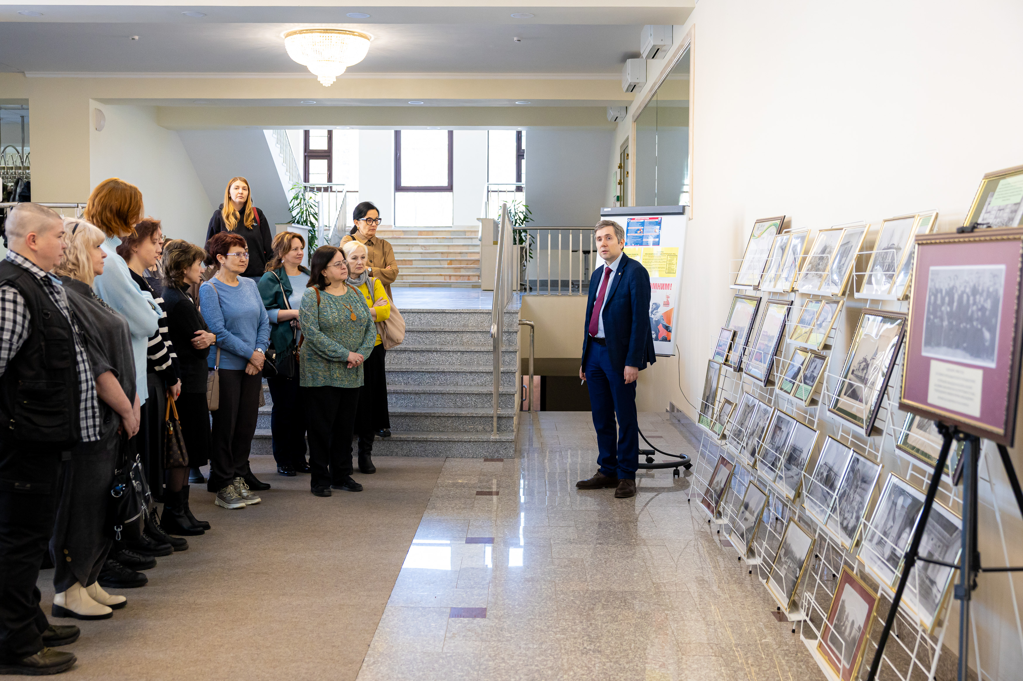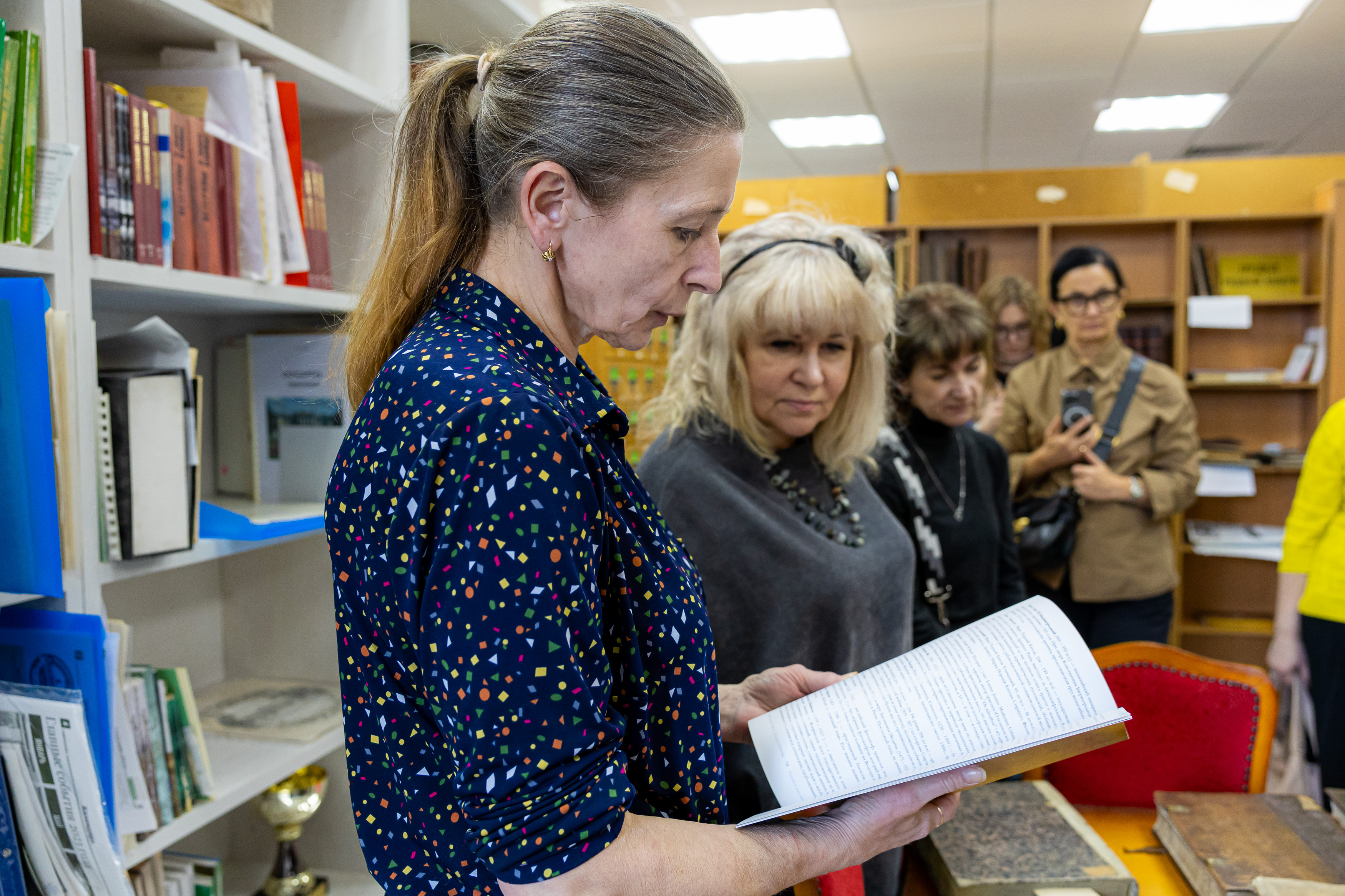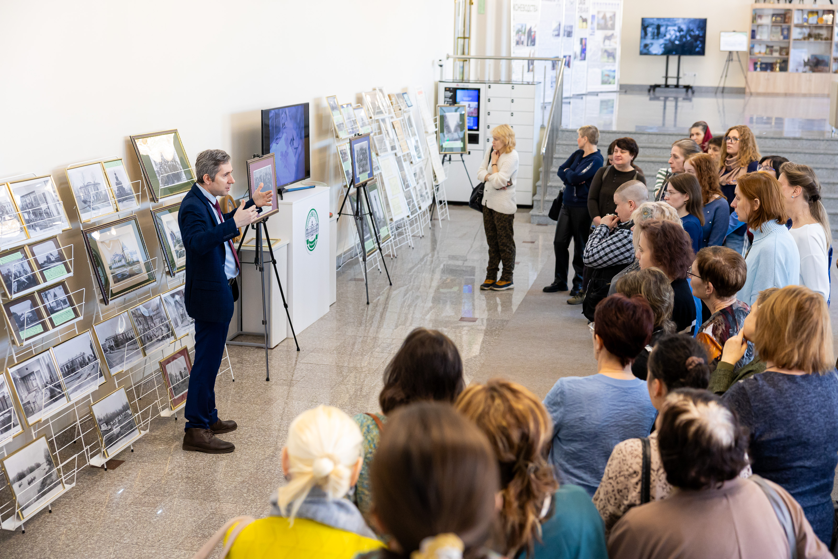 Для гостей была проведена серия обзорных экскурсий по фонду редкой книги и многоярусному книгохранилищу. Гости ознакомились с работой основных отделов ЦНБ, активно задавая профессиональные вопросы и обсуждая увиденное. Пётр Алексеевич продемонстрировал гостям выставочные экспозиции, посвященные 160-летию Тимирязевской академии, а также основоположникам аграрной науки и известным учёным вуза. Он также представил видеоролик о современном состоянии РГАУ-МСХА имени К.А. Тимирязева, выступил с презентацией о текущей работе и задачах научной библиотеки, планах по её развитию, и показал современное RFID-оборудование ЦНБ.