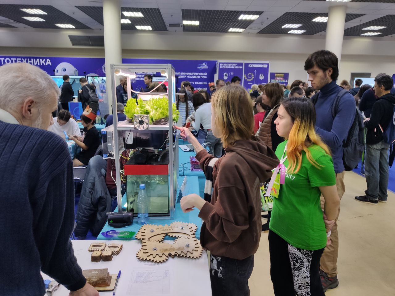 19 Октябрь / 2023От Университета на выставке была представлена спроектированная и построенная на базе ЦТПО «Автоматическая аквапоническая установка для выращивания растений и рыб» (совместный научно-технический проект студентов и школьников).
