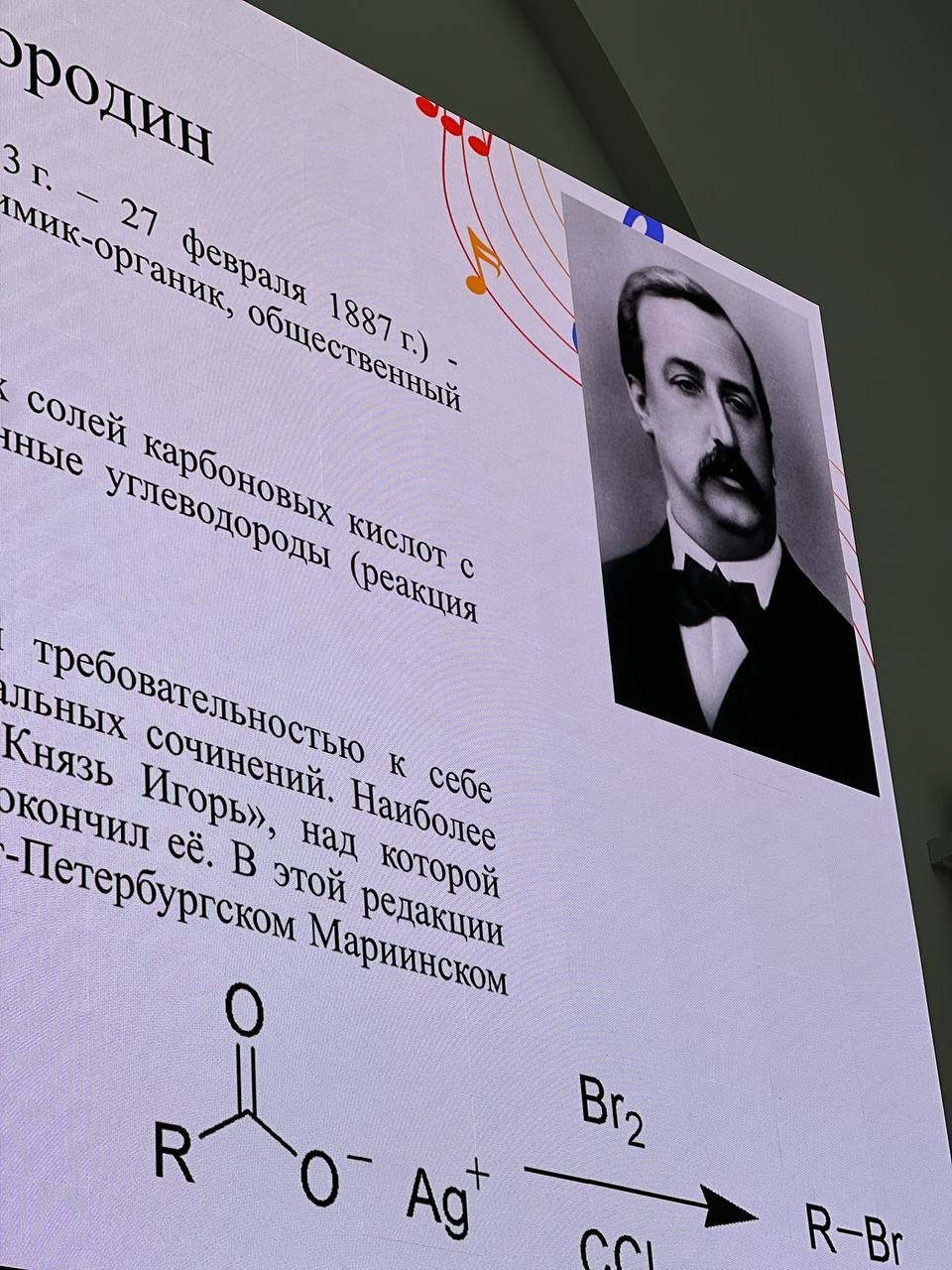 04 Октябрь / 2025Участники встречи познакомились с биографиями и творческим наследием известных химиков, чья жизнь и профессиональная деятельность были неразрывно связаны с искусством. Лейтмотивом мероприятия стала мысль о том, что глубокое понимание химических процессов и реализация научного потенциала часто требуют нестандартного, креативного подхода, который можно черпать на стыке с искусством.