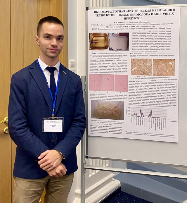 Старший преподаватель, к.т.н. Ксения Канина с докладом на тему: «Высокочастотная акустическая кавитация в технологии обработки молока и молочных продуктов». Исследование, направленно на сохранение биологически важных компонентов различного молока-сырья с помощью физических методов воздействия и выработки на ее основе молочных продуктов.