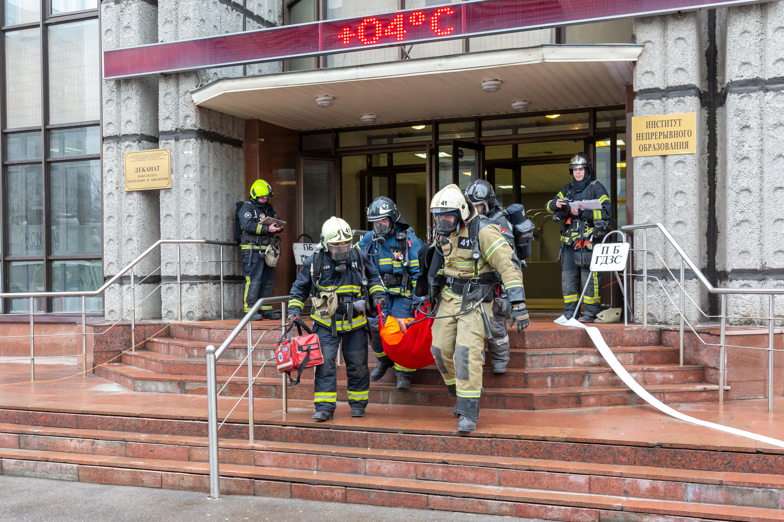 19 Февраль / 2020По сценарию в 15-м учебном корпусе произошло возгорание. В считанные минуты огонь распространился по административным помещениям и аудиториям. До прибытия пожарно-спасательных подразделений административными сотрудниками и преподавательским составом университета была организована работа по эвакуации около 800 студентов, но огонь и сильное задымление отрезали несколько человек от путей отступления.