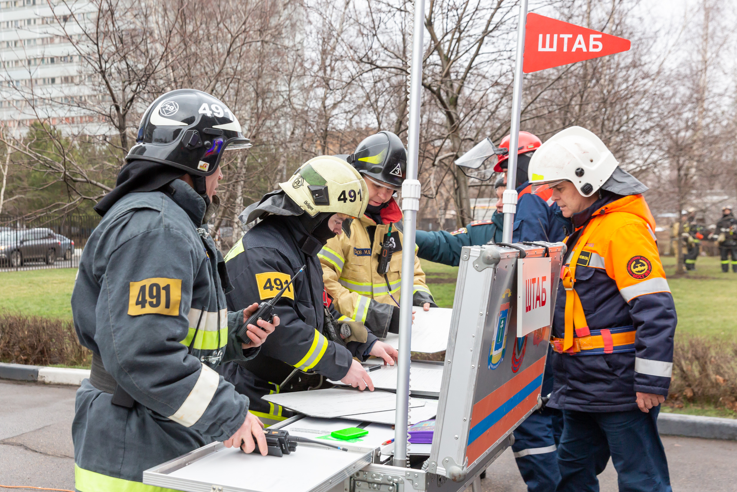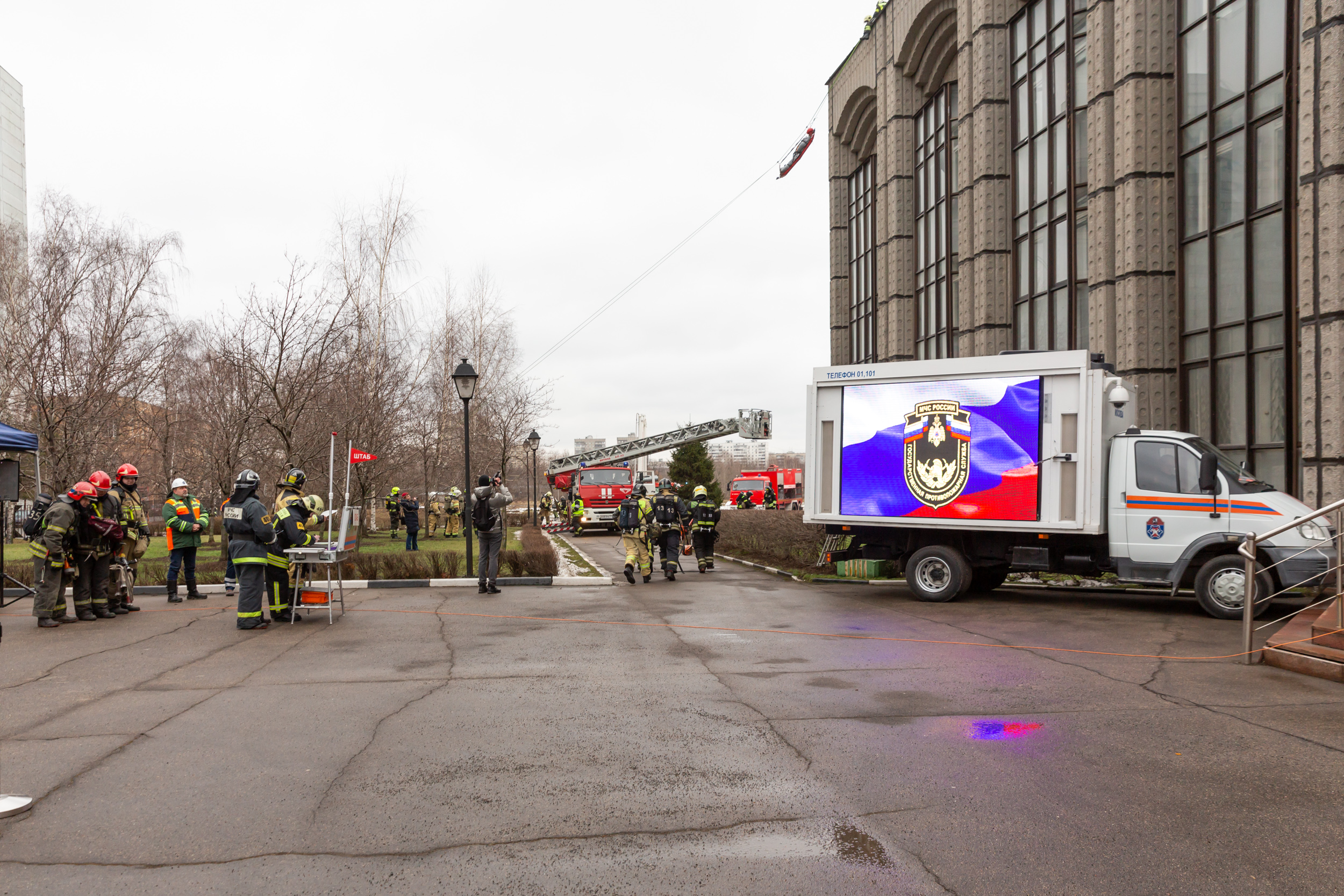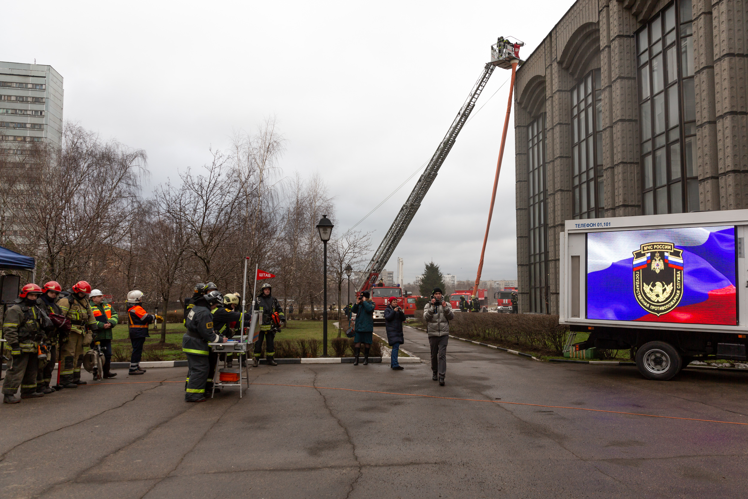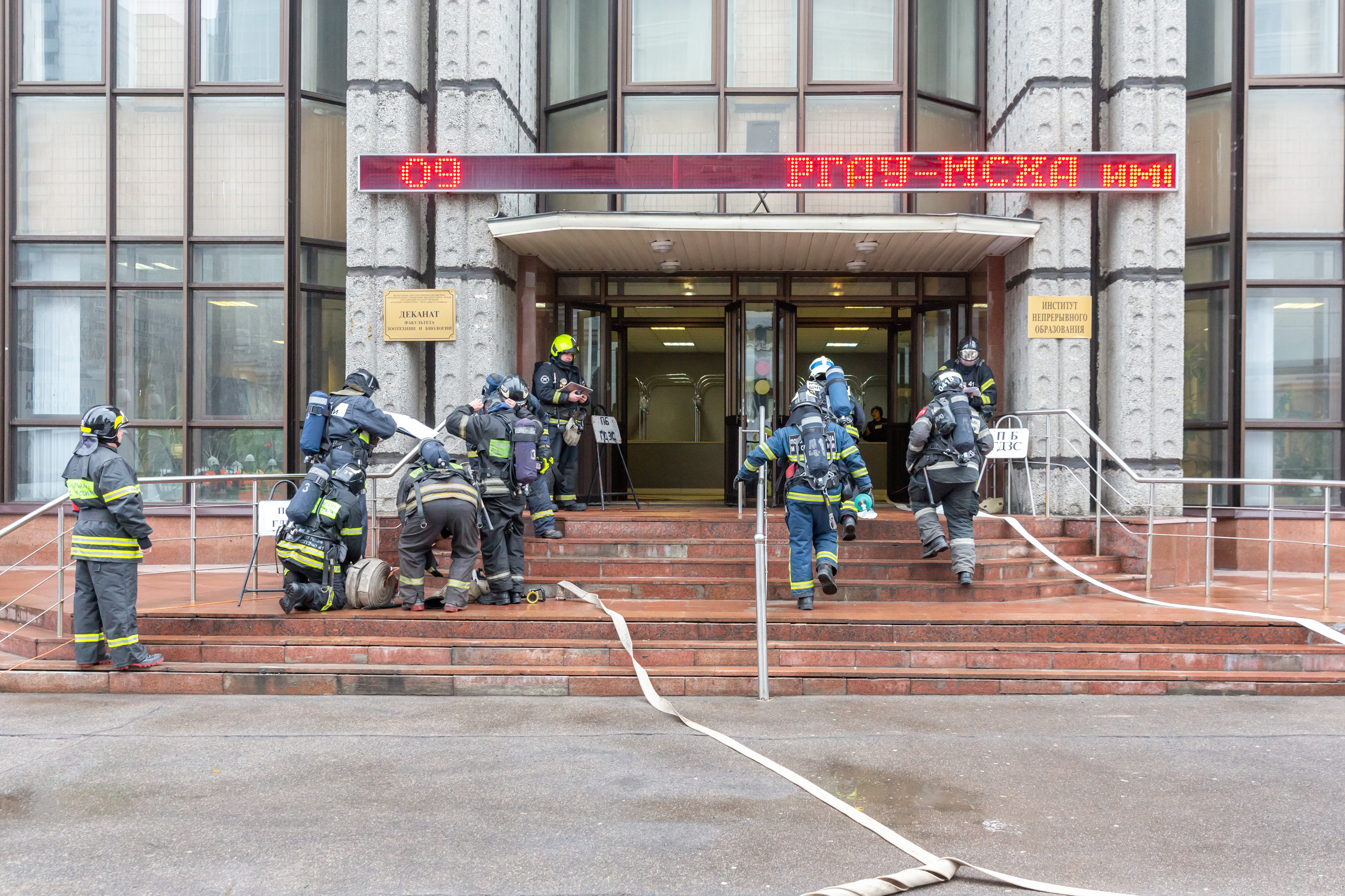 В соответствии с планом проводимых учений, уже через 6 минут на пожар прибыли службы экстренного реагирования города, что позволило в считанные минуты развернуть борьбу с учебным пожаром. Оперативно для поиска и спасения людей в задымленное помещение были направлены звенья газодымозащитной службы, во дворе учебного корпуса былы проведены боевые развертывания сил и средств Московской городской системы предупреждения и ликвидации чрезвычайных ситуаций (МГСЧС).