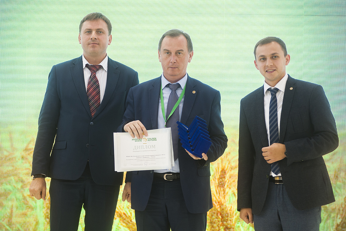 Настоящими триумфаторами конкурсной программы юбилейной выставки «Золотая осень» стали ученые Института механики и энергетики имени В.П. Горячкина! Только в конкурсе «За производство высокоэффективной сельскохозяйственной техники и внедрение прогрессивных ресурсосберегающих технологий» агроинженеры Тимирязевской академии удостоены 5 золотых, 7 серебряных и 1 бронзовой медалей выставки! Еще одно «золото» получено за учебно-методический комплекс по деталям машин для подготовки бакалавров и магистров по направлению «Агроинженерия» в конкурсе по информационно-консультационному обеспечению АПК.