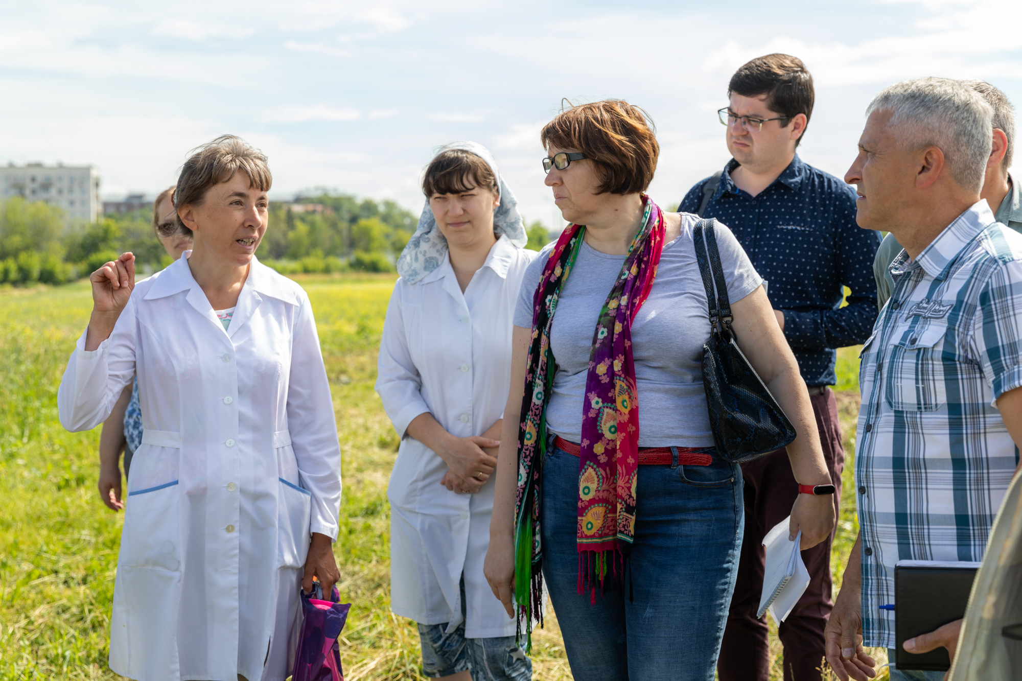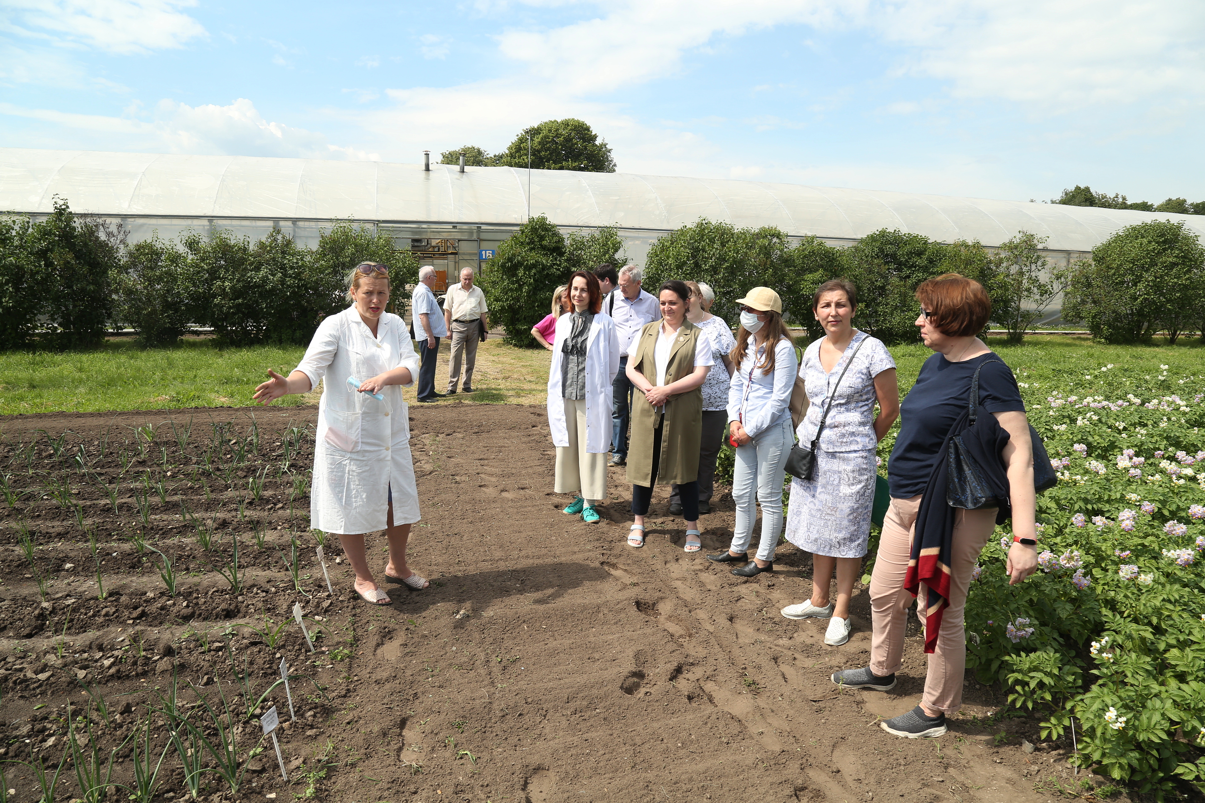 Руководитель Центра молекулярной биотехнологии, доктор биологических наук, профессор Л.И. Хрусталева представила коллегам перспективные исследования на основе геномных технологий, методов молекулярной генетики и цитогенетики. На опытных делянках ученый продемонстрировала уникальную коллекцию диких представителей семейства Allium, привезенных из Сибири, Алтая, Монголии, Японии, Северного Китая.