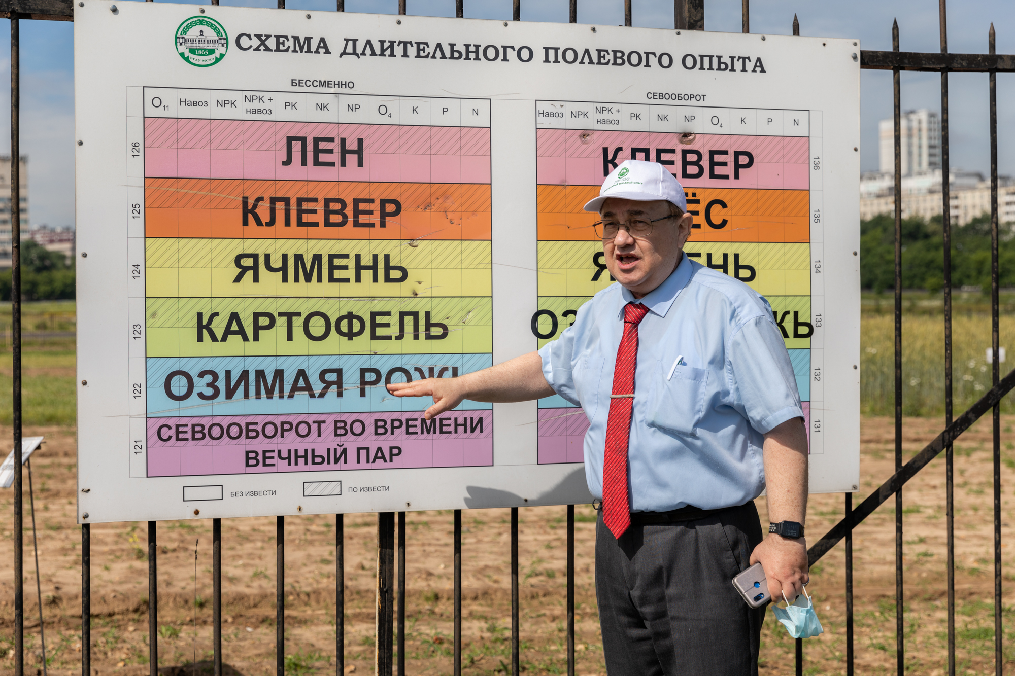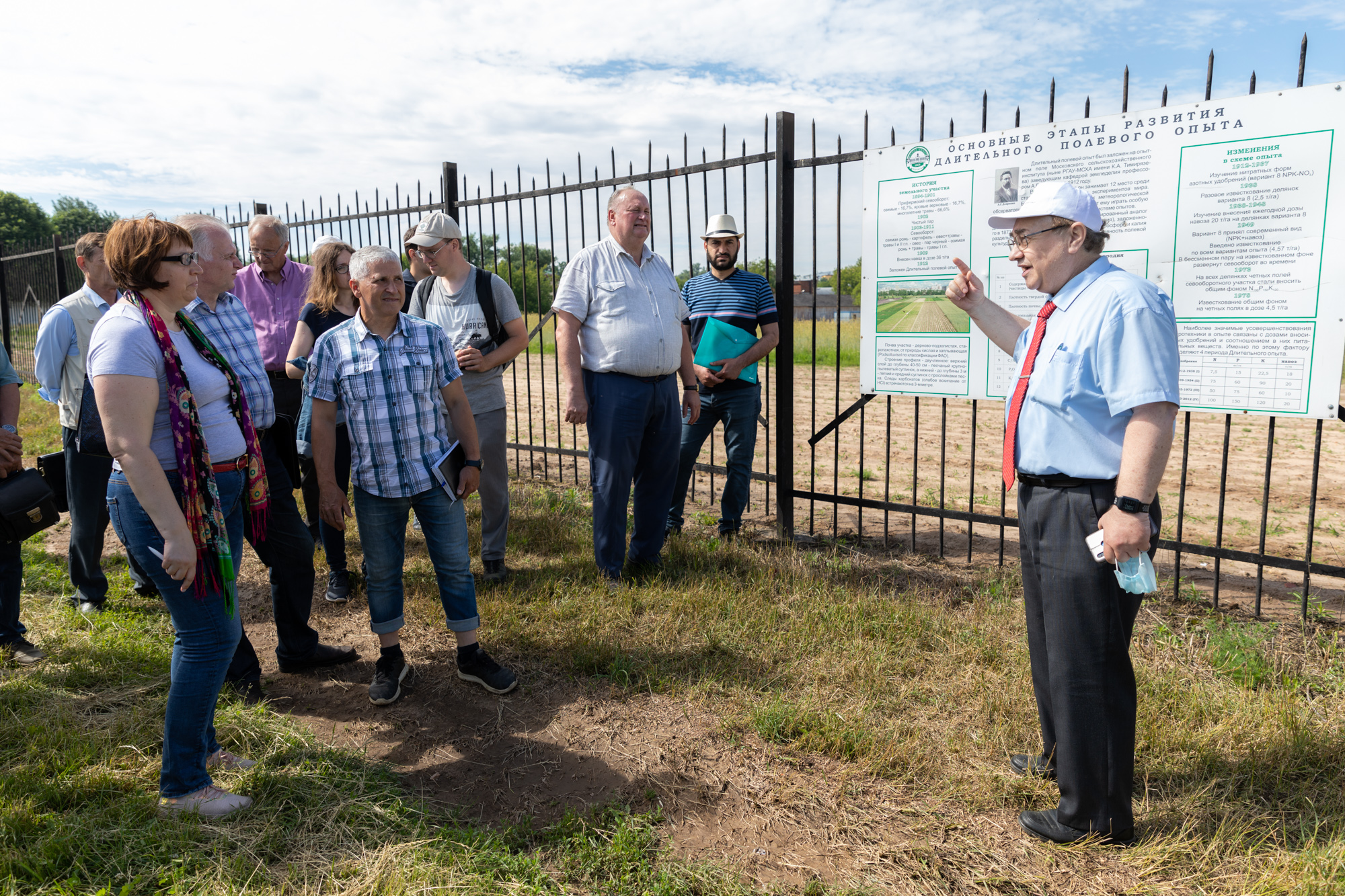 Профессоры О.А. Савоськина и М.А. Мазиров показали рабочей группе длительный полевой опыт, заложенный в 1912 году профессором А.Г. Дояренко. В одной его части бессменно располагаются рожь, картофель, ячмень, клевер, лен и черный пар. На другой же части используется шестипольный севооборот с ротацией тех же культур в определенной последовательности: пар – рожь – картофель – ячмень – клевер – лен.